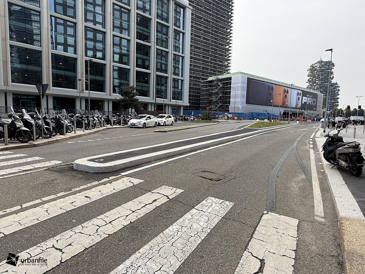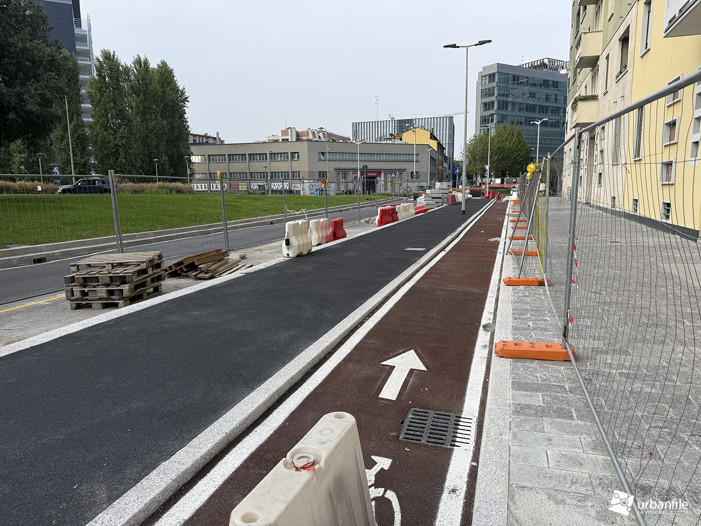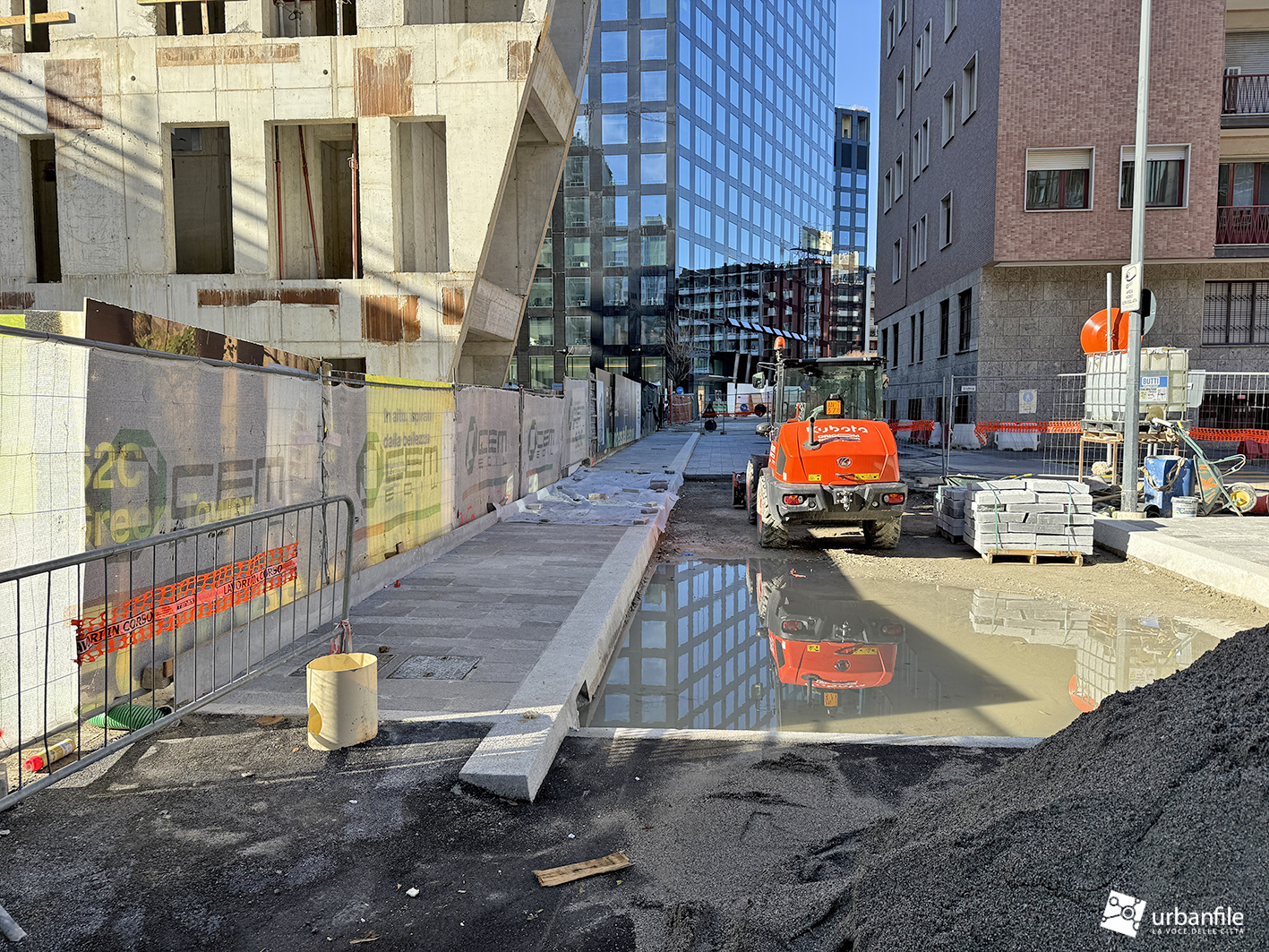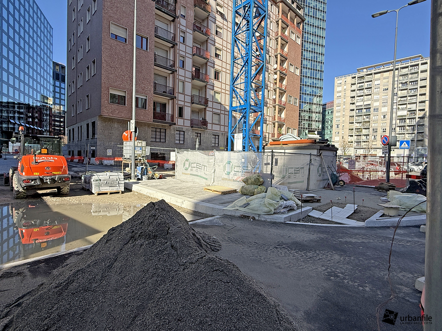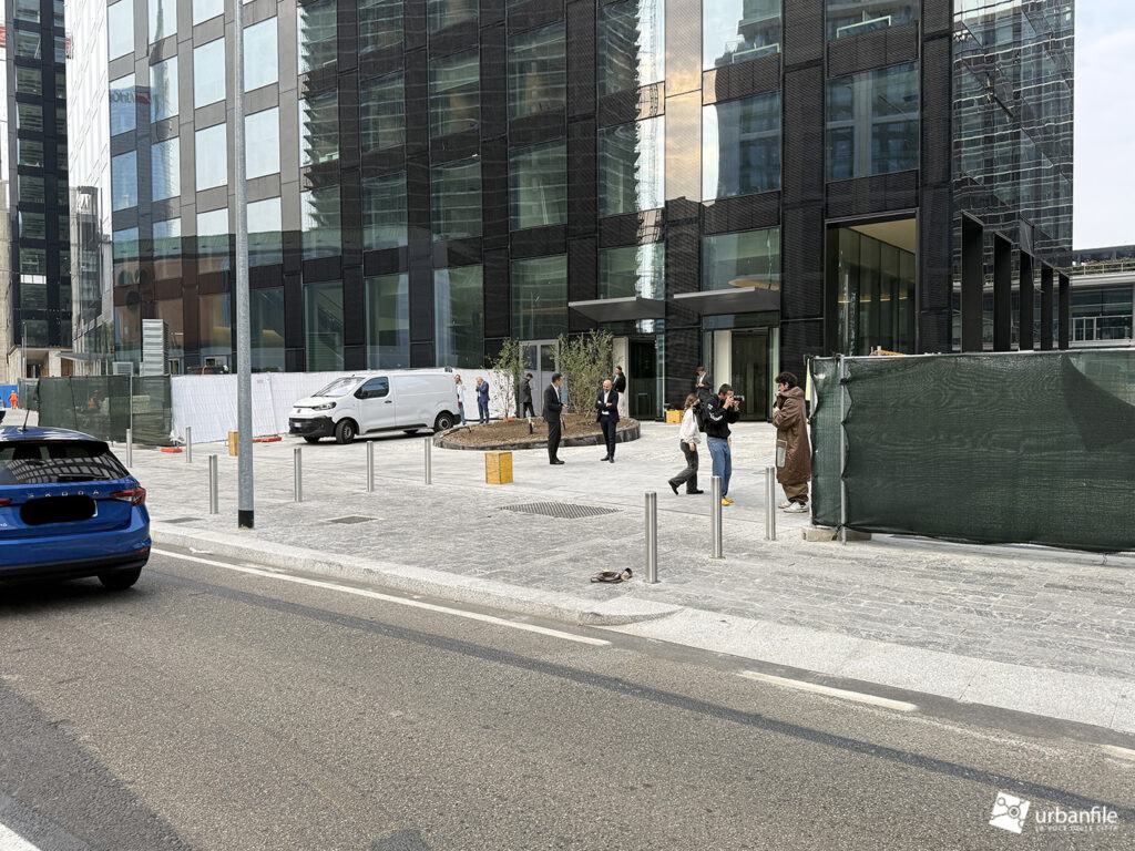 Novità la troviamo in via Clelia del Grillo Borromeo, la strada parallela a via Pirelli che costeggia le due torri di Pirelli 30 e 33 e porta alla “piazza” creata quando venne completato il palazzo di Gioia 22. A lavori completati il passaggio sarà aperto e connetterà via Cornalia con via Melchiorre Gioia attraverso questo passaggio, com’era in principio.