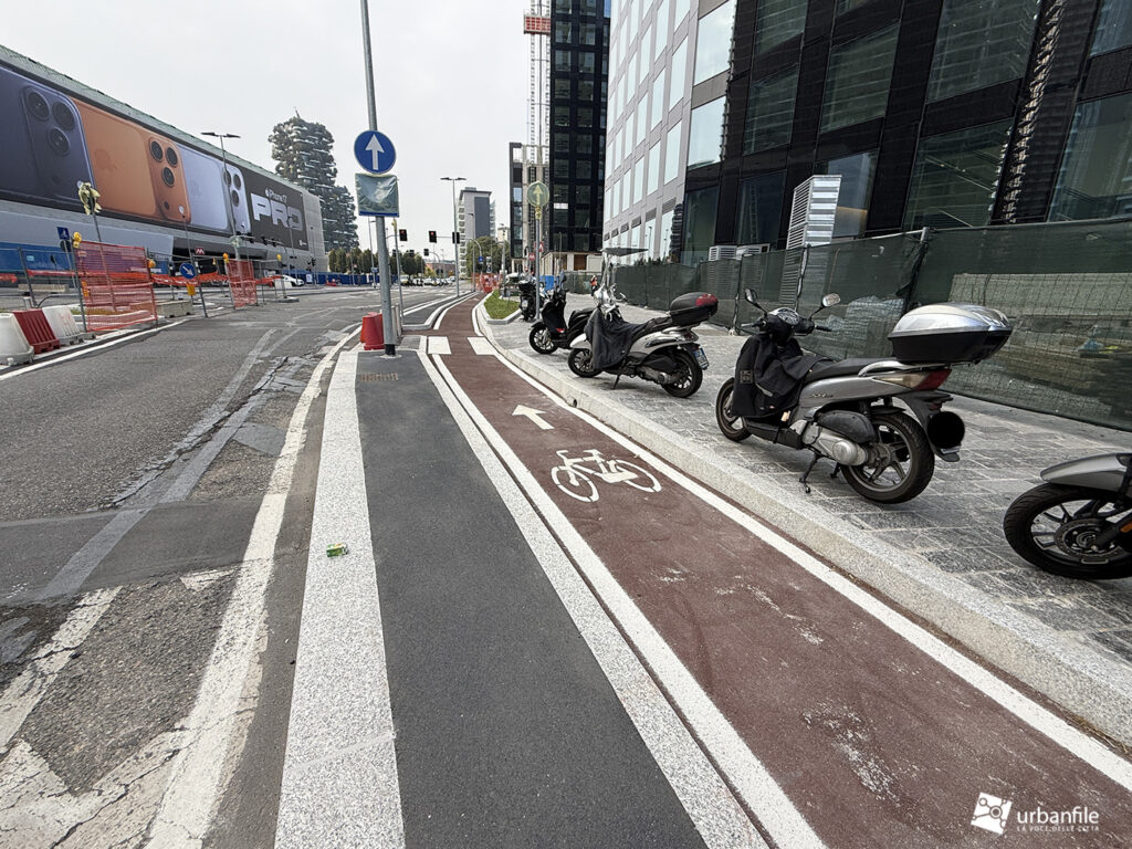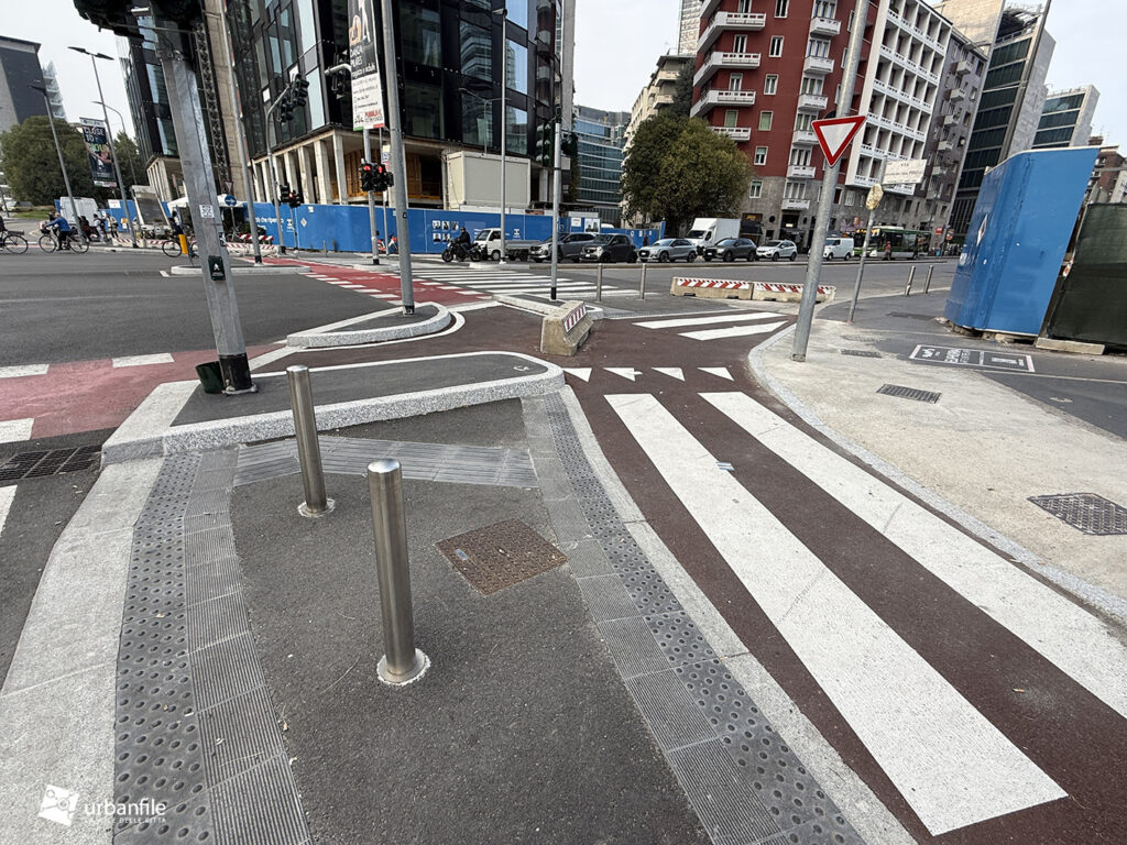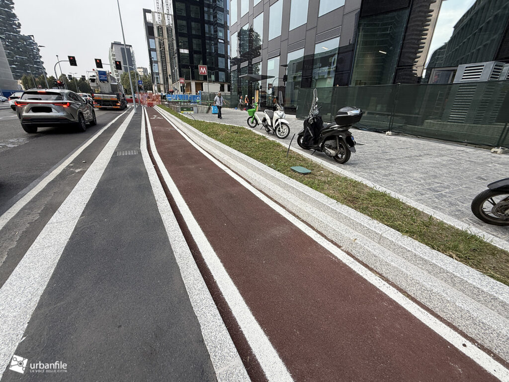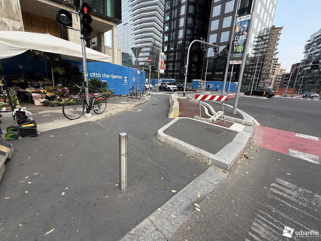 Solo a Milano fanno ciclabili con cordolo alto 30 centimetri. Sono convinti che serva a proteggere i ciclisti in realta’ sono molto pericolose per i ciclisti. Basterebbe colorarle e limitarle con dei paletti di gomma. Il problema e’ che al.Comune non sanno fare nulla, neanche copiare da chi sa fare le cose.