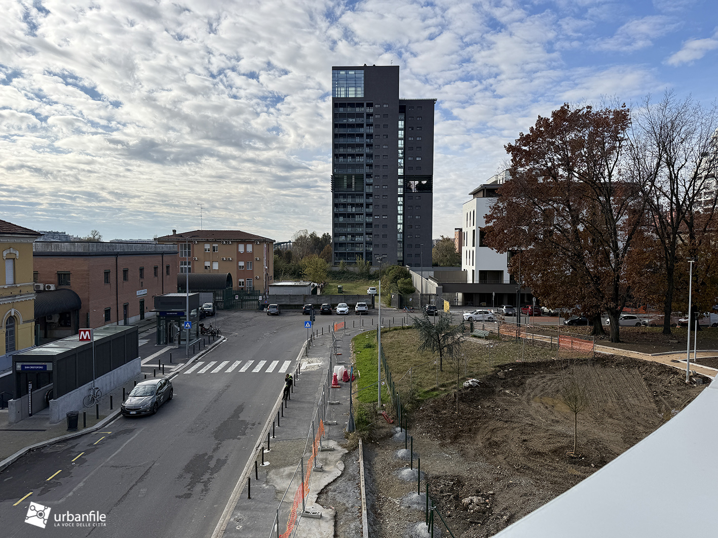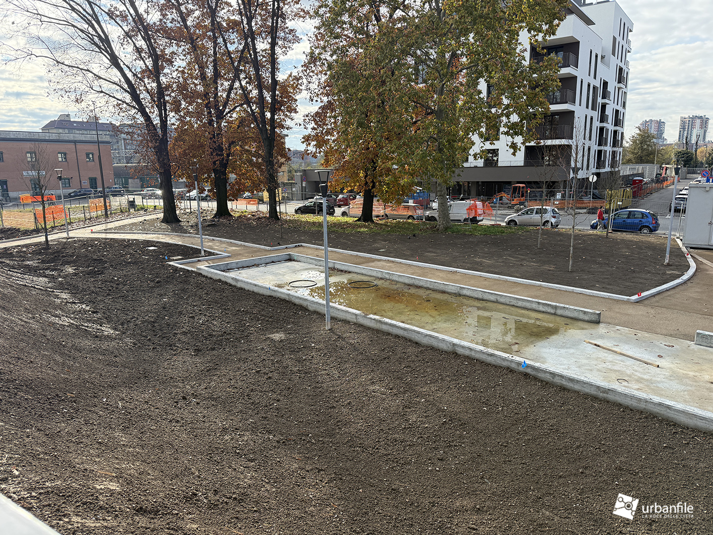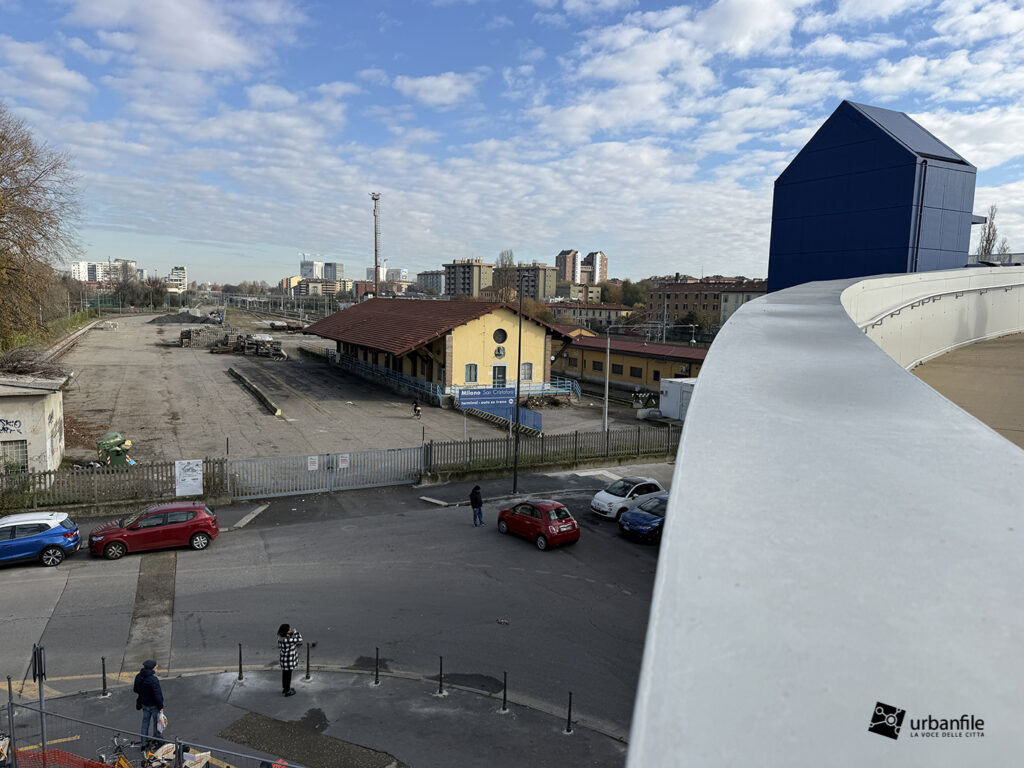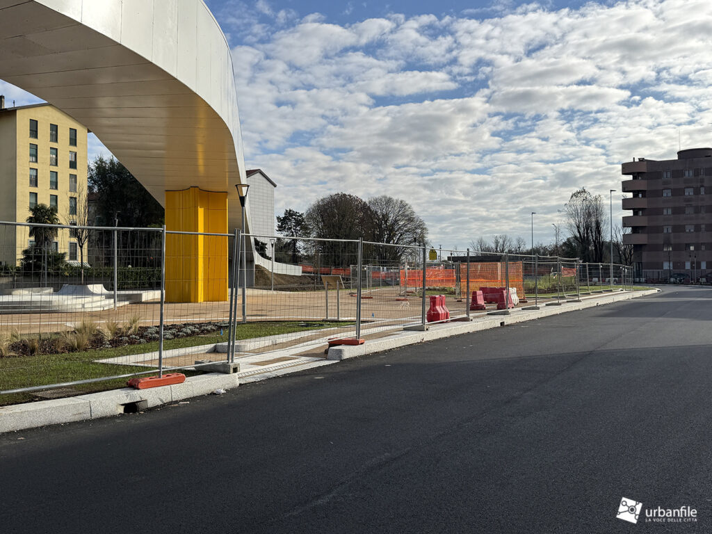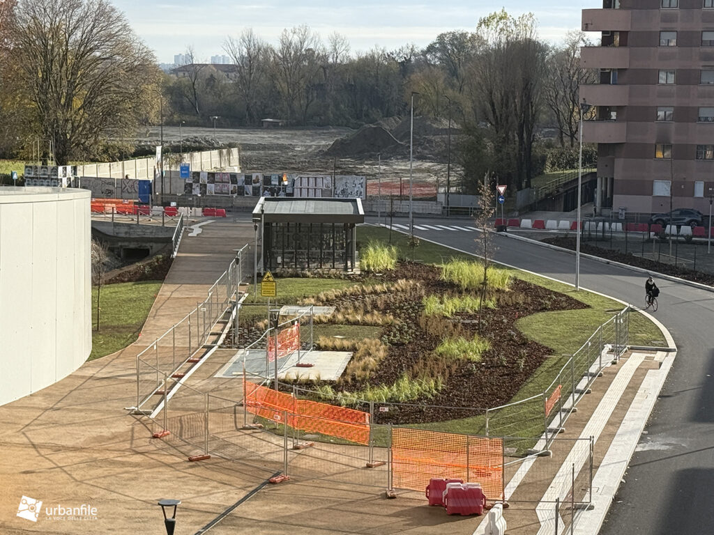 Di seguito la parte centrale col bivio per la rampa a chiocciola del percorso ciclo-pedoale che conduce all’alzaia Naviglio Grande e all’entrata della stazione M4 San Cristoforo.