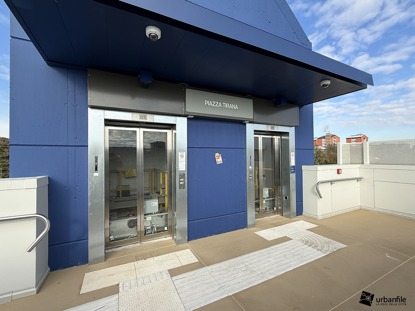 La torretta ascensori sul lato di piazza Tirana è ancora chiusa all’utilizzo.