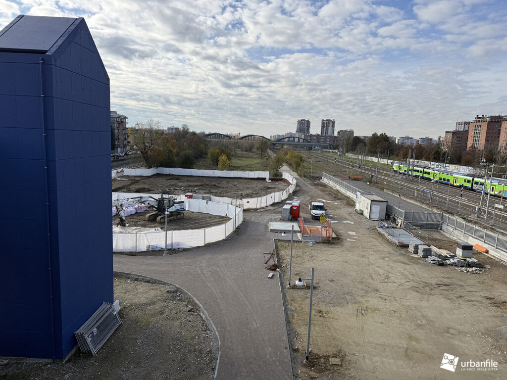 Novembre 2025. Nuovo aggiornamento fotografico dal cantiere per la costruzione del ponte/passerella ciclopedonale che collega piazza Tirana e il Lorenteggio all’area di Ronchetto sul Naviglio e via Lodovico il Moro, attraversando sia la ferrovia, sia il Naviglio Grande così come la via Lodovico il Moro, unendo i due territori separati da secoli.