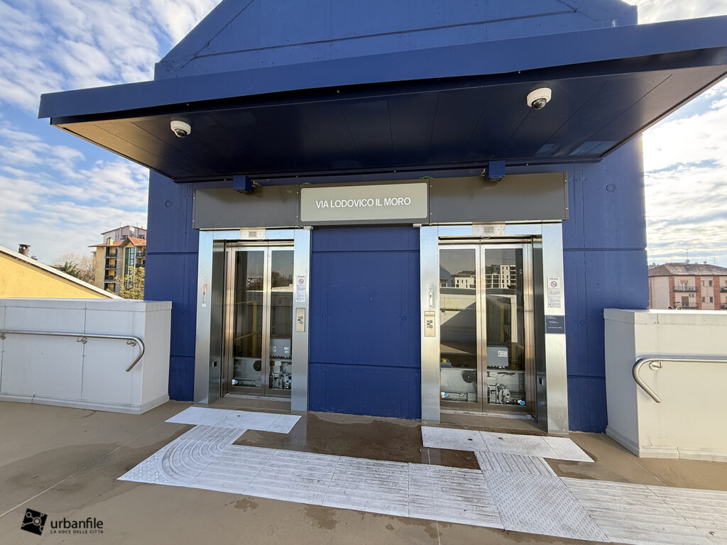 La torretta ascensori che porta alla stazione M4 San Cristoforo è l’unica che funziona, per fortuna sin dall’apertura della stazione. Gli ascensori del lato di via Lodovico il Moro sono ancora chiusi all’utilizzo.
