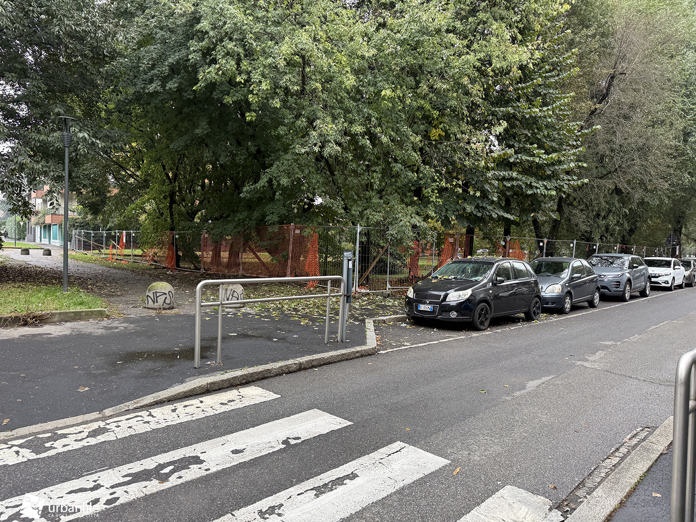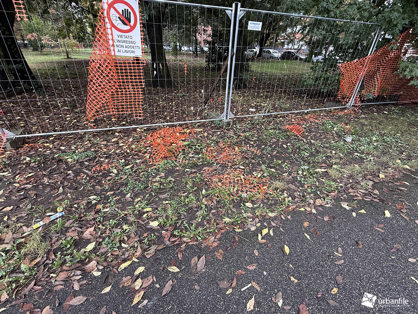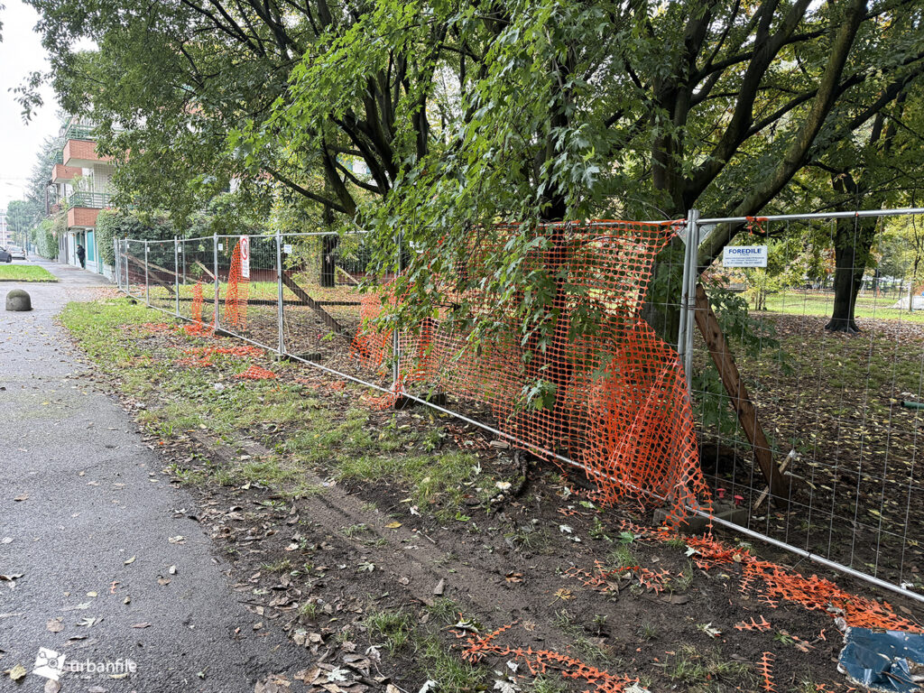 Da almeno tre anni, però, una parte del parco — quella che si affaccia su via Padre Giovanni Semeria — è recintata da cesate di plastica arancione. Una recinzione temporanea che, dopo tanto tempo, si è ormai deteriorata, sbriciolandosi e contribuendo persino all’inquinamento del suolo.