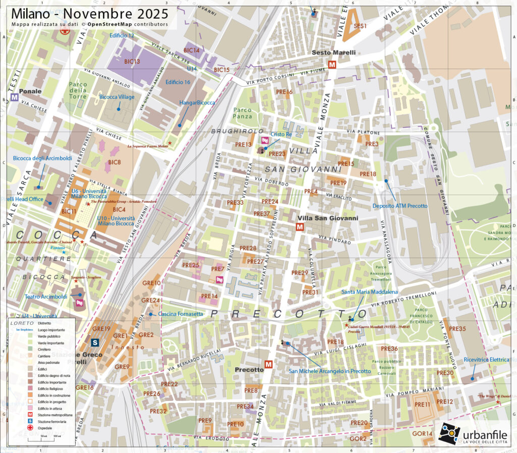 • Precotto, via Balzac, via Cislaghi, via Val di Fiamma, via Pompeo Mariani, via Francesco Zambrini, parco Bazzaro Carnovali,