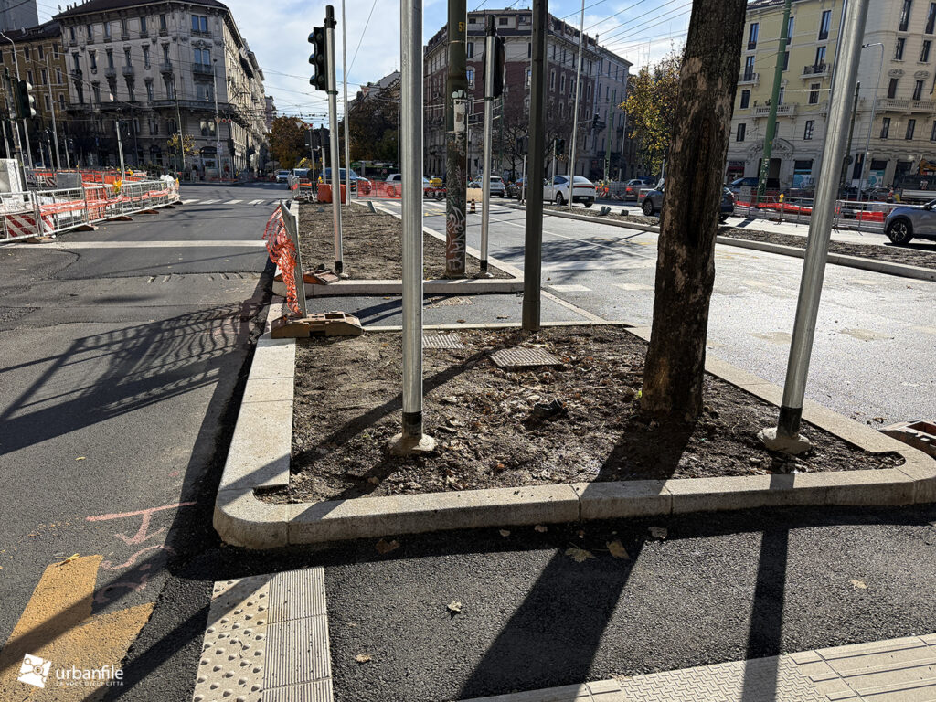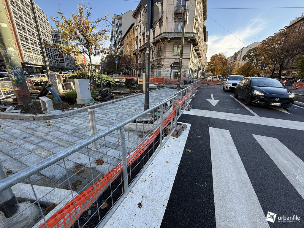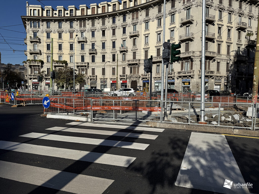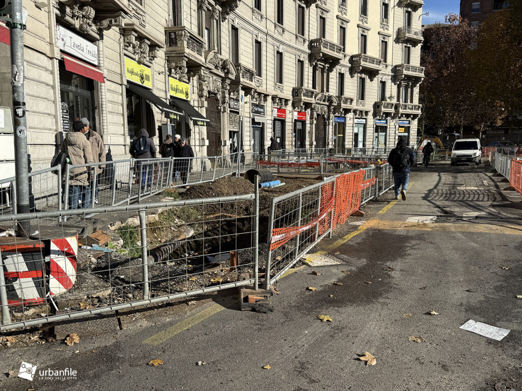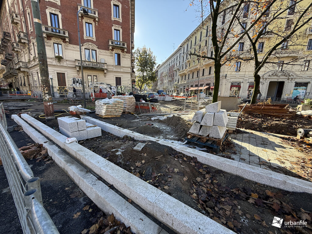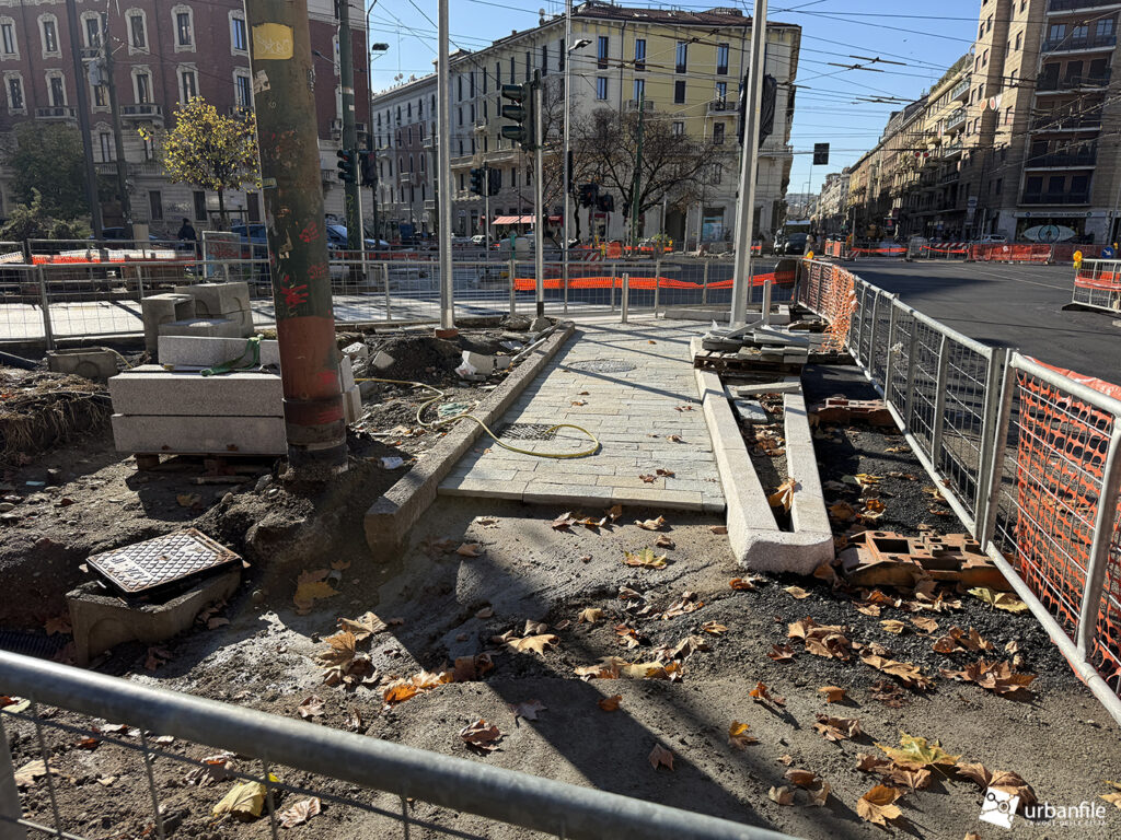 Compiamo ora un giro in senso orario: primo spicchio, da via Pergolesi a via Venini. In questo tratto, come gli altri, la parte riservata ai pedoni è ancora da definire ed è un vero cantiere.
