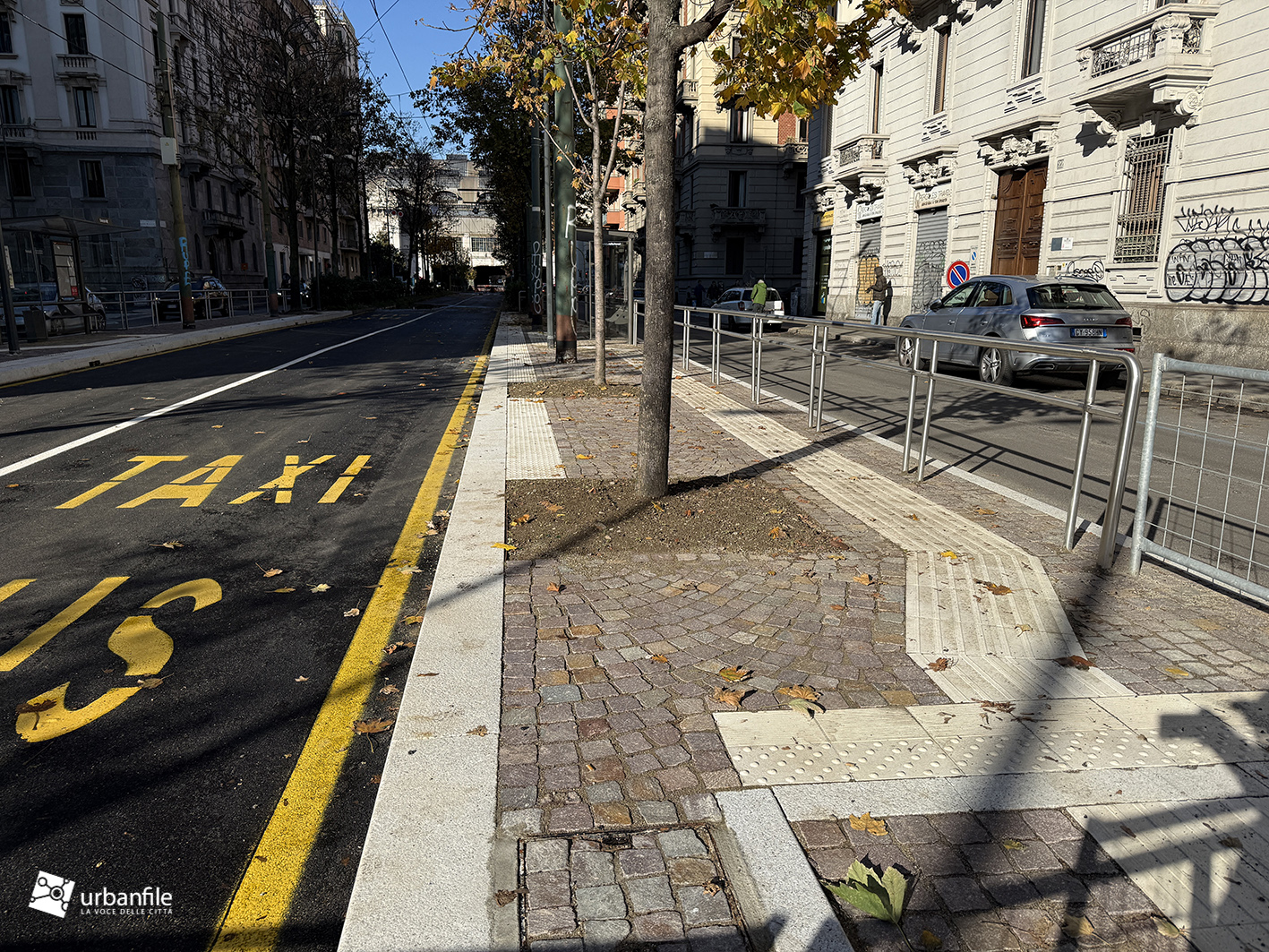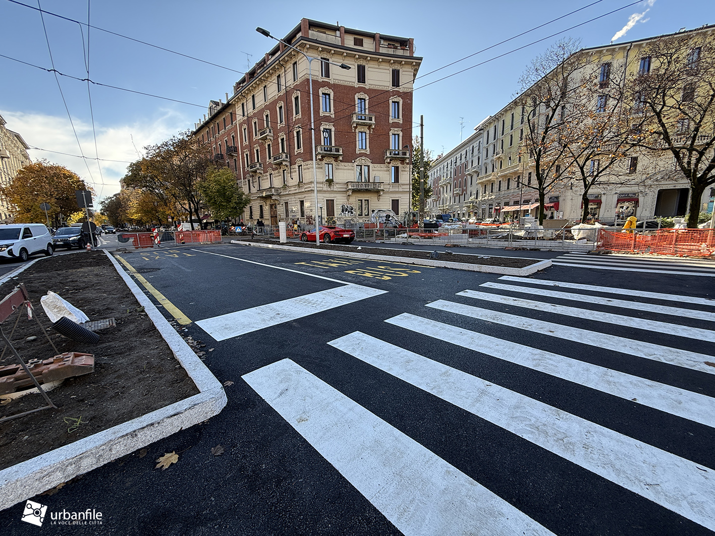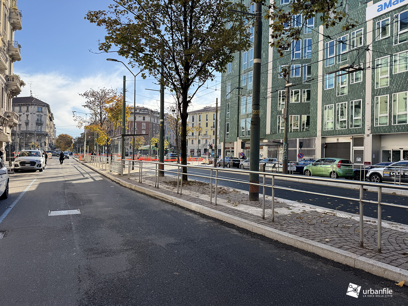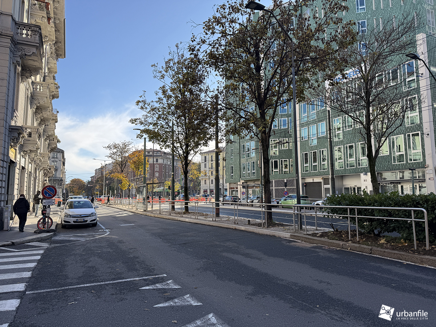 Compiamo ora un giro in senso orario: primo spicchio, da via Pergolesi a via Venini. In questo tratto, come gli altri, la parte riservata ai pedoni è ancora da definire ed è un vero cantiere.