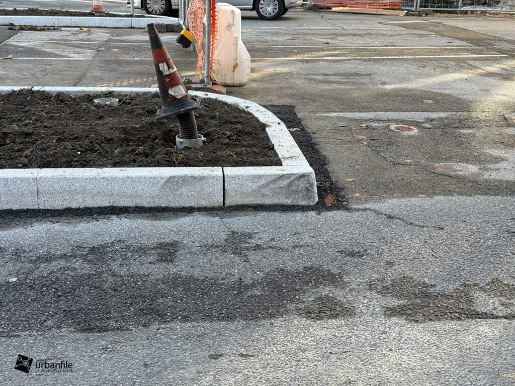 La parte centrale della piazza è quasi pronta. Sono stati sostituiti anche i binari dei tram.