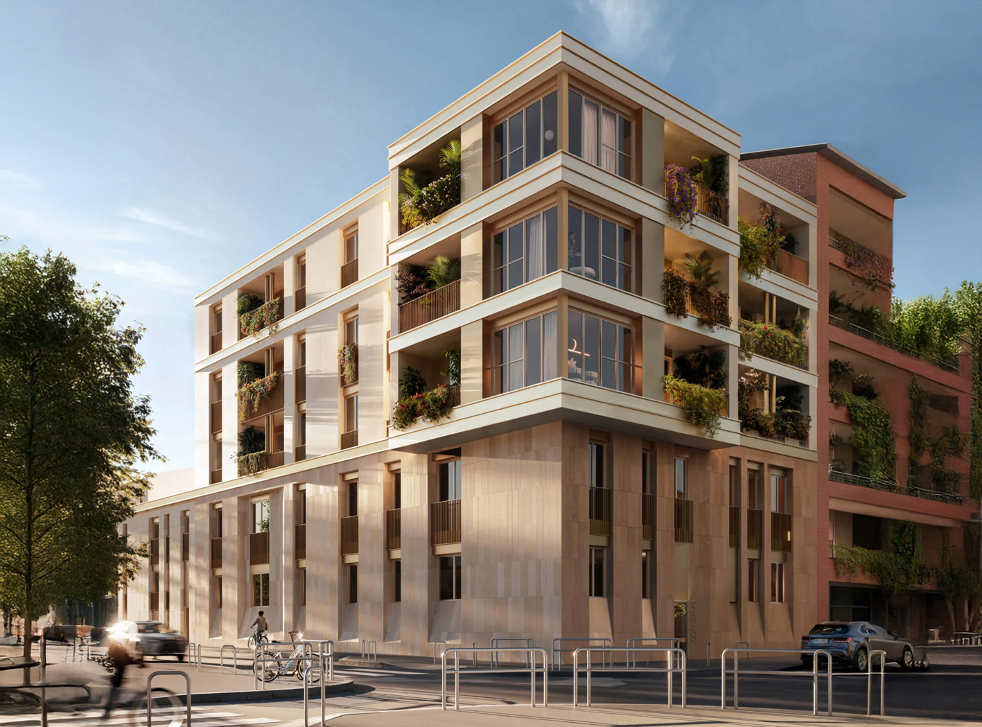 Il progetto firmato dallo studio AA Architetti Associati, denominato Corner 43, valorizza proprio questa caratteristica distintiva: pur trasformando e aggiornando l’edificio, ne mantiene l’essenza originaria. La nuova struttura conserva infatti l’effetto aggettante del volume d’angolo, ora reinterpretato attraverso ampie vetrate e generose logge. È previsto anche l’inserimento di un piano aggiuntivo, che porterà l’edificio a un totale di quattro livelli.