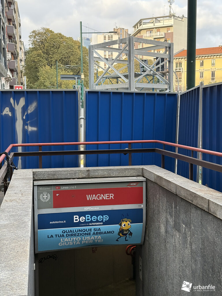 Dicembre 2025. Dallo scorso gennaio è attivo il cantiere per realizzare gli impianti ascensore presso la stazione M1 Wagner, situata nell’omonima piazza di Porta Vercellina. I lavori hanno comportato la chiusura di una delle scale d’uscita della stazione e di una parte del marciapiede tra via Marghera e via Buonarroti.