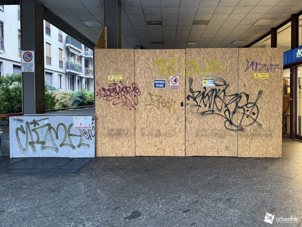Peccato che i tempi cambino e che, nel corso degli anni, tutto si sia progressivamente ridimensionato, fino ad arrivare alla situazione attuale: la galleria è chiusa ormai da tempo (nel 2016 e nel 2021 avevamo pubblicato due articoli dedicati) e oggi alcune entrate sulla piazza sono completamente sbarrate da antiestetiche cesate.