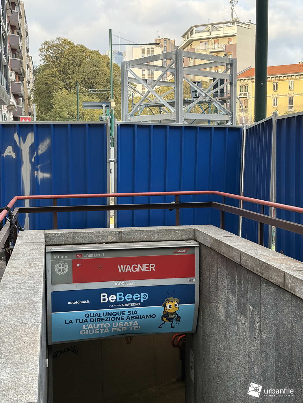 Dicembre 2025. Dallo scorso gennaio è attivo il cantiere per realizzare gli impianti ascensore presso la stazione M1 Wagner, situata nell’omonima piazza di Porta Vercellina. I lavori hanno comportato la chiusura di una delle scale d’uscita della stazione e di una parte del marciapiede tra via Marghera e via Buonarroti.