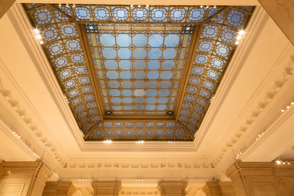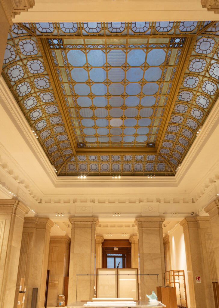 Sono stati inoltre restaurati gli elementi originali dell’edificio: marmi, opere in legno, lucernario, caveau e porta blindata storica.