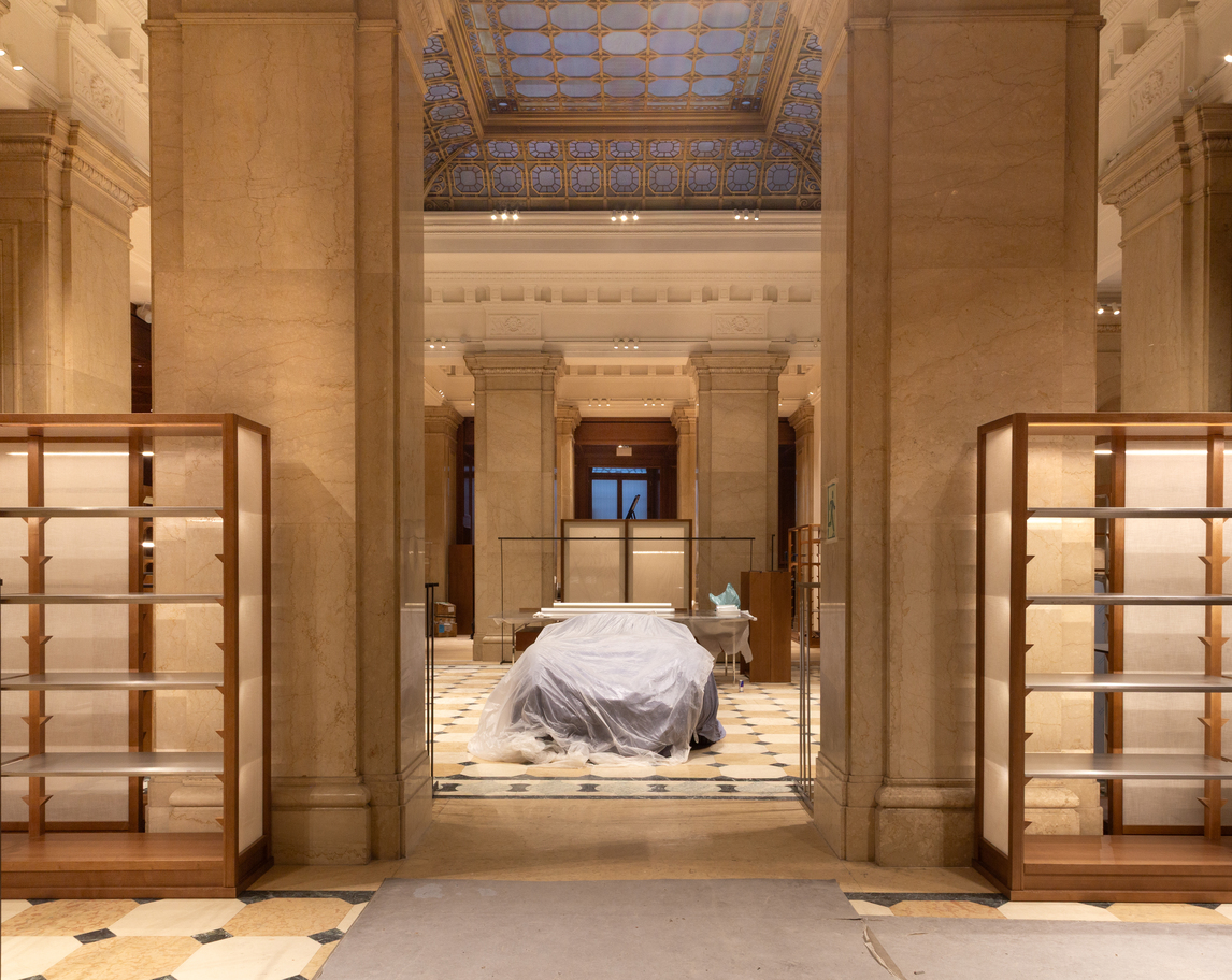 Sono stati inoltre restaurati gli elementi originali dell’edificio: marmi, opere in legno, lucernario, caveau e porta blindata storica.