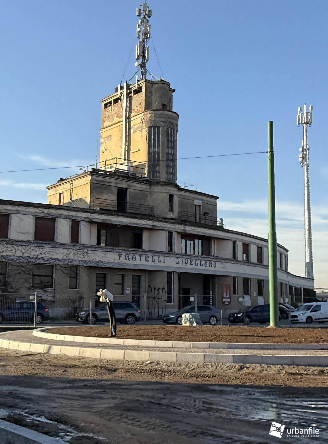L’incrocio sorge di fronte al suggestivo edificio ex industriale della Livellara, sede storica delle Cristallerie Fratelli Livellara. In origine ospitava l’Oleificio Balestrini, costruito nel 1935, ed è considerato da molti una realizzazione concreta delle visioni di Antonio Sant’Elia, celebre esponente dell’architettura futurista. Nonostante alcune ricerche, non è stato possibile individuare con certezza il nome dell’architetto che lo progettò.