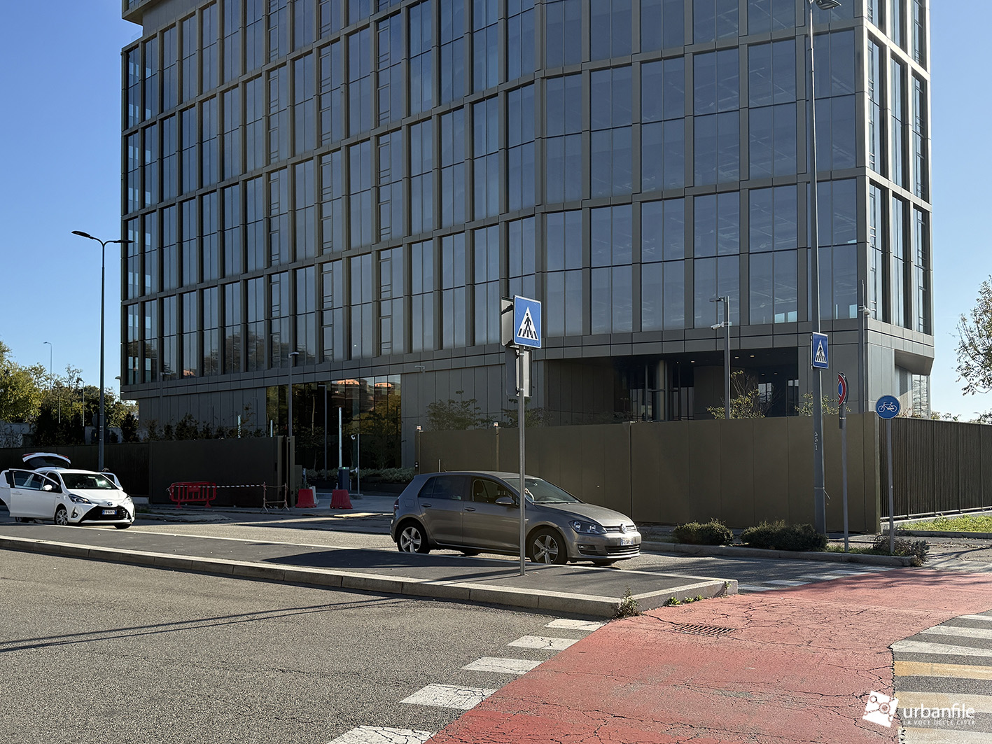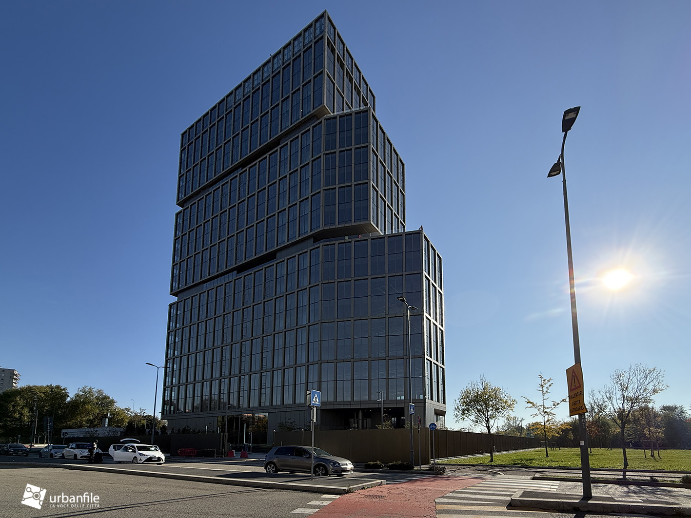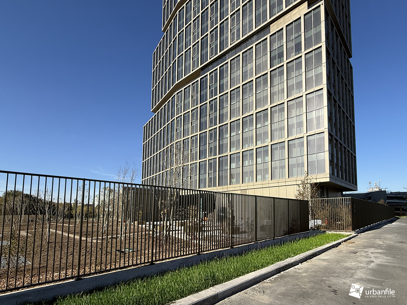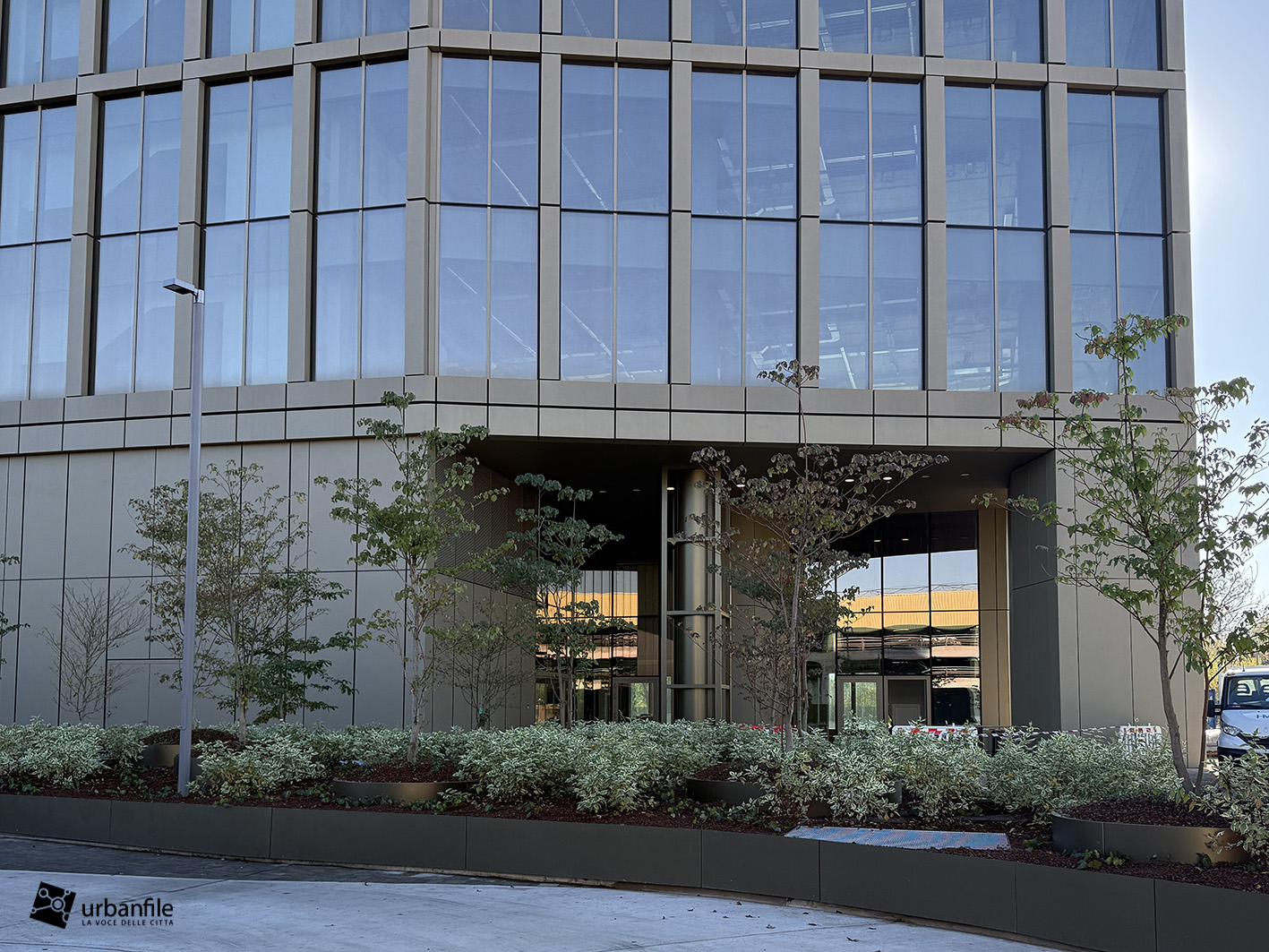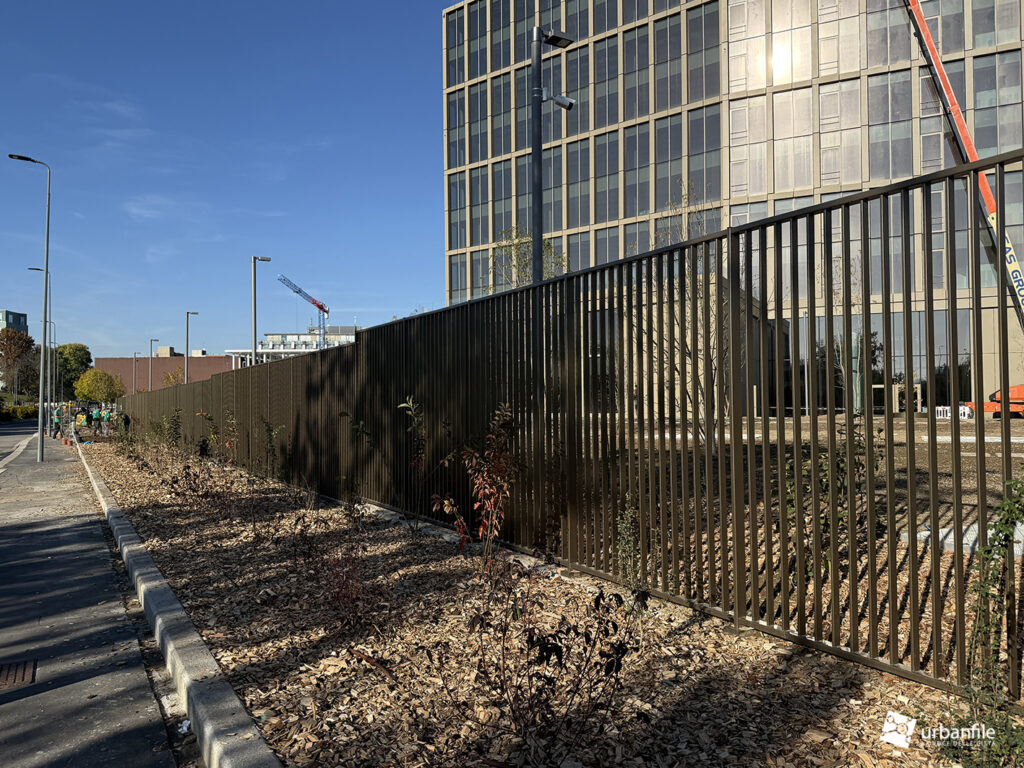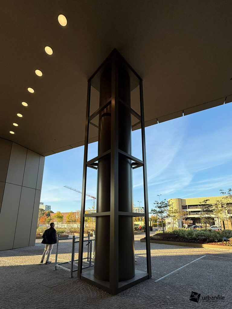 Dicembre 2025. Ormai da qualche settimana sono stati completati gli ultimi interventi al giardino e alle aree circostanti del nuovo edificio che accoglie chi arriva a Milano dall’autostrada dei Giovi, in zona M2 Famagosta, alla Barona.