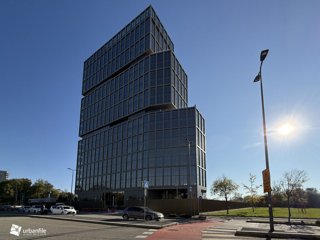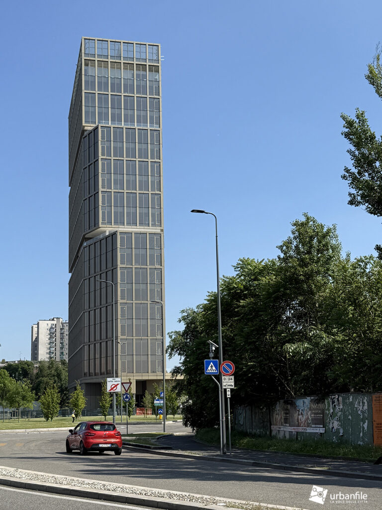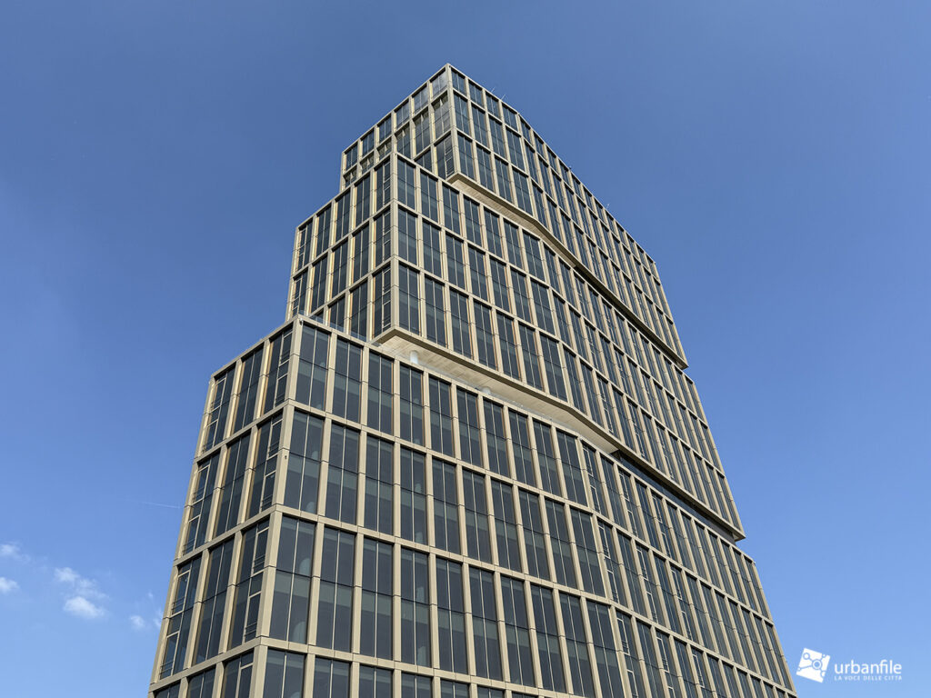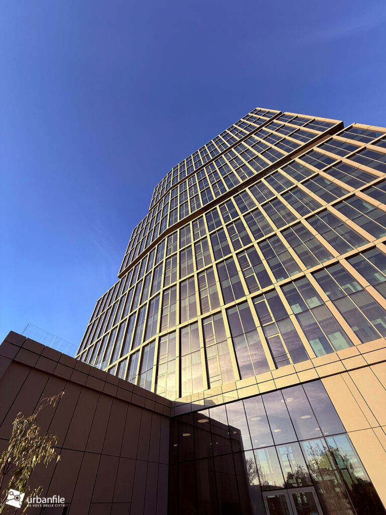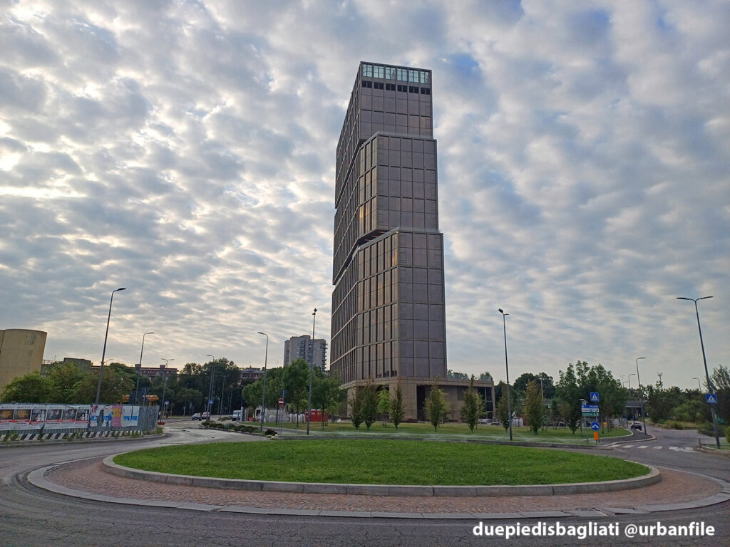 Io abito al Sant’Ambrogio. Ogni mattina mi affaccio dal mio balcone e vedo questa cosa e l’impeto di prendere la laurea in architettura e buttarla nel gabinetto è forte, fortissimo. Mi chiedo come si possa concepire una “architettura” di questo tipo. Sono tre volumi messi uno sopra l’altro, roba che un bambino di tre anni con i lego fa forme più elaborate. Avete presente quei “meravigliosi” serramenti bronzati che si usavano negli anni 70/80 e poi spariti dalla circolazione perché obbiettivamente osceni? Ecco qui avete un grattacielo che ricorda quella fantastica finitura. Unica cosa davvero bello è data dalle vetrature che all’alba e tramonto danno una colorazione rosa davvero gradevole.
