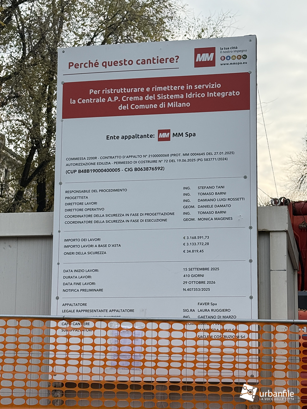 Il primo che vi mostriamo, quello in via Crema, è mirato per ristrutturare e rimettere in servizio la Centrale Acqua Potabile di via Crema del Sistema Idrico Integrato del Comune di Milano.