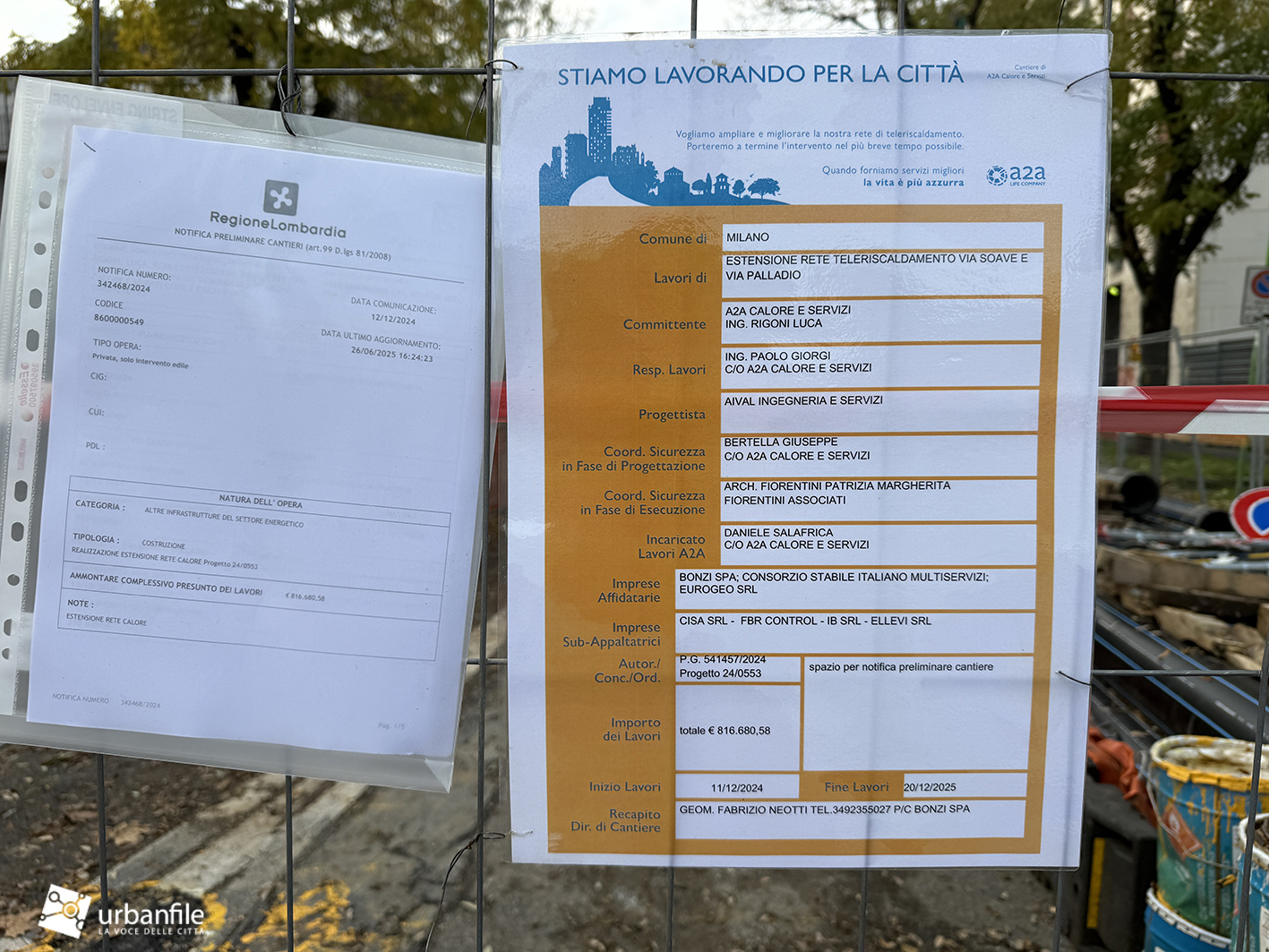 Mentre in via Palladio sono in corso i lavori per ampliare e migliorare la rete A2A di teleriscaldamento.