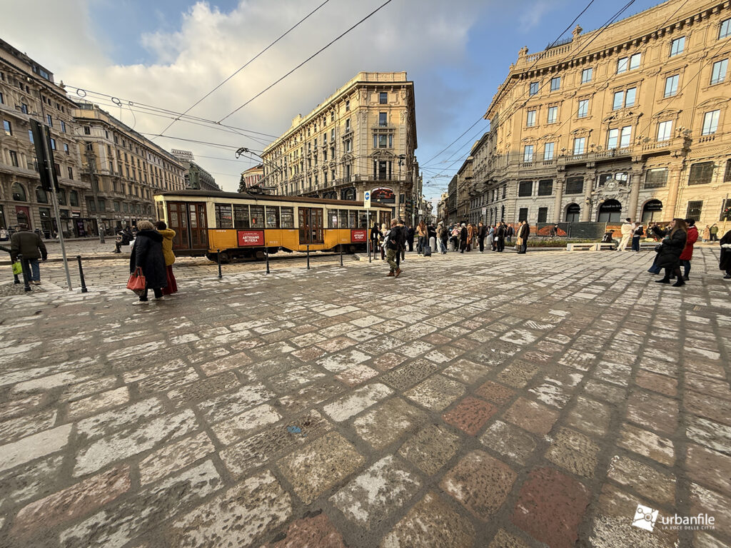 Piazza Cordusio invece – come tutti sanno (tranne forse il progettista) – ha una forma ellittica per raccordare l’ asse del Castello con quello di piazza Duomo, ma questo non si percepisce più.