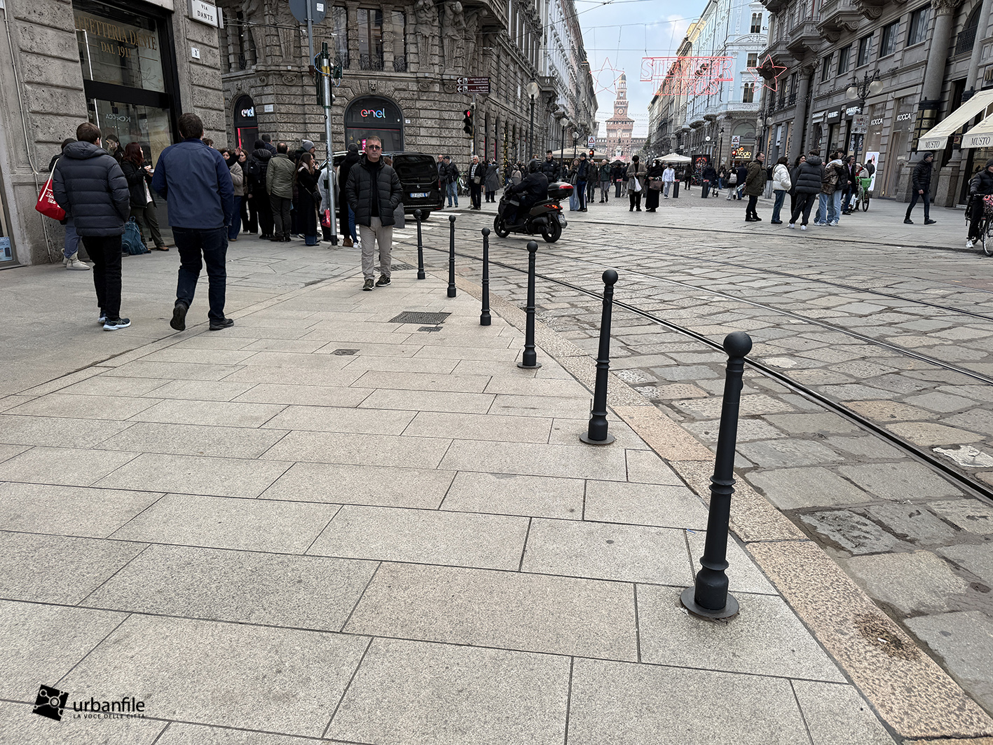 Peccato per via Orefici, così com’è non è né via pedonale né via di scorrimento. E si che avrebbe enormi potenzialità nel prolungare via Dante e connetterla con via Torino, creando una passeggiata storica meravigliosa dai navigli al castello.