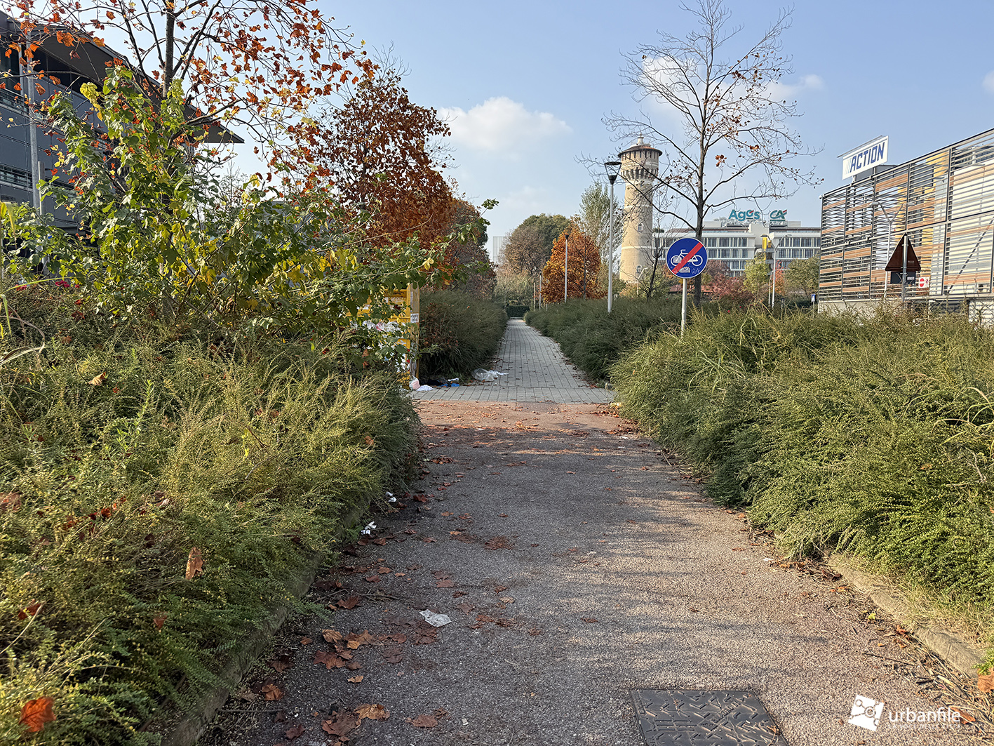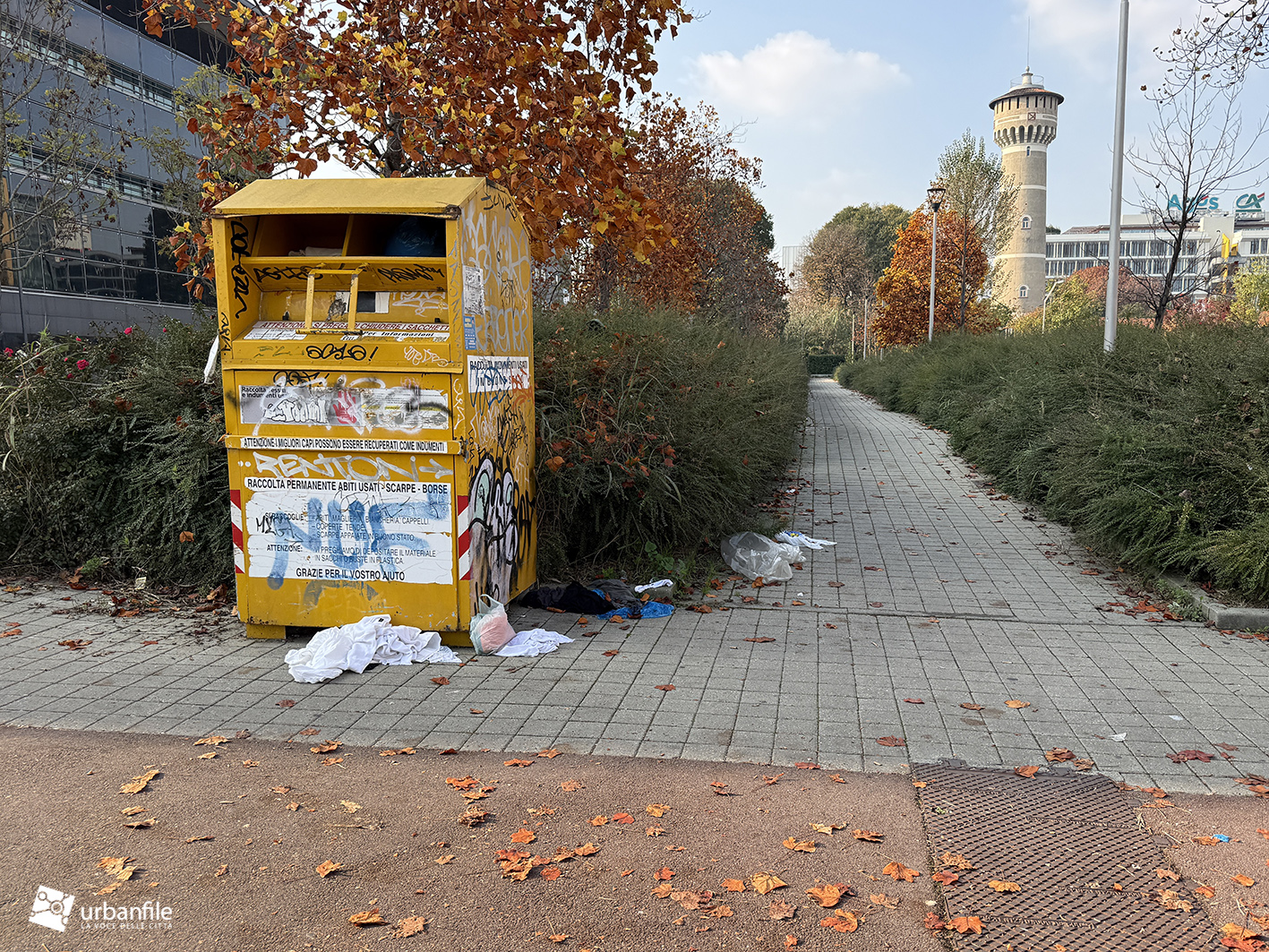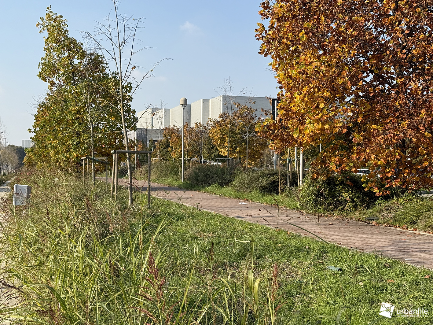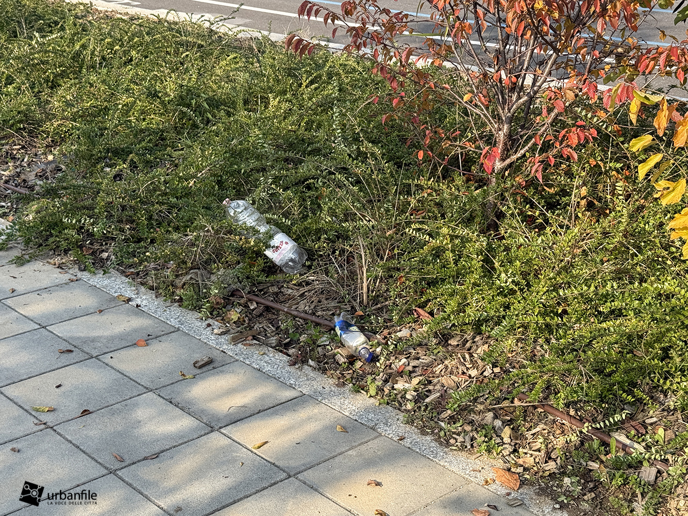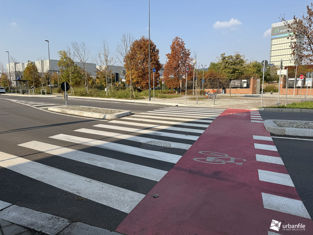 Sul lato meridionale, oltre alla ciclabile, sono stati rinnovati gli ampi marciapiedi – piastrellati, come si addice al quartiere Bicocca – e sistemate vaste aiuole con arbusti e alberi. In alcuni punti sono state realizzate anche aree di sosta con panchine, in attesa che vengano costruite le “misteriose” case previste nel comparto ancora inedificato adiacente.