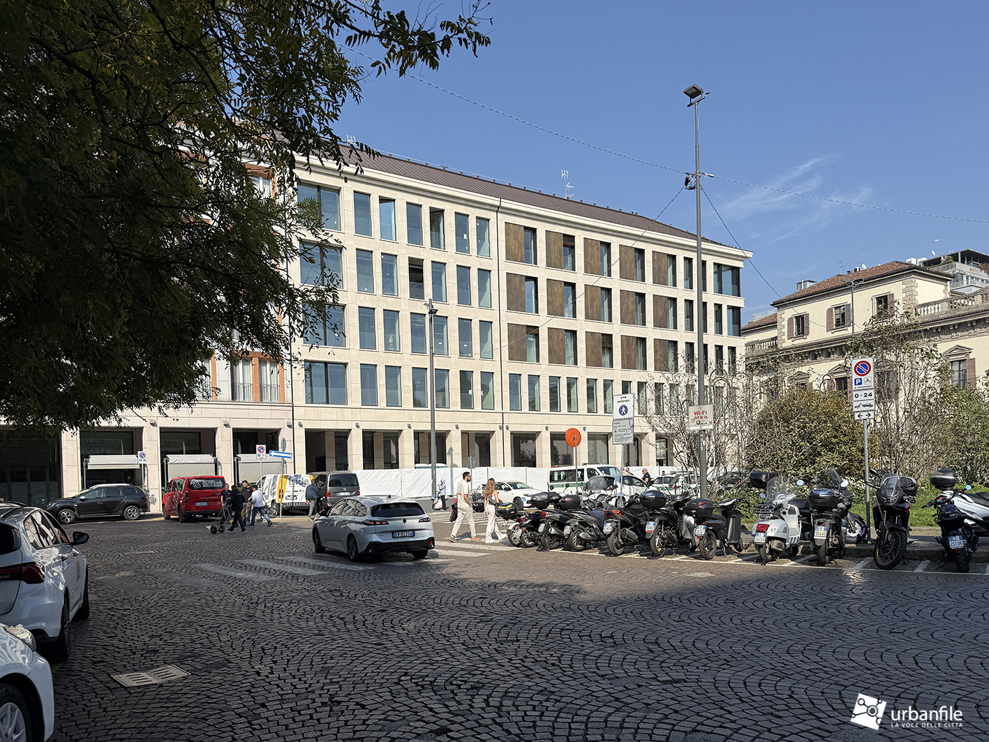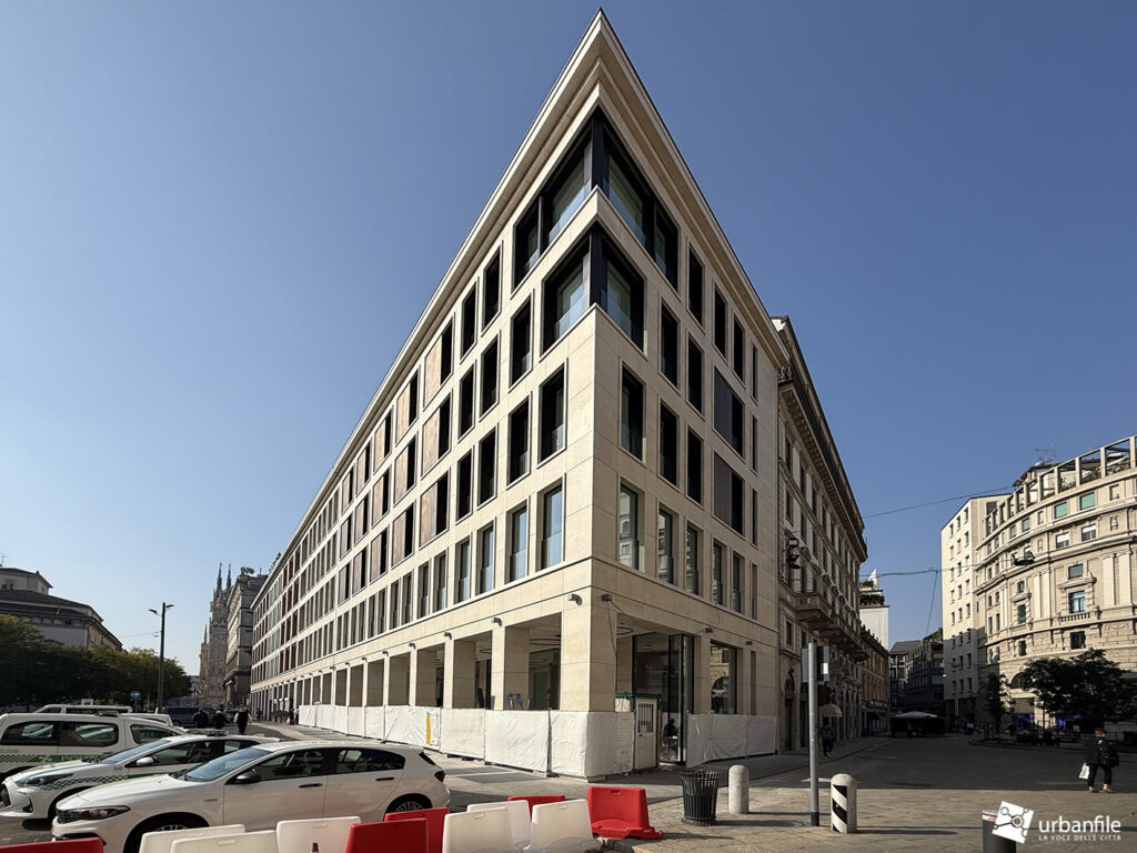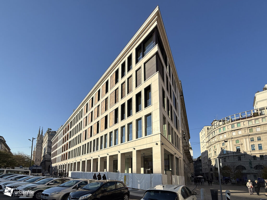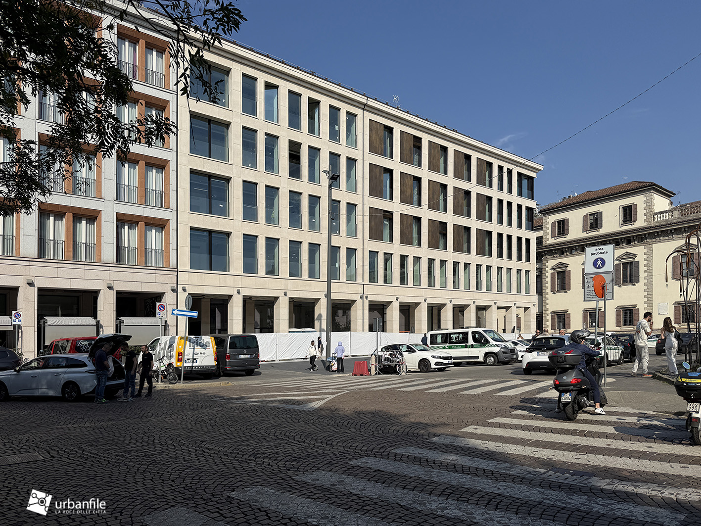 Si tratta di un edificio porticato che riprende e completa le forme progettate già nel 2000 dallo studio Arassociati per ricostruire la quinta interrotta negli anni Cinquanta. Il progetto era stato realizzato solo in parte con il completamento, nel 2009, dell’Hotel Rosa Grand, mentre il lato verso piazza Beccaria era rimasto irrisolto.