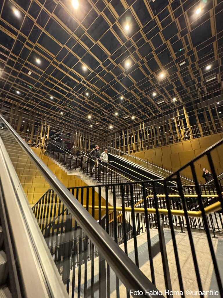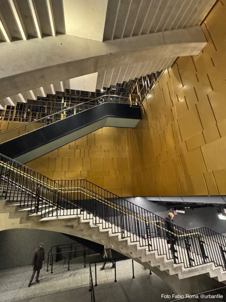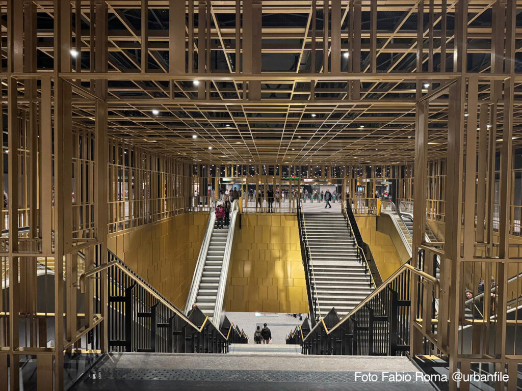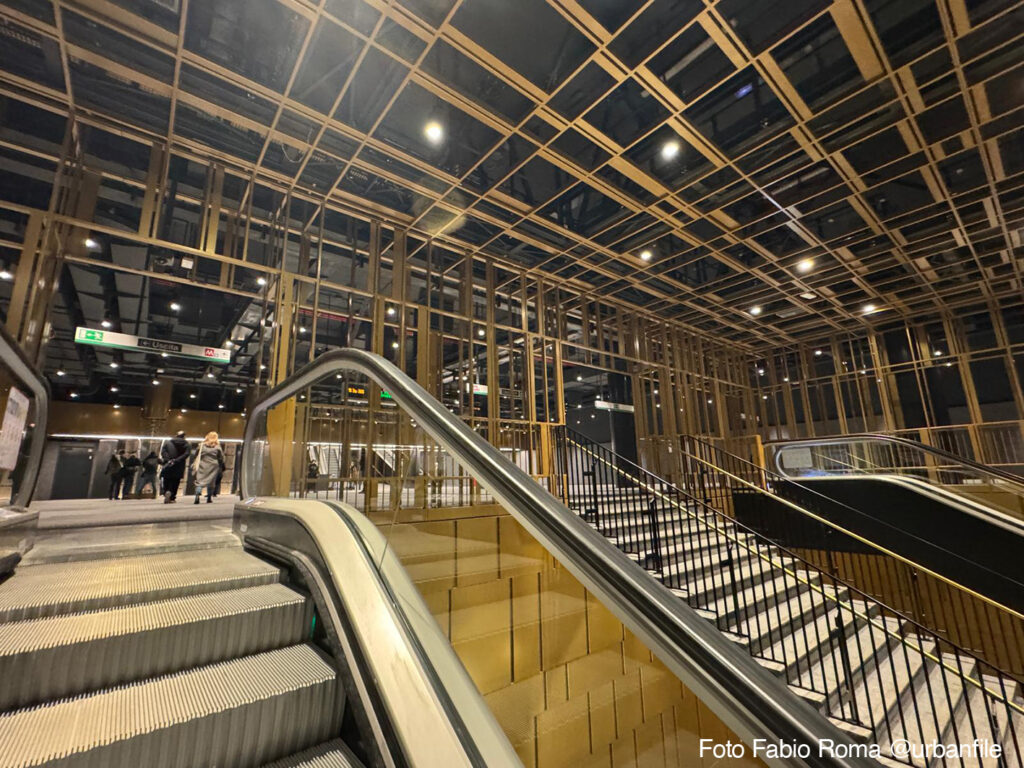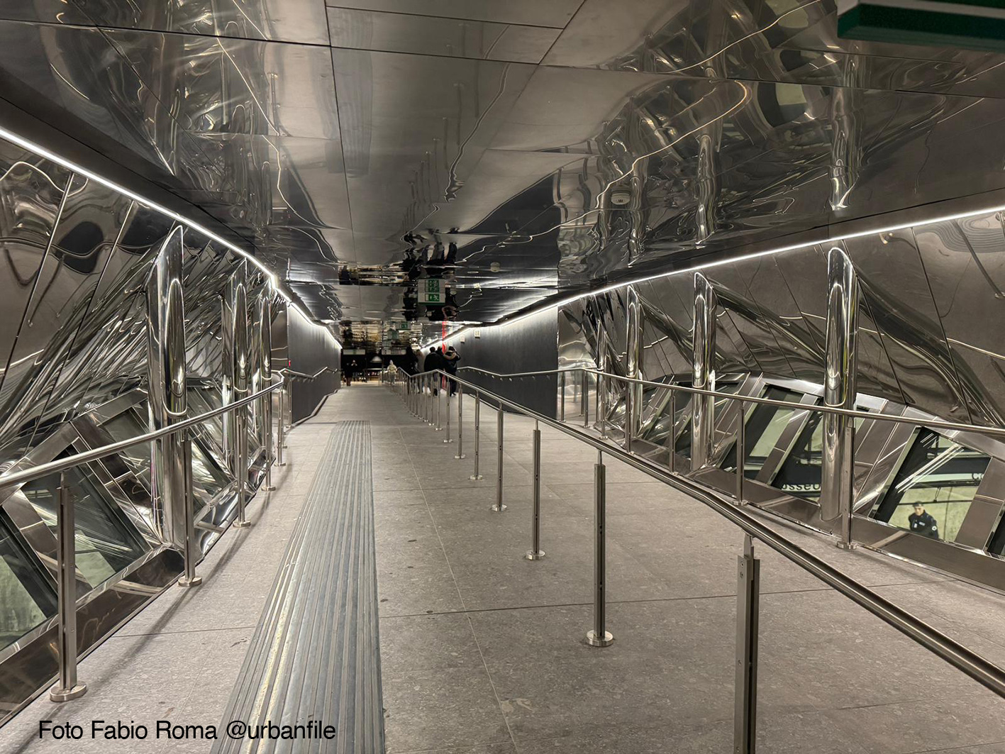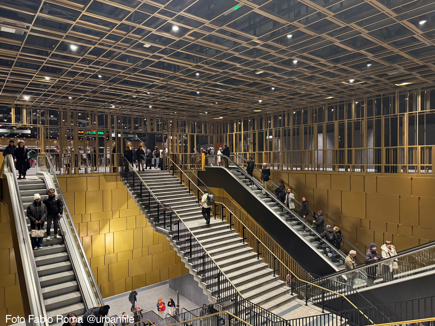 C’è una via di mezzo fra la pochezza della M4/M5 di Milano e questo, ma da una parte e dall’altra non ce la facciamo: o la zarrata oro, acciaio e lucine o il nulla cosmico stile obitorio delle ultime metro milanesi.
