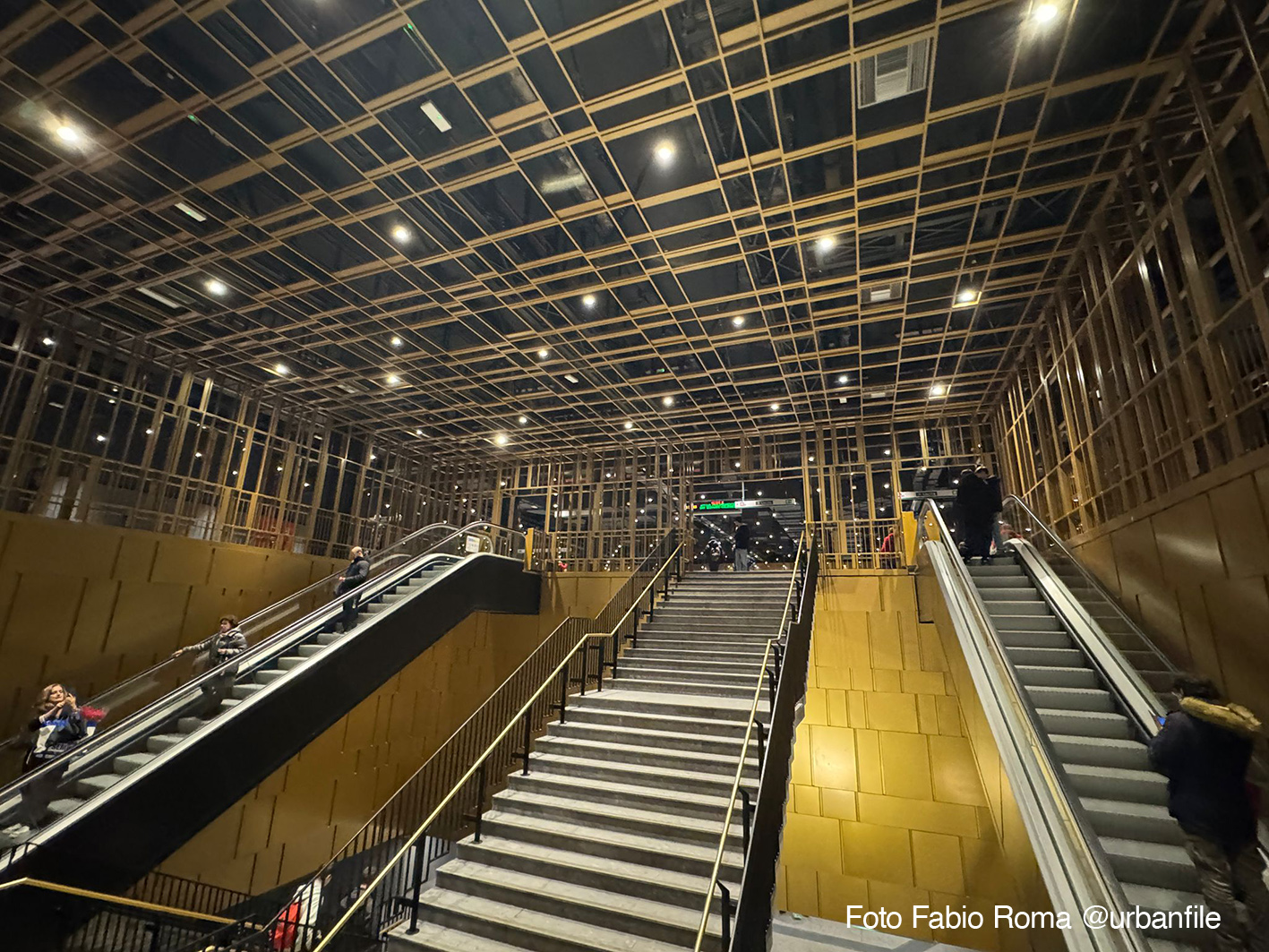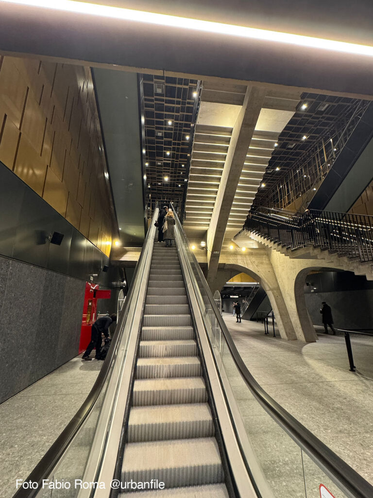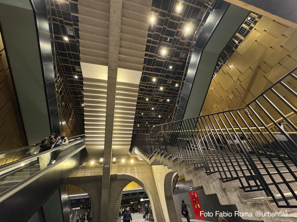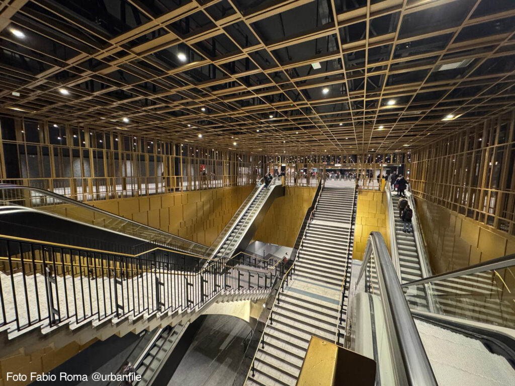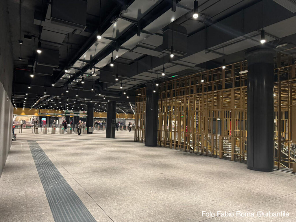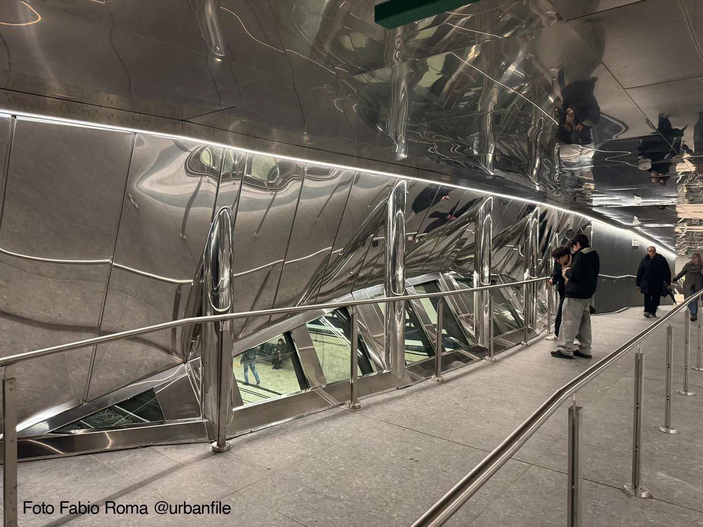 C’è una via di mezzo fra la pochezza della M4/M5 di Milano e questo, ma da una parte e dall’altra non ce la facciamo: o la zarrata oro, acciaio e lucine o il nulla cosmico stile obitorio delle ultime metro milanesi.