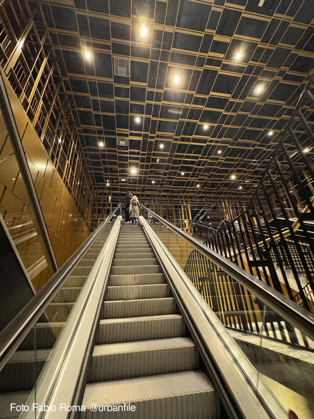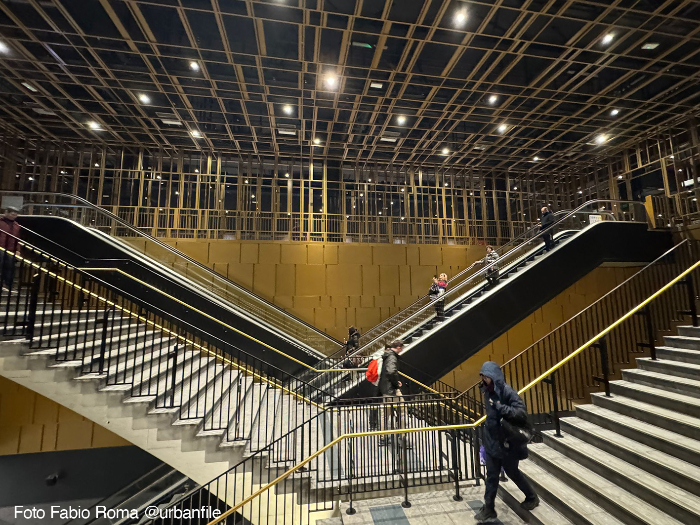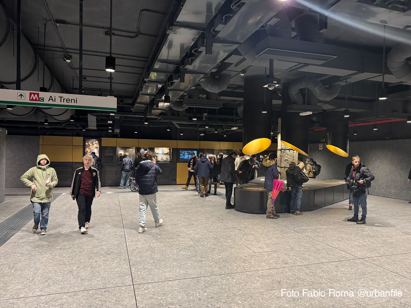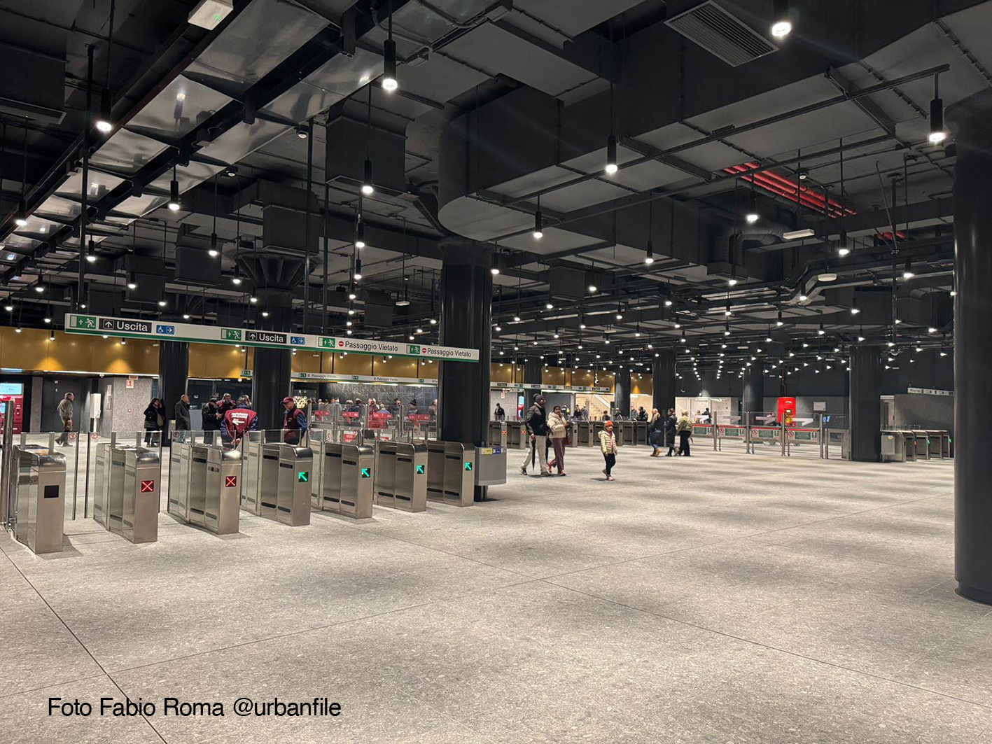 C’è una via di mezzo fra la pochezza della M4/M5 di Milano e questo, ma da una parte e dall’altra non ce la facciamo: o la zarrata oro, acciaio e lucine o il nulla cosmico stile obitorio delle ultime metro milanesi.