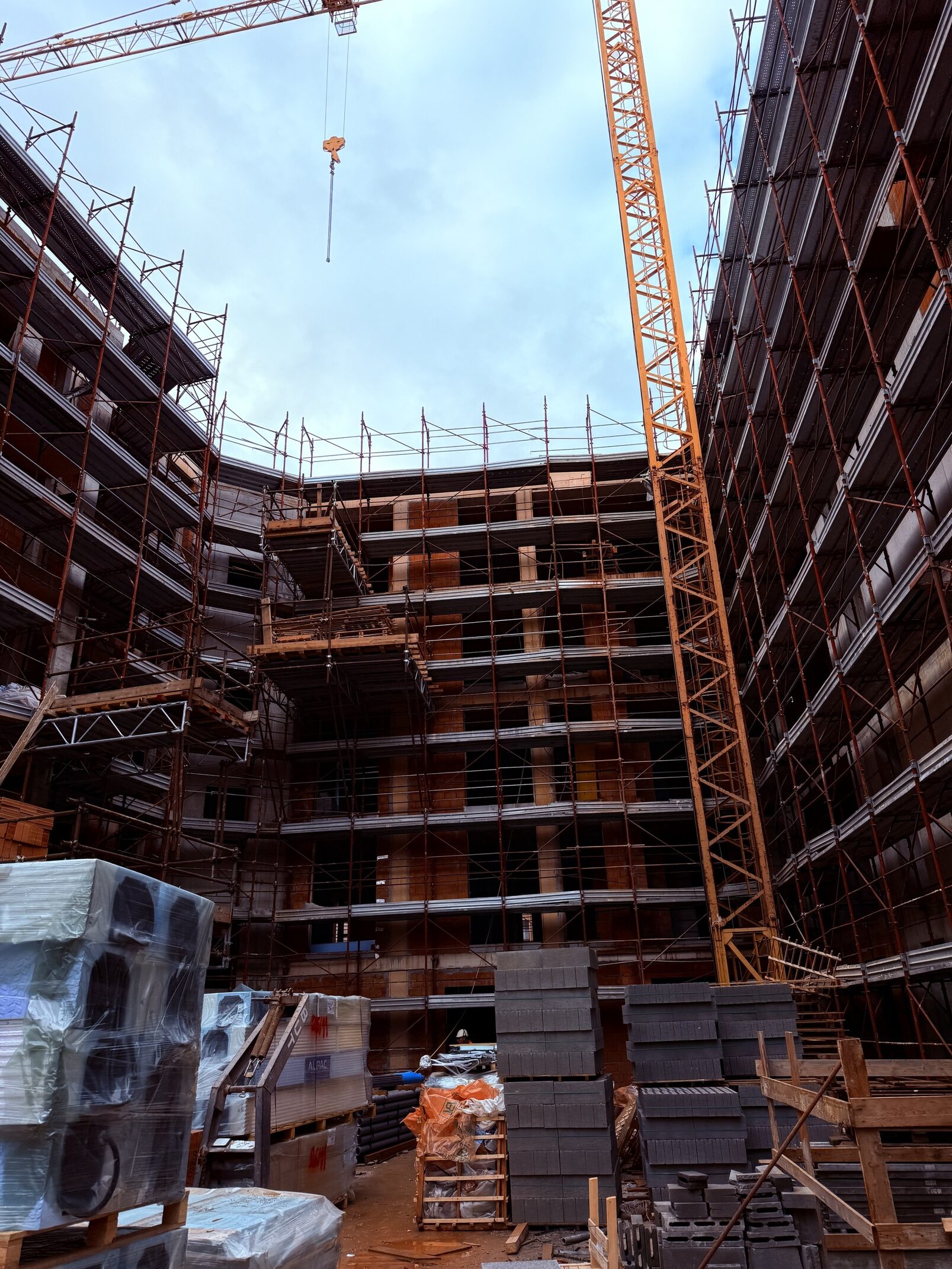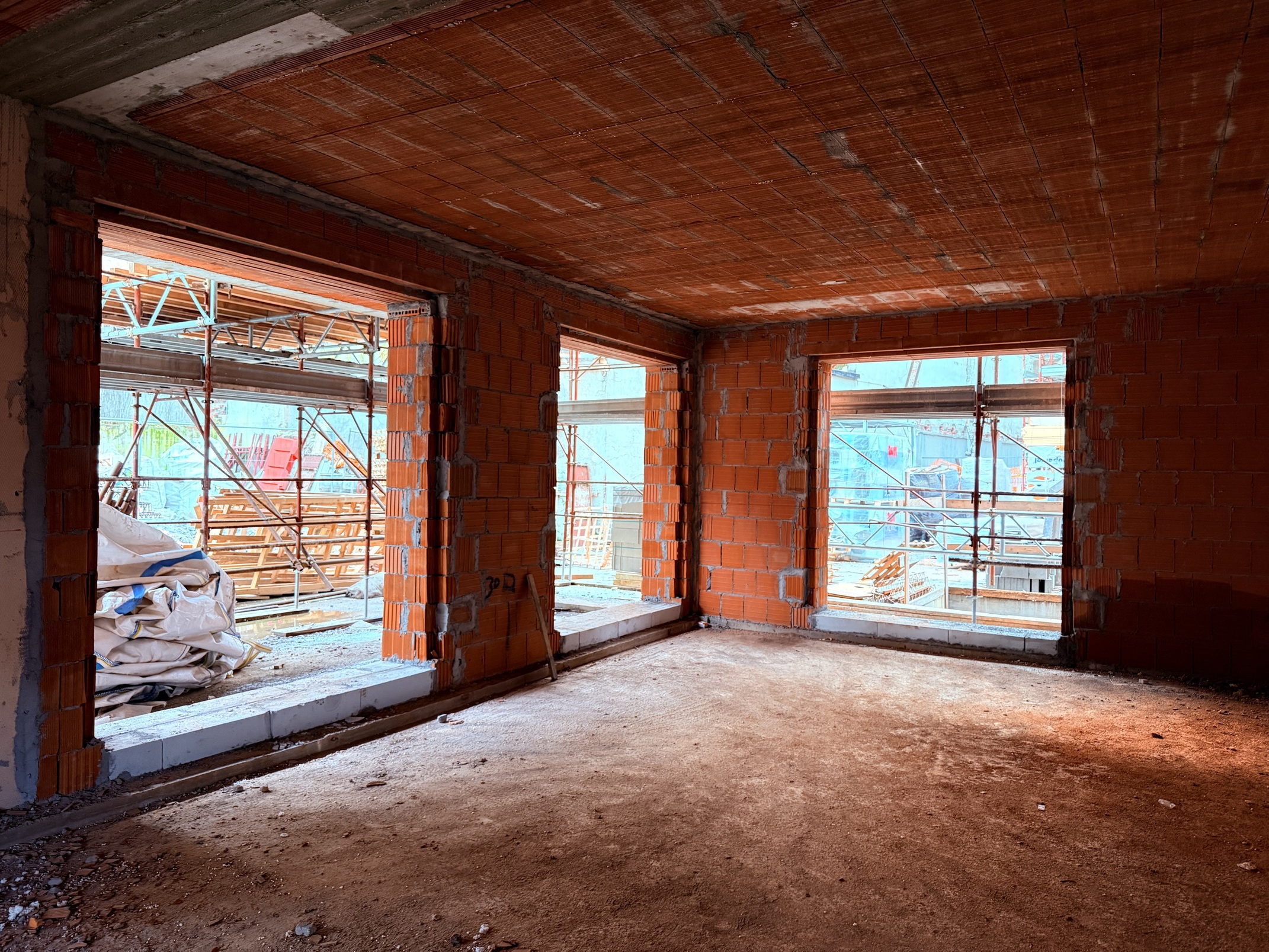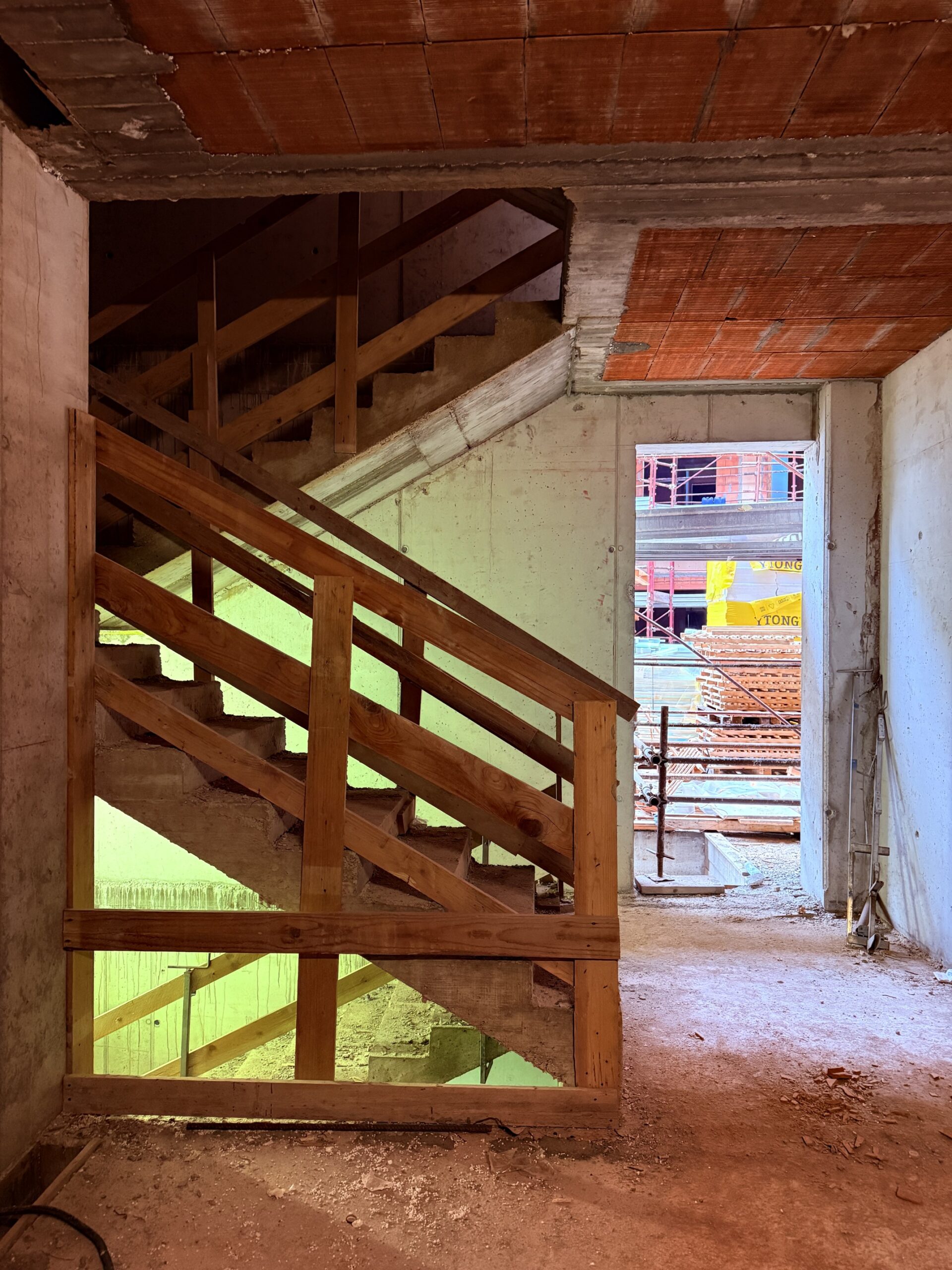 Avevamo presentato il progetto e documentato le prime fasi del cantiere in questo articolo. Di recente abbiamo avuto la possibilità di tornare in visita e, oggi, la situazione appare decisamente avanzata: le strutture fuori terra sono state completate , gli appartamenti sono stati tracciati e suddivisi con mattoni forati in laterizio, elemento ormai sempre più raro nelle nuove costruzioni, e gli spazi iniziano a delineare la volumetria definitiva dell’intervento.