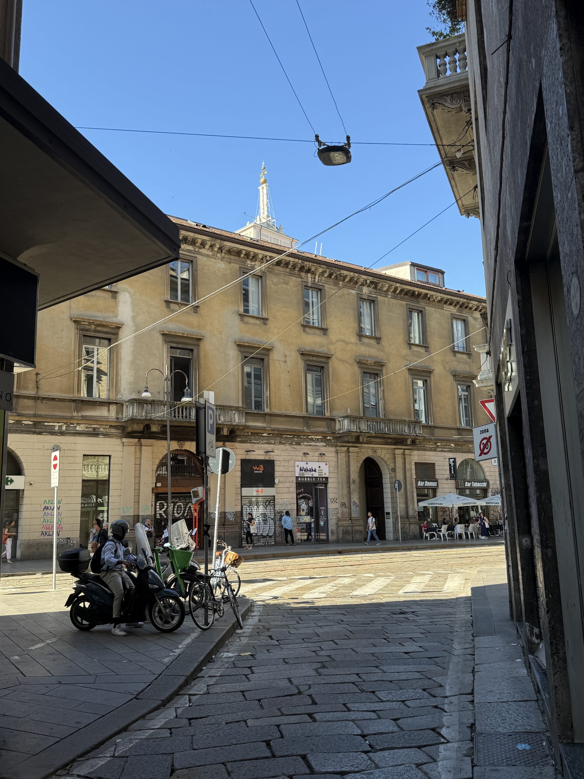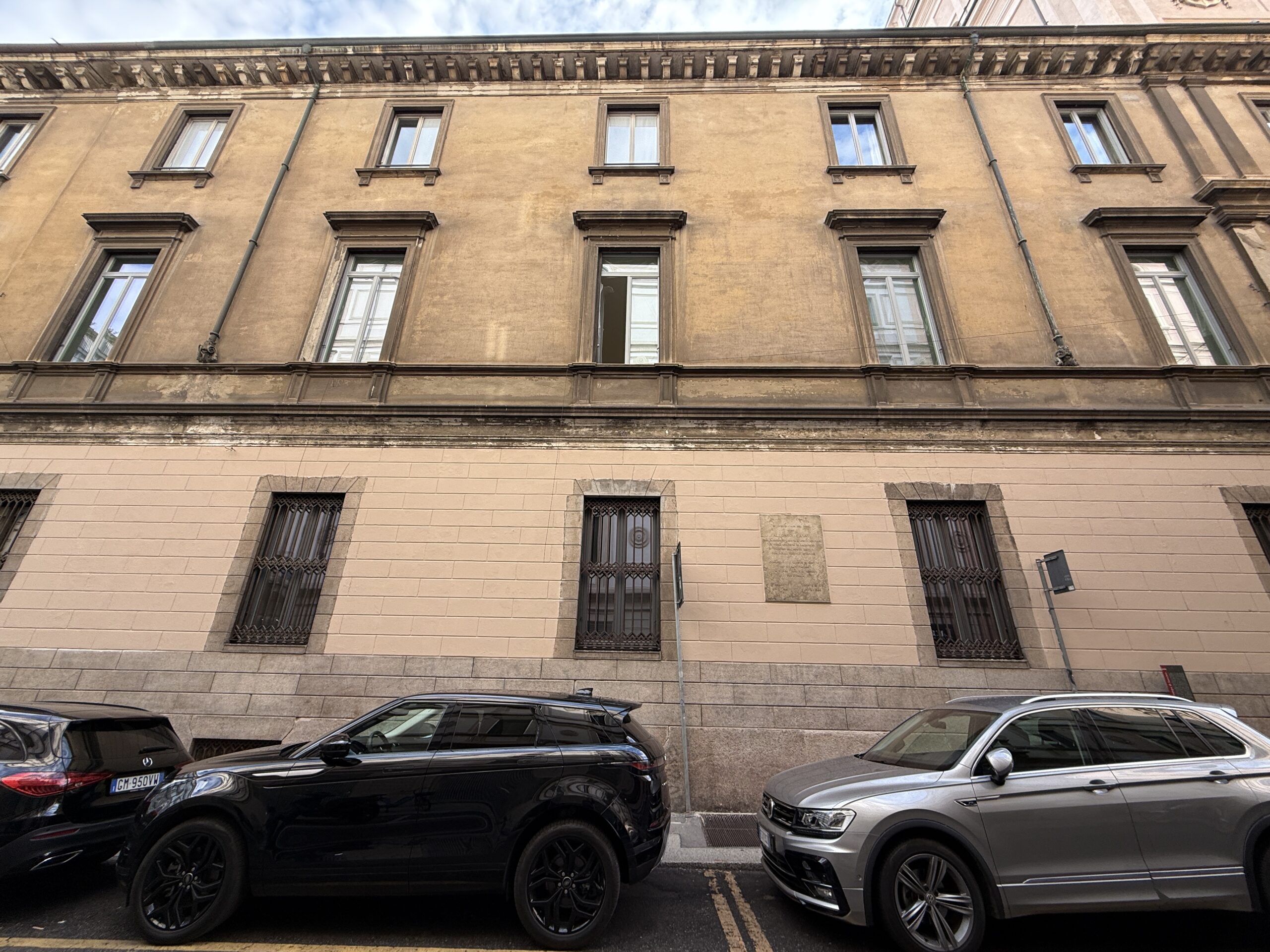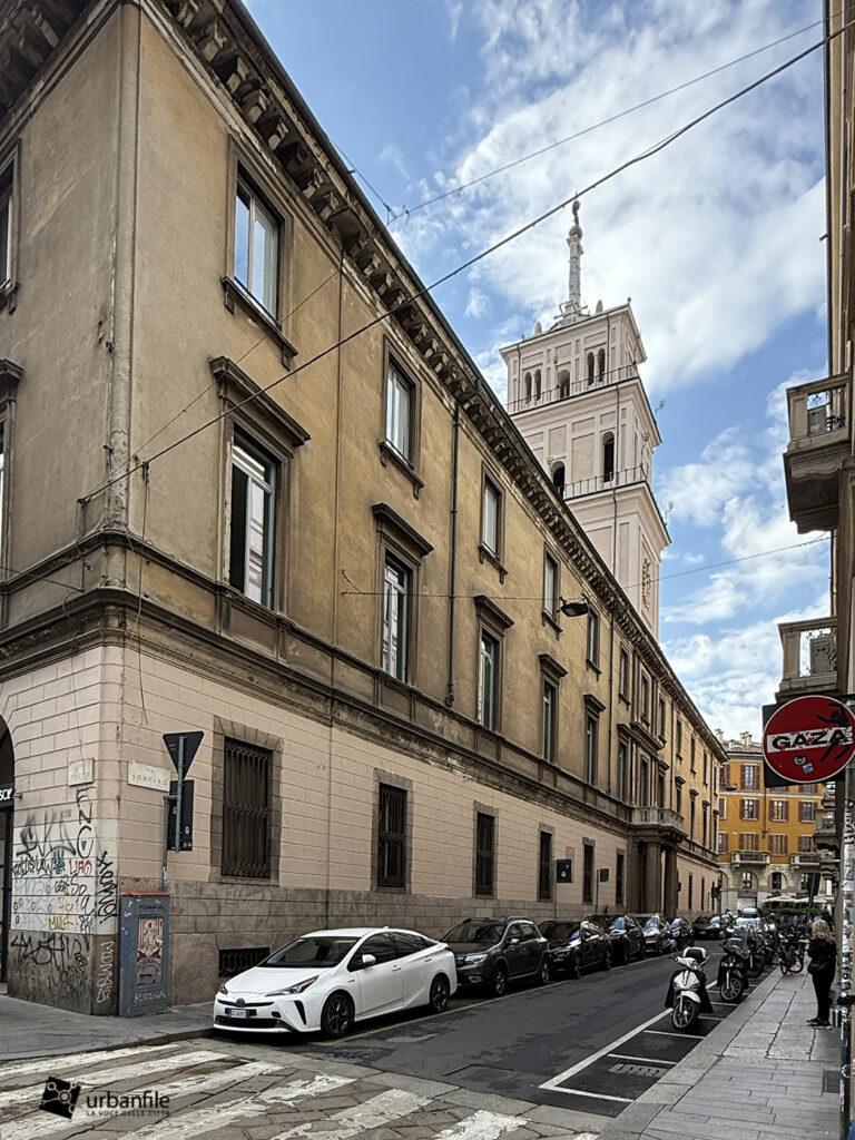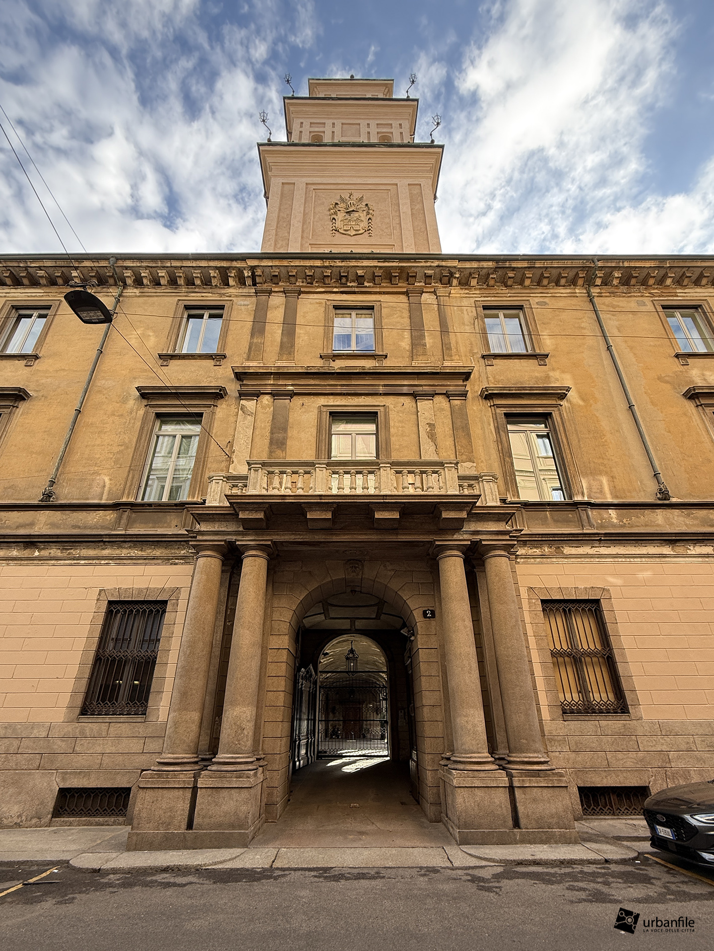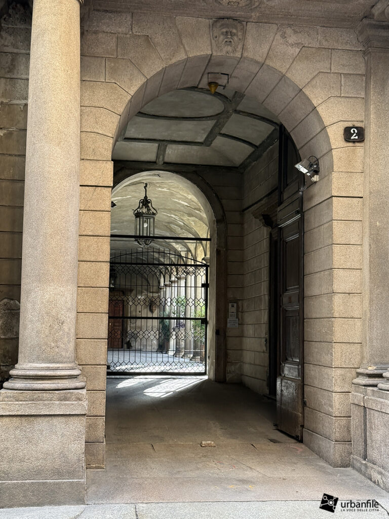 Questa straordinaria residenza, risalente ai secoli XVI e XVII, di proprietà privata e appartenente a fondazioni ed enti vari, versa da anni in uno stato di grave sciatteria. È uno dei miei crucci legati al centro storico di Milano: una meraviglia architettonica lasciata decadere progressivamente, senza che nessuno sembri intervenire in modo risolutivo, nonostante sia abitato e utilizzato da varie società. Periodicamente si parla di lavori imminenti, ma come spesso accade ci si limita a interventi parziali e discontinui, talvolta accompagnati da aggiunte che ne peggiorano l’aspetto, come i lucernari inseriti anni fa e ben visibili affacciandosi su via Torino.