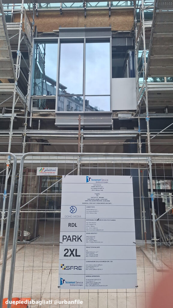 Cominciamo col cantiere per la riqualificazione dell’ex Palazzo Galbani, l’edificio direzionale di via Fabio Filzi 25 — oggi ribattezzato come Filzi Venticinque — concepito negli anni Cinquanta da Pier Luigi Nervi insieme agli architetti Ermenegildo ed Eugenio Soncini.