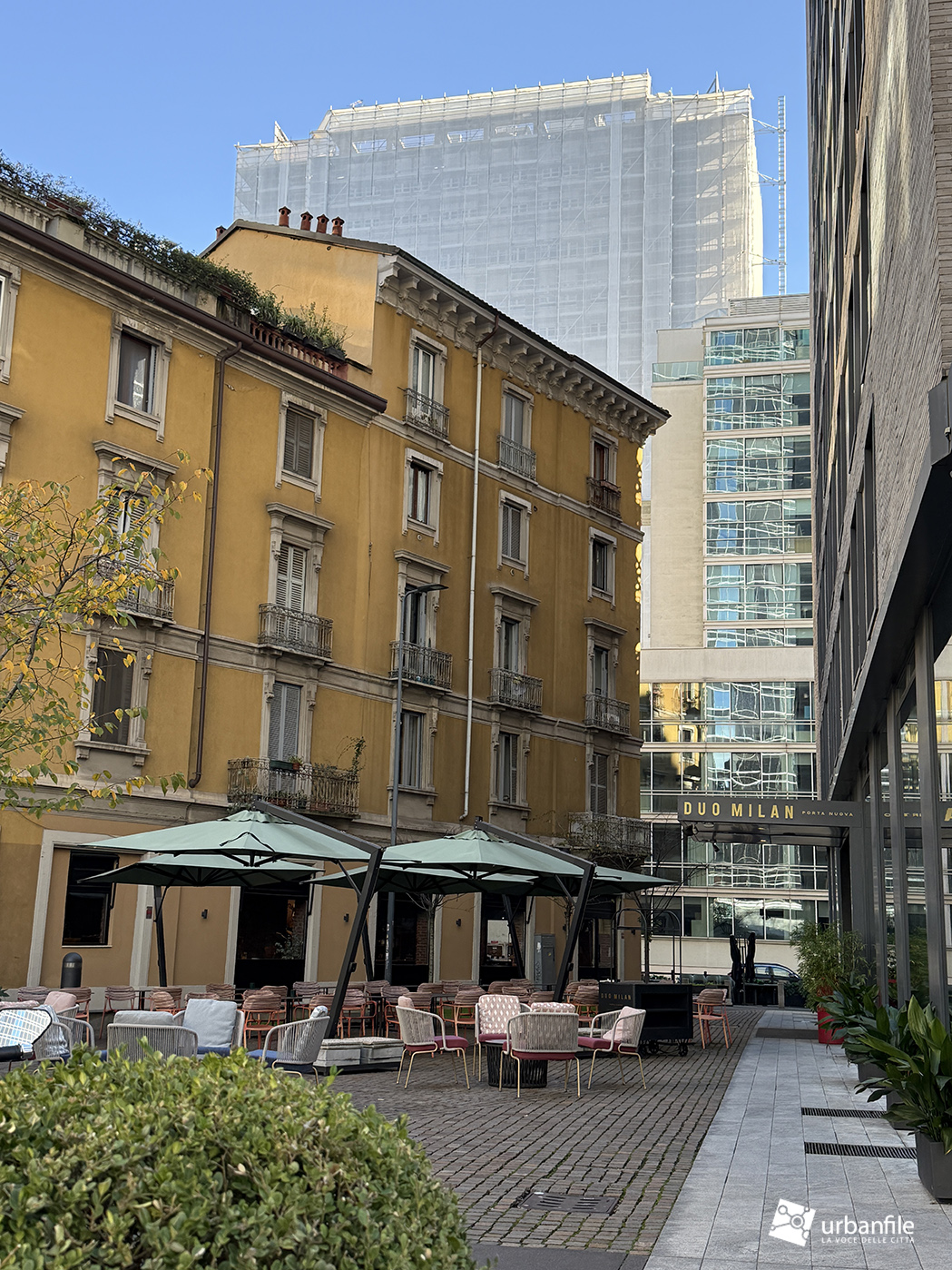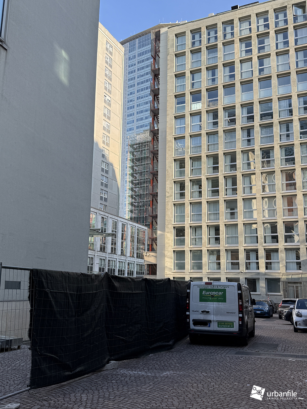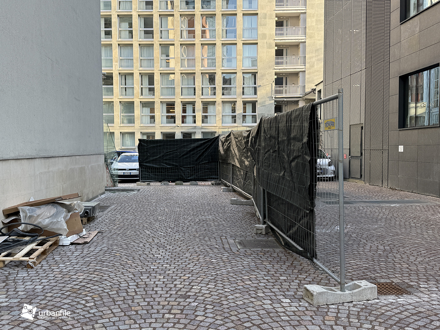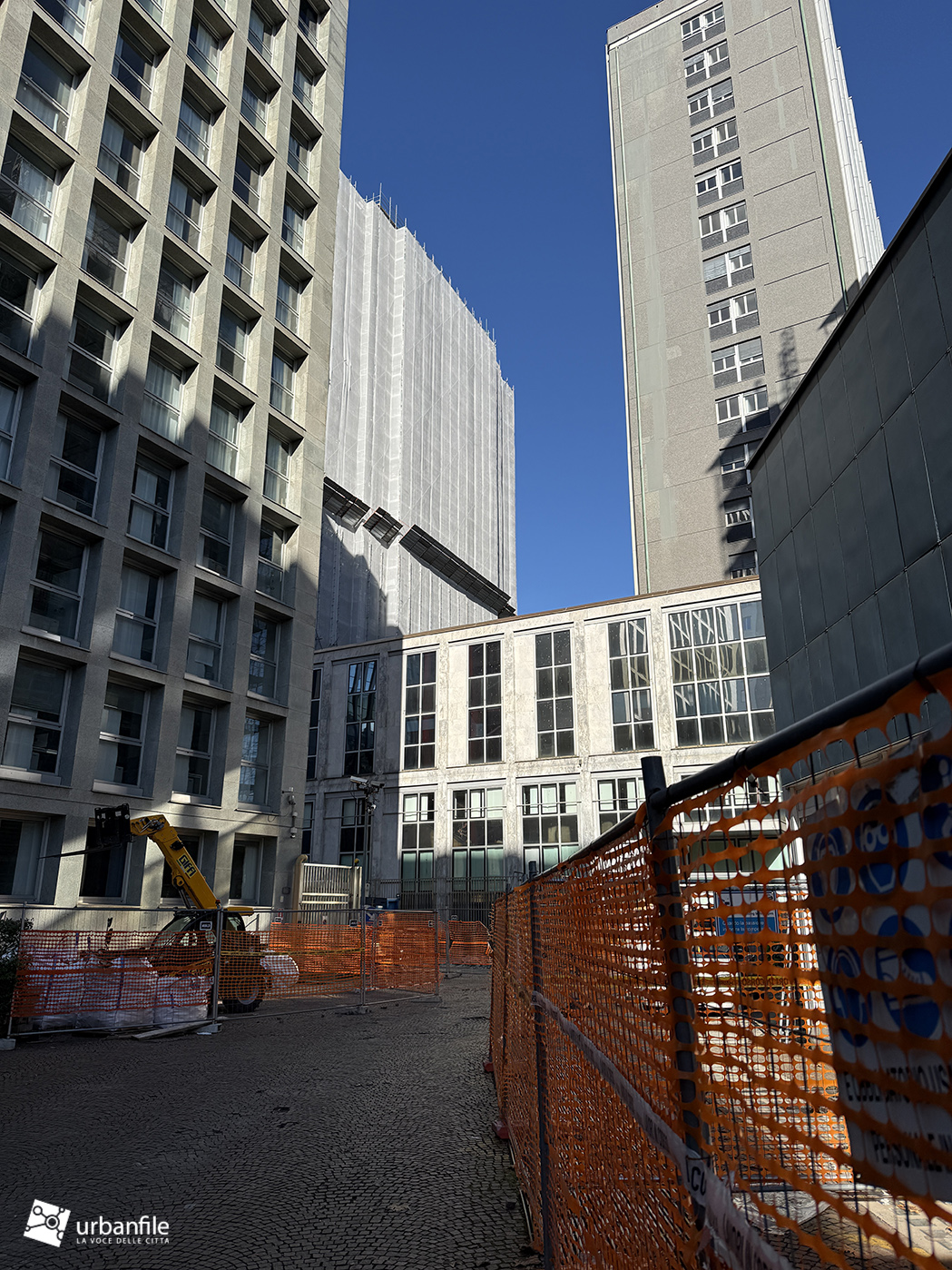 Sempre all’interno dello stesso isolato, composto da diversi palazzi per uffici costruiti tutti negli anni Cinquanta, sono in corso dei lavori per la riqualificazione dei percorsi stradali pedonali e non.