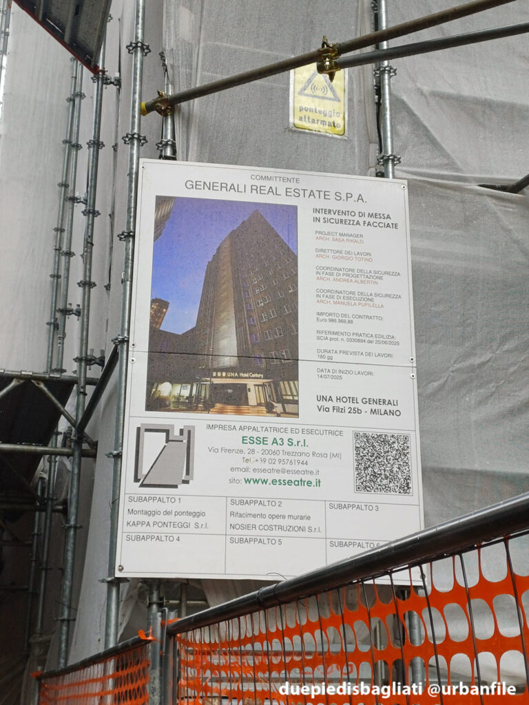 Si è trattato di un intervento di messa in sicurezza delle facciate. Infatti l’edificio di 18 piani, sede dell’UNA HOTELS Century Milano, venne realizzato sul finire degli anni Cinquanta e progettate per il Centro Direzionale nel blocco per uffici che si trova in via Fabio Filzi 25. La torre gemella dieci anni fa venne completamente riqualificata secondo un progetto di Archemi.