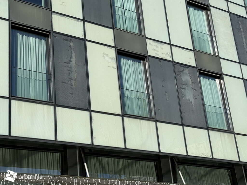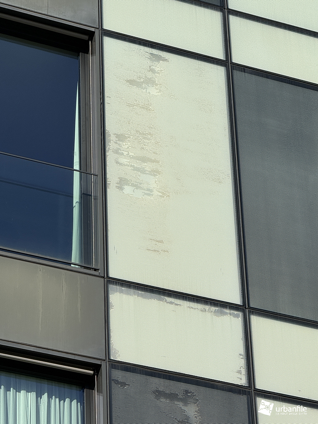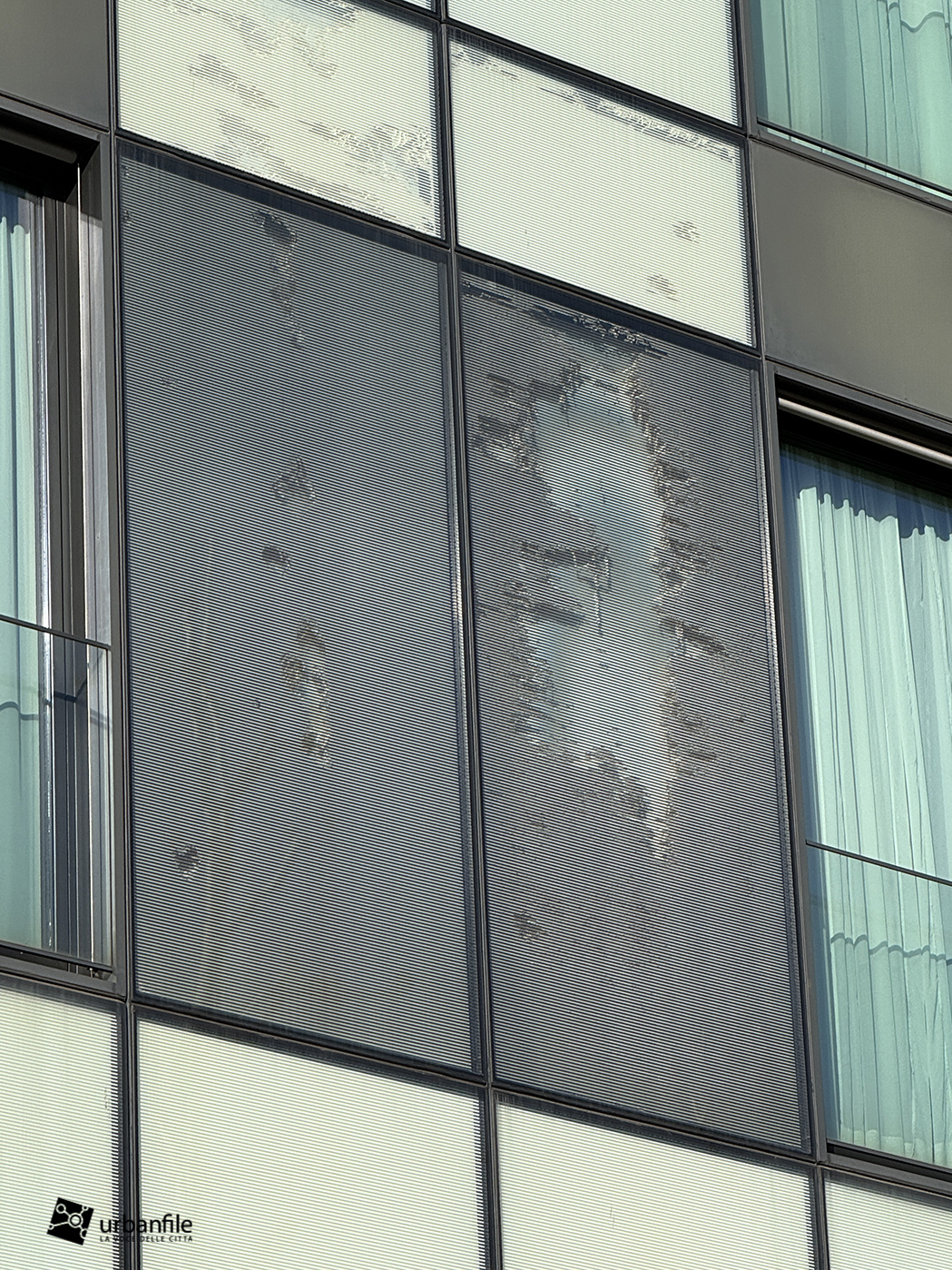 L’altro giorno, però, osservando la facciata del nuovo edificio, sono rimasto colpito da come questa, formata da lastre di vetro lavorate con pellicole in grado di creare un effetto chiaroscuro, si stia lentamente deteriorando, risultando già compromessa a soli undici anni dalla conclusione dei lavori. Continuo a sorprendermi di come i nuovi materiali utilizzati nelle costruzioni contemporanee siano, alla fine, effimeri e abbiano una durata così limitata.