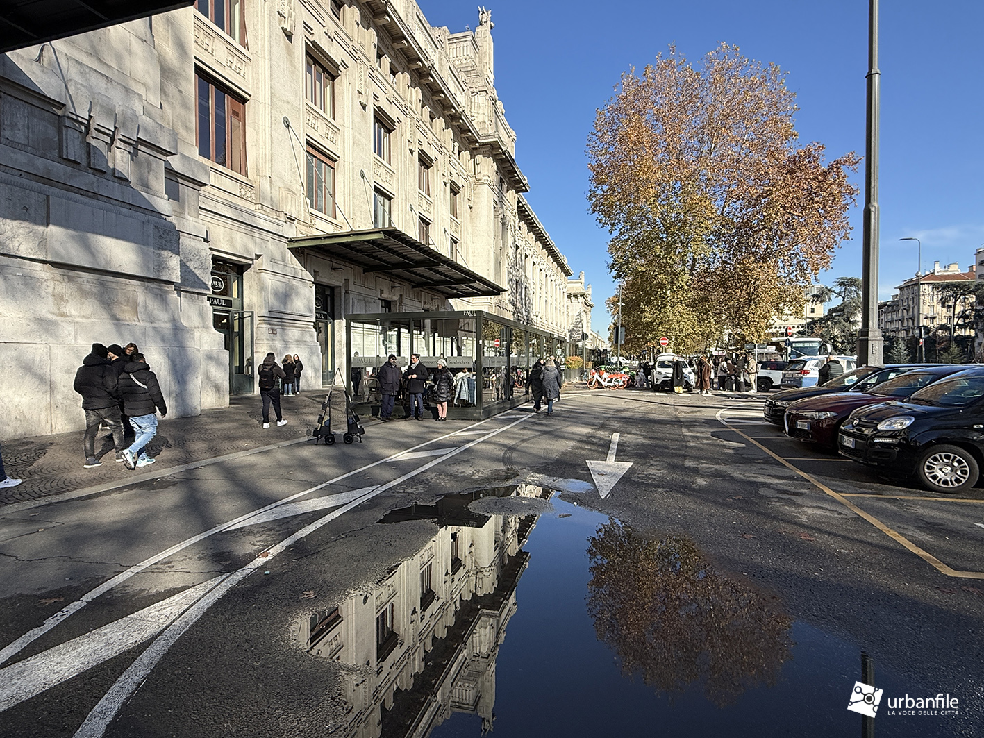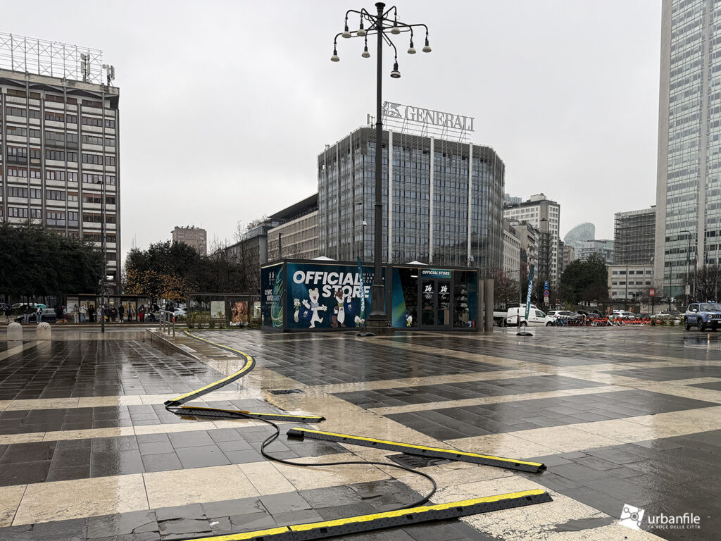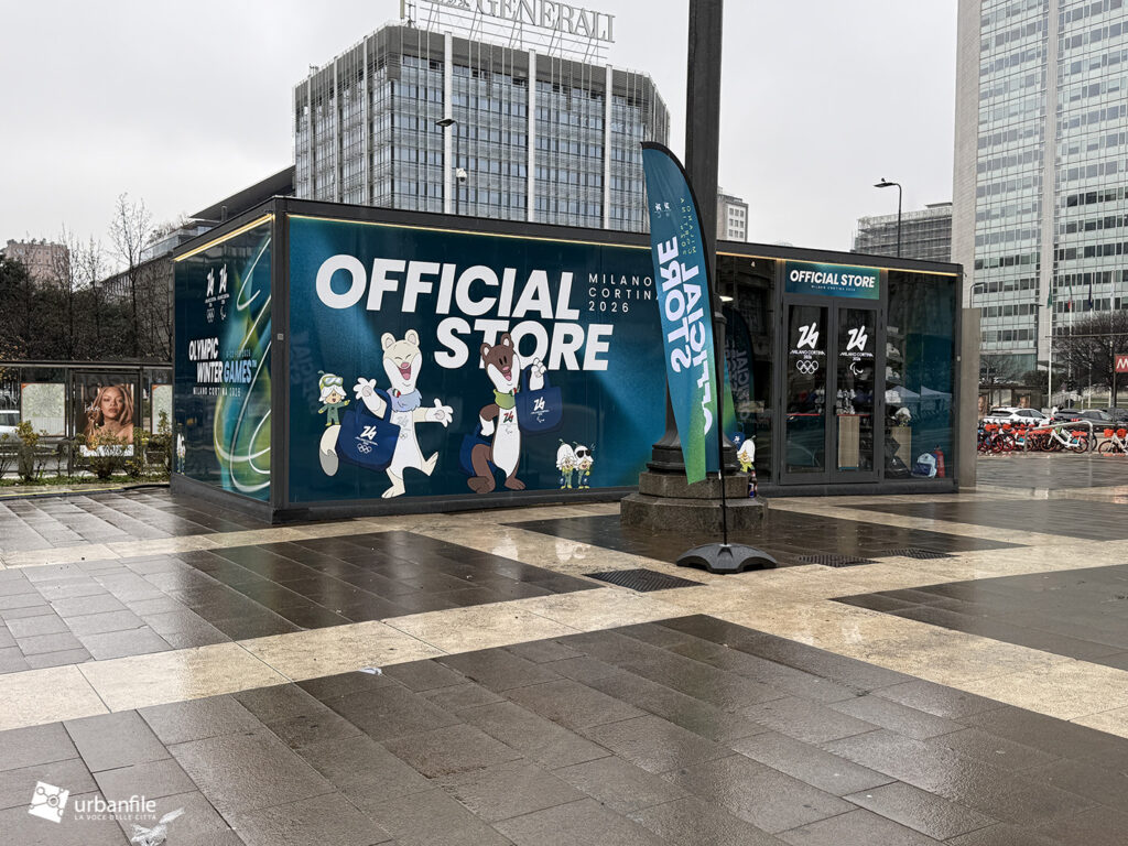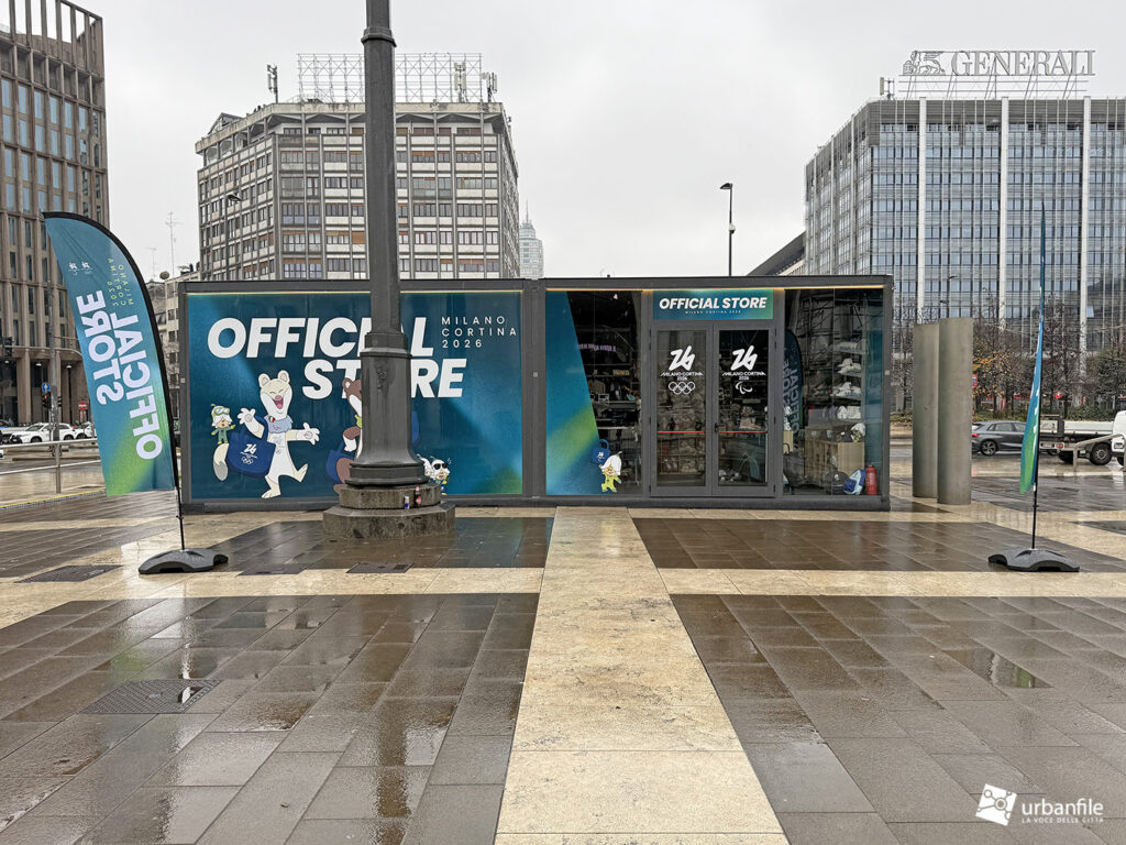 Concludiamo con l’installazione in piazza Duca d’Aosta del chiosco dei souvenir dell’Official Store delle Olimpiadi Milano Cortina 2026. Non aggiungo altro e non commento: il giudizio lo lascio a voi.