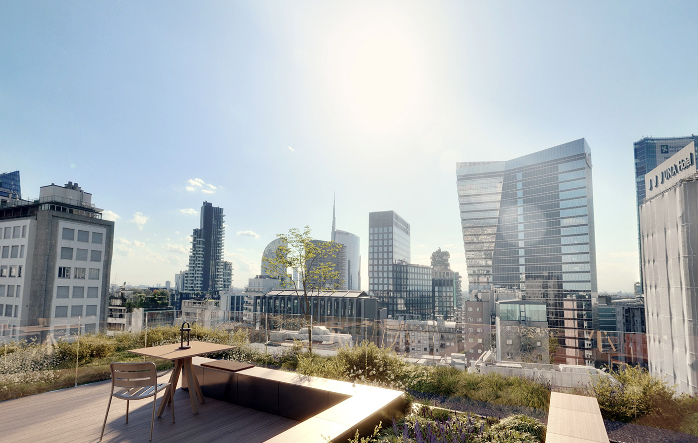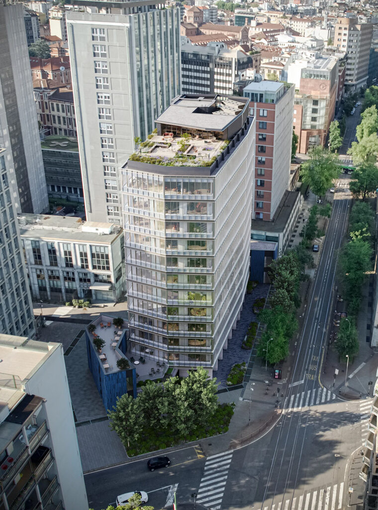L’impianto strutturale regolare, le facciate scandite con rigore e il rapporto inscindibile con il contesto della città ne fanno un esempio compiuto di architettura modernista dell'”international style” applicata alla funzione direzionale, oggi reinterpretata come building moderno per uffici e spazi business nel cuore di Milano.