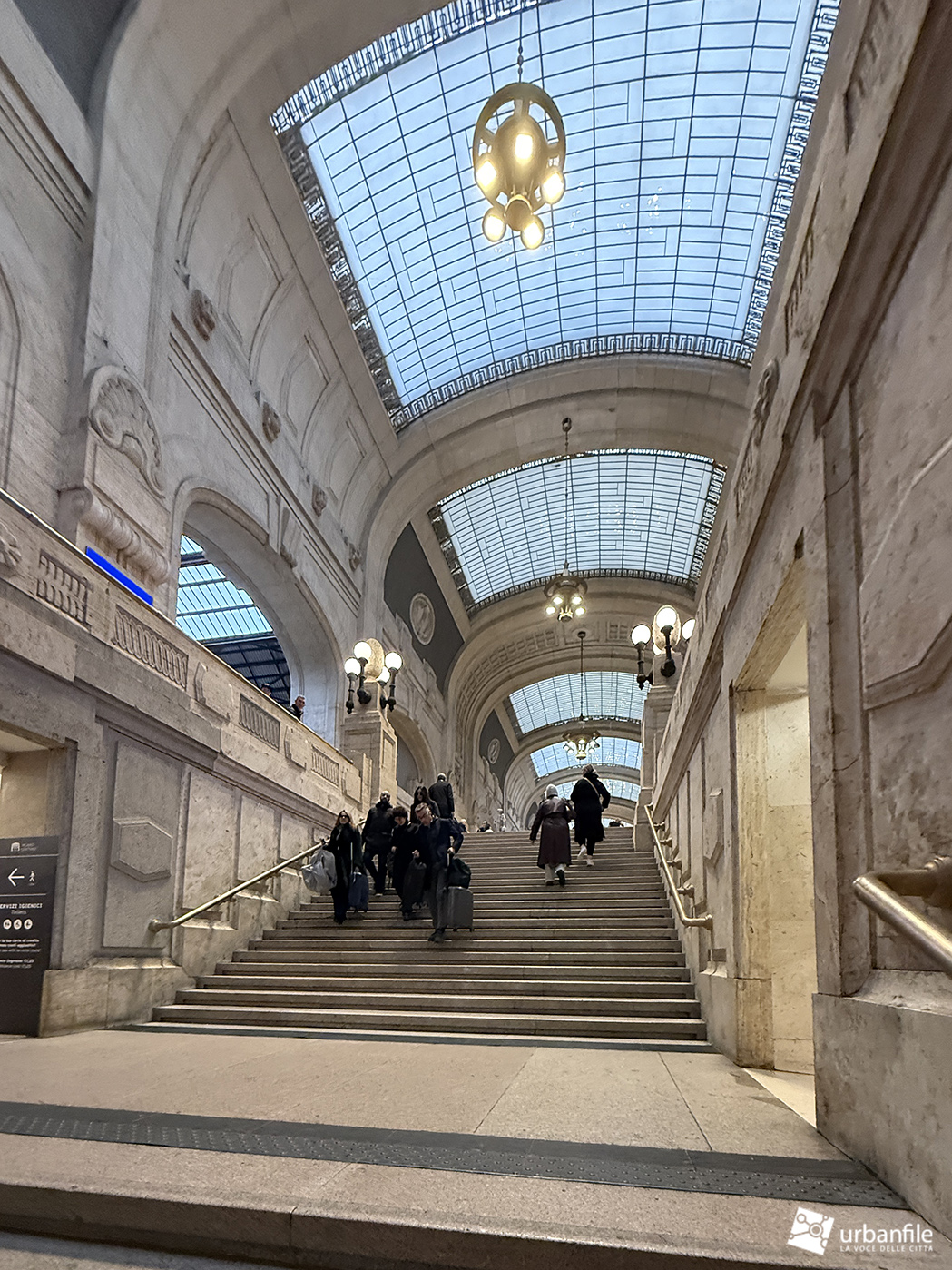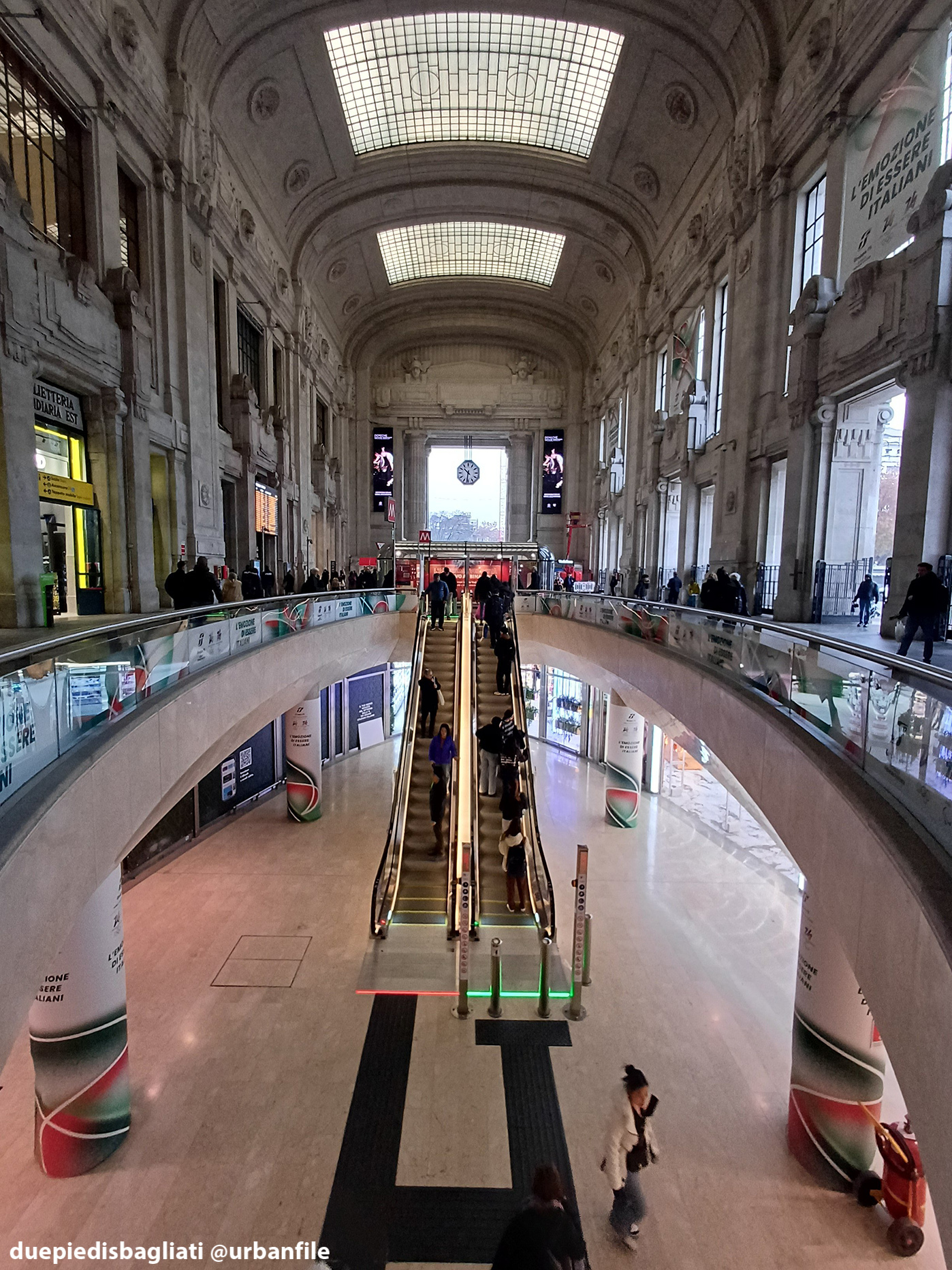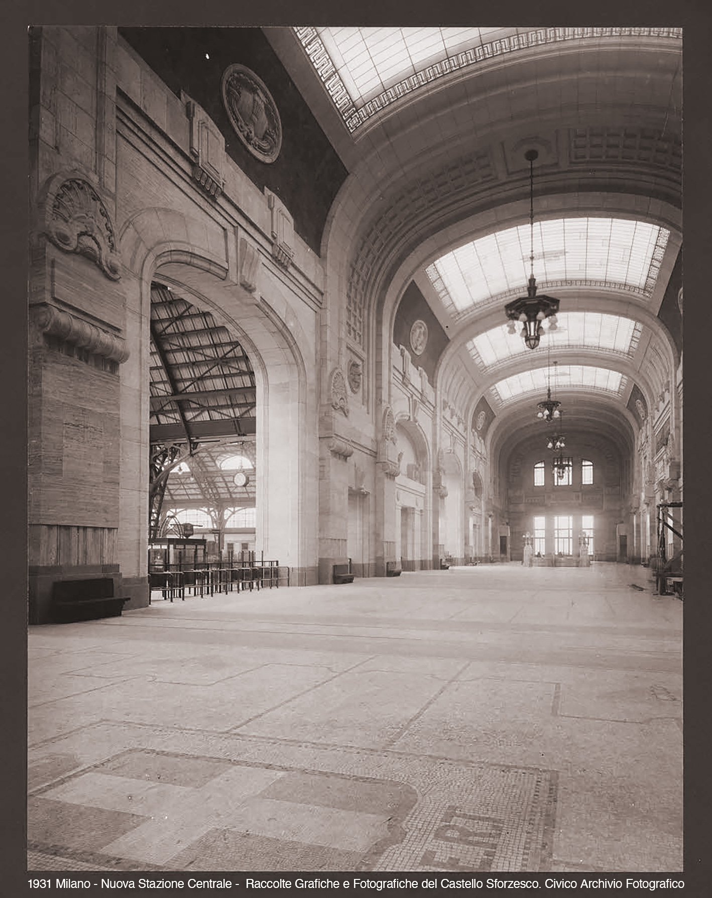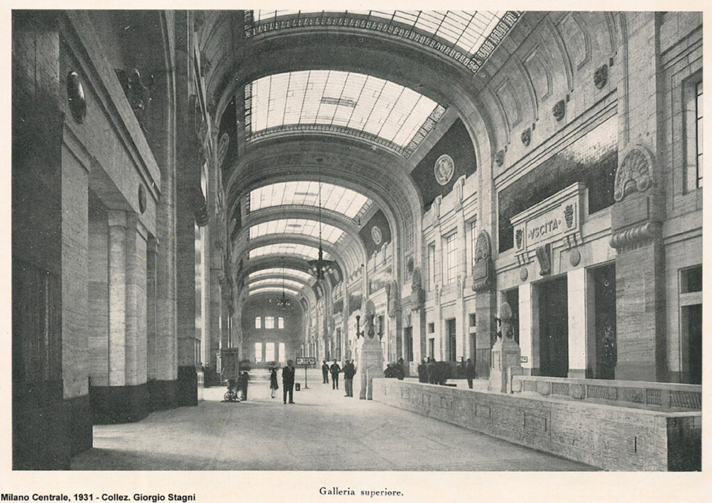 Ricordiamo che la Stazione di Milano Centrale, progettata dall’architetto Ulisse Stacchini, venne inaugurata nel 1931 per rimpiazzare la struttura precedente, ormai insufficiente a gestire il continuo incremento del traffico passeggeri. Il concorso di progettazione fu bandito nel 1912, ma l’avvio dei lavori subì una brusca battuta d’arresto a causa dello scoppio della Grande Guerra e delle successive difficoltà economiche, ed ecco il motivo per cui la stazione ha più un aspetto déco che razionalista.
