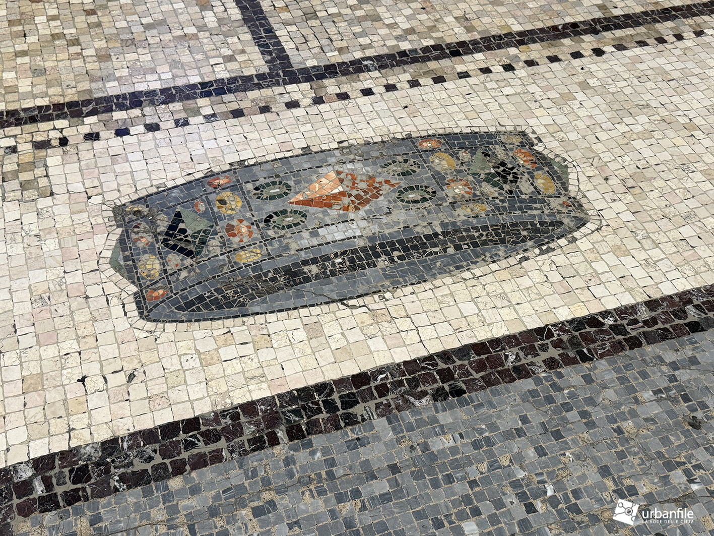 Questa operazione, che già all’epoca suscitò clamore, comportò la rimozione di alcune decorazioni musive presenti nella pavimentazione della Galleria di Testa.