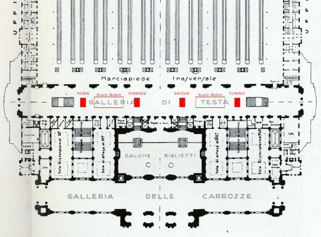 Tra le principali novità introdotte per l’ammodernamento della stazione, la sua conversione anche a polo commerciale e una migliore fruizione degli spazi, vi fu l’apertura di grandi fori nella soletta della Galleria delle Carrozze per collegarla al piano inferiore interrato, concepito come estensione del mezzanino della metropolitana M2 Centrale. Un intervento analogo è stato realizzato nella sovrastante Galleria di Testa, dove sono stati fatti sbucare i tapis roulant (ora in sostituzione), creando un collegamento rapido con i livelli sottostanti e con la nuova biglietteria ricavata negli ex magazzini e uffici del complesso ferroviario.