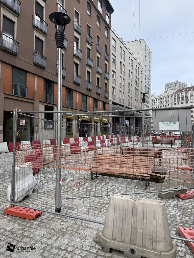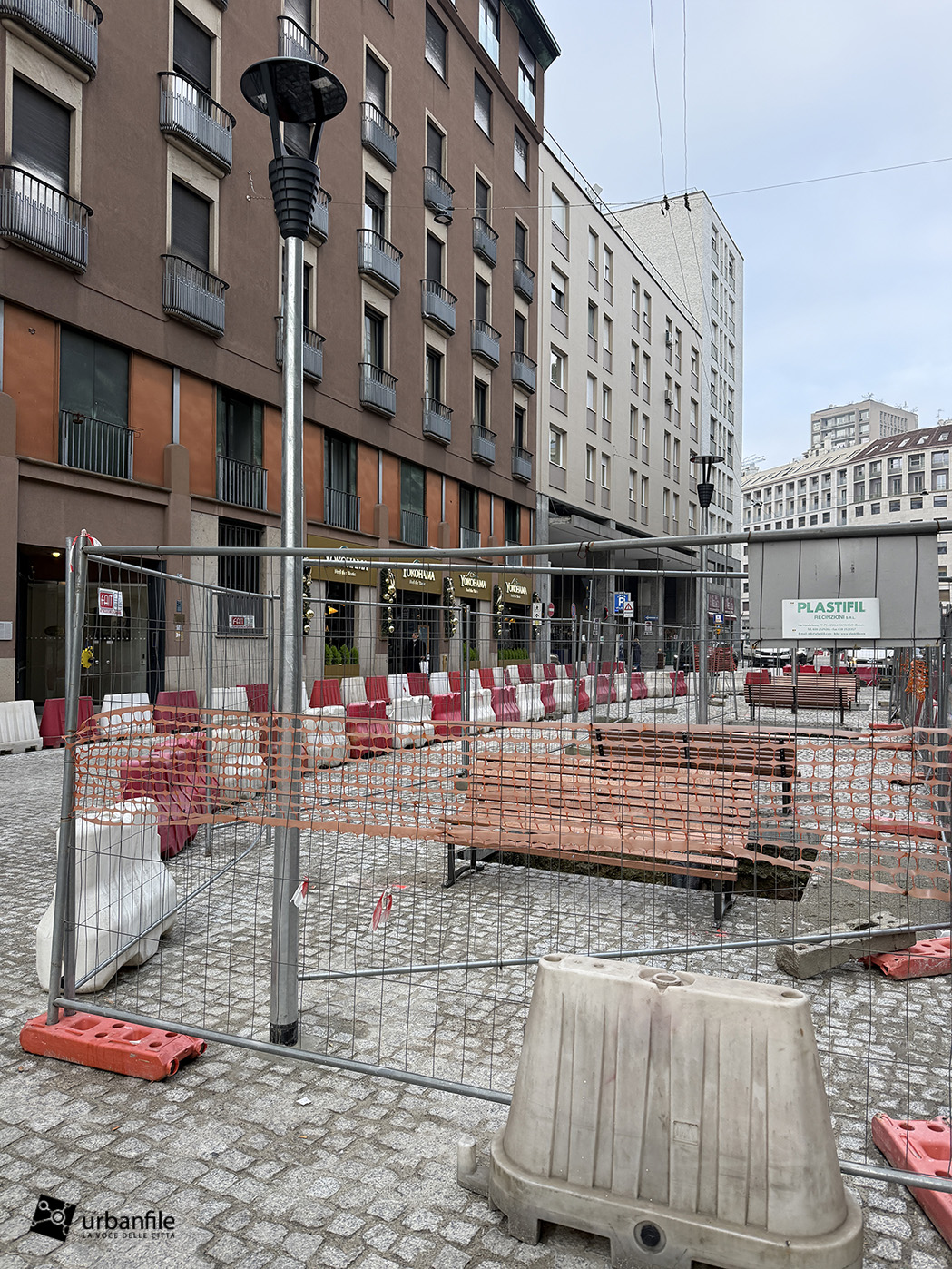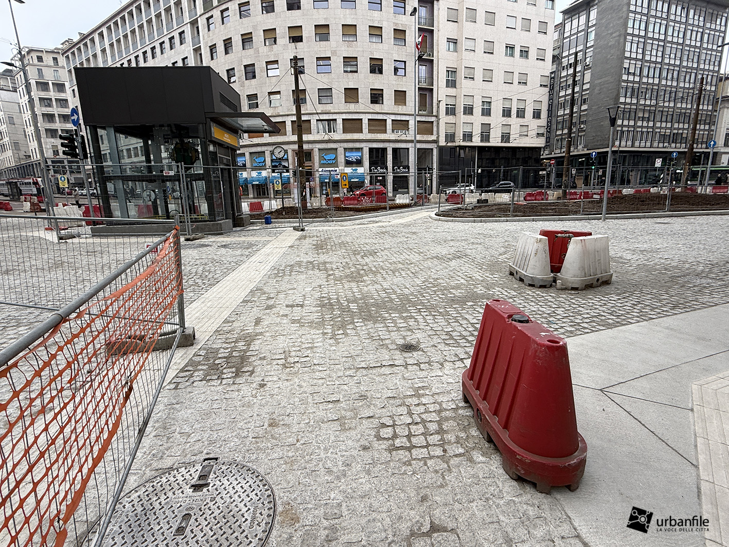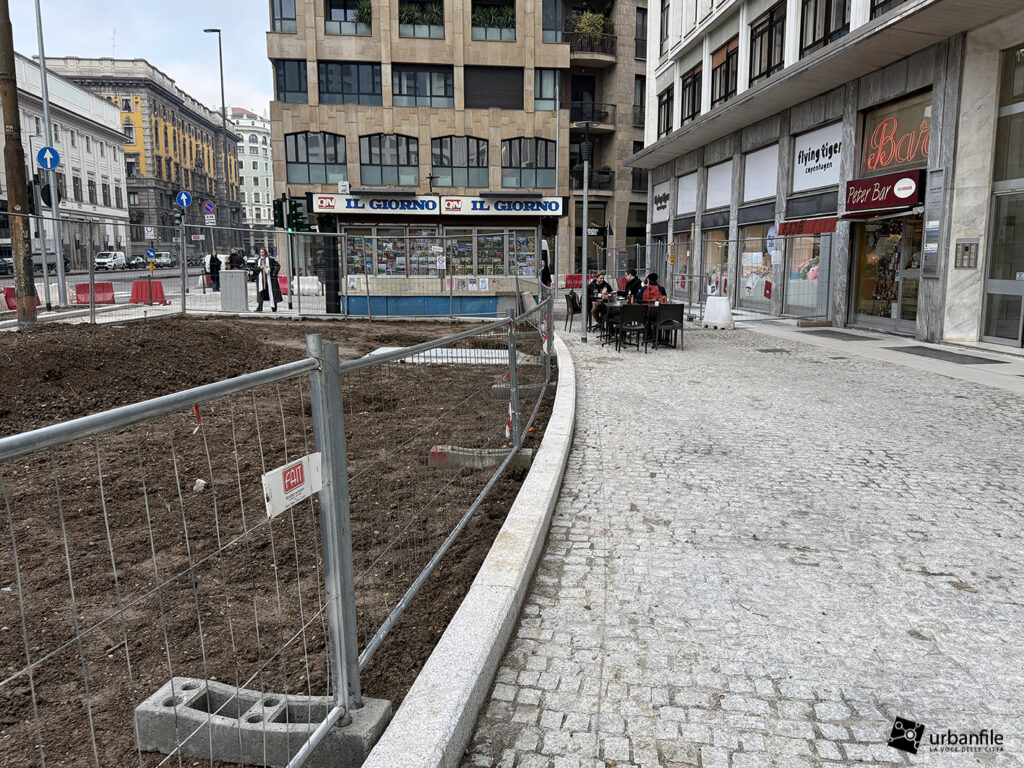 Non vediamo l’ora di ammirare questo tratto della piazza sistemata e pedonalizzata, in precedenza un brutto parcheggio per autovetture. Nella pavimentazione è stata collocata una placca che indica la direzione da prendere per andare alla stazione M3 Missori.