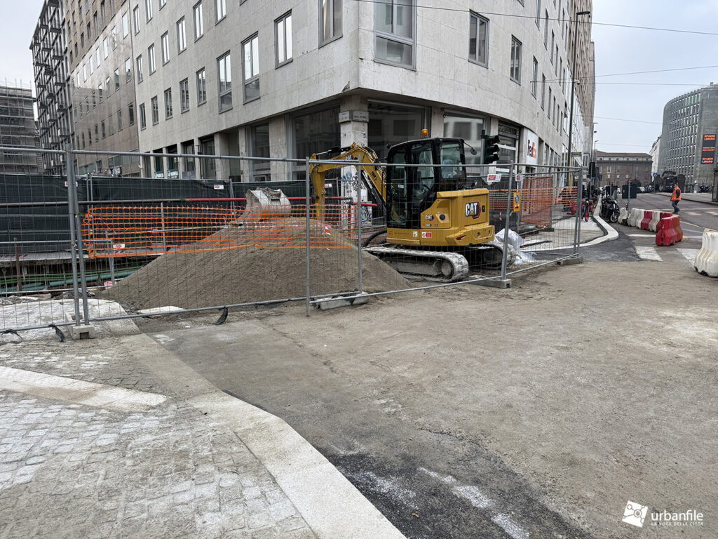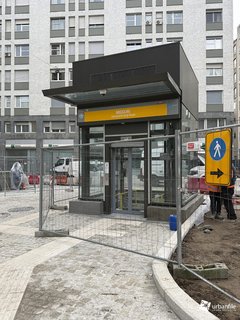Dicembre 2025. Nuovo aggiornamento fotografico di fine anno dall’area della stazione M4 Sforza Policlinico e del futuro “collegamento agevolato” con la stazione M3 Missori. Ricordiamo che il collegamento sarà realizzato attraverso un percorso pedonale all’aperto che collega le due stazioni, distanti circa 300 metri l’una dall’altra.