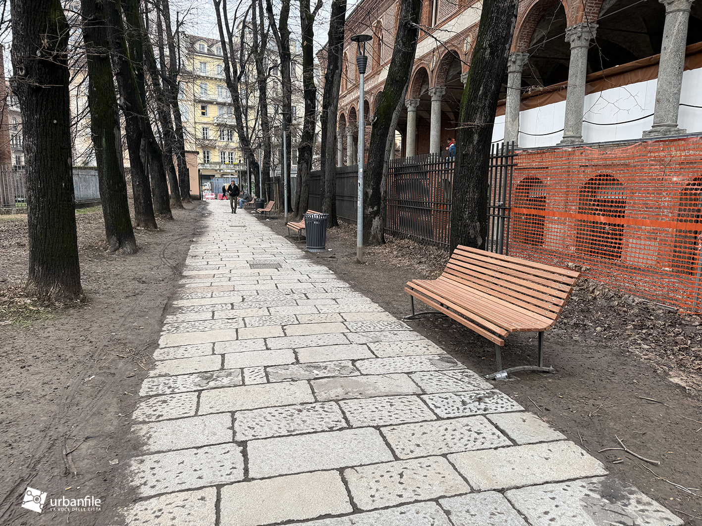 Il bellissimo passaggio del “Boschetto della Ca’ Granda” che unisce Largo Francesco Richini con la piazzetta della stazione M4 Sforza Policlinico, regala sempre delle immagini spettacolari. Nei giorni scorsi sono state sostituite le panchine, identiche alle classiche panchine milanesi a bacchette di legno, ma non più tinteggiate di verde, ma lasciate al naturale.