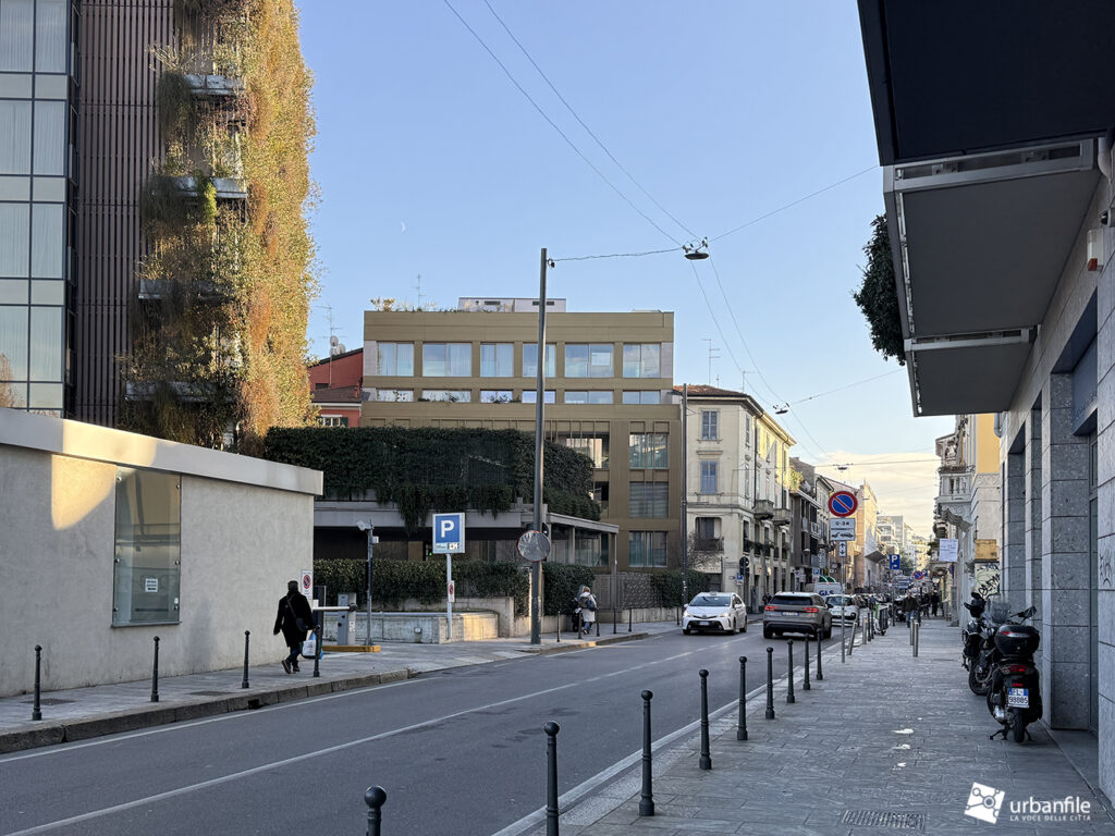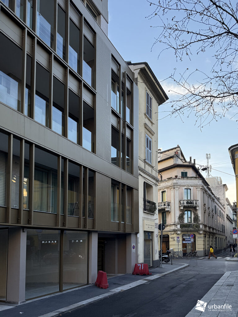 Il progetto, promosso da l’Immobiliare Fenice, è stato presentato nel 2021 come 5’S Building, una palazzina moderna e abbastanza discreta che si inserisce, secondo noi, abbastanza bene nel contesto ed è disegnata dall’architetto Carlo Colombo e dal suo team.