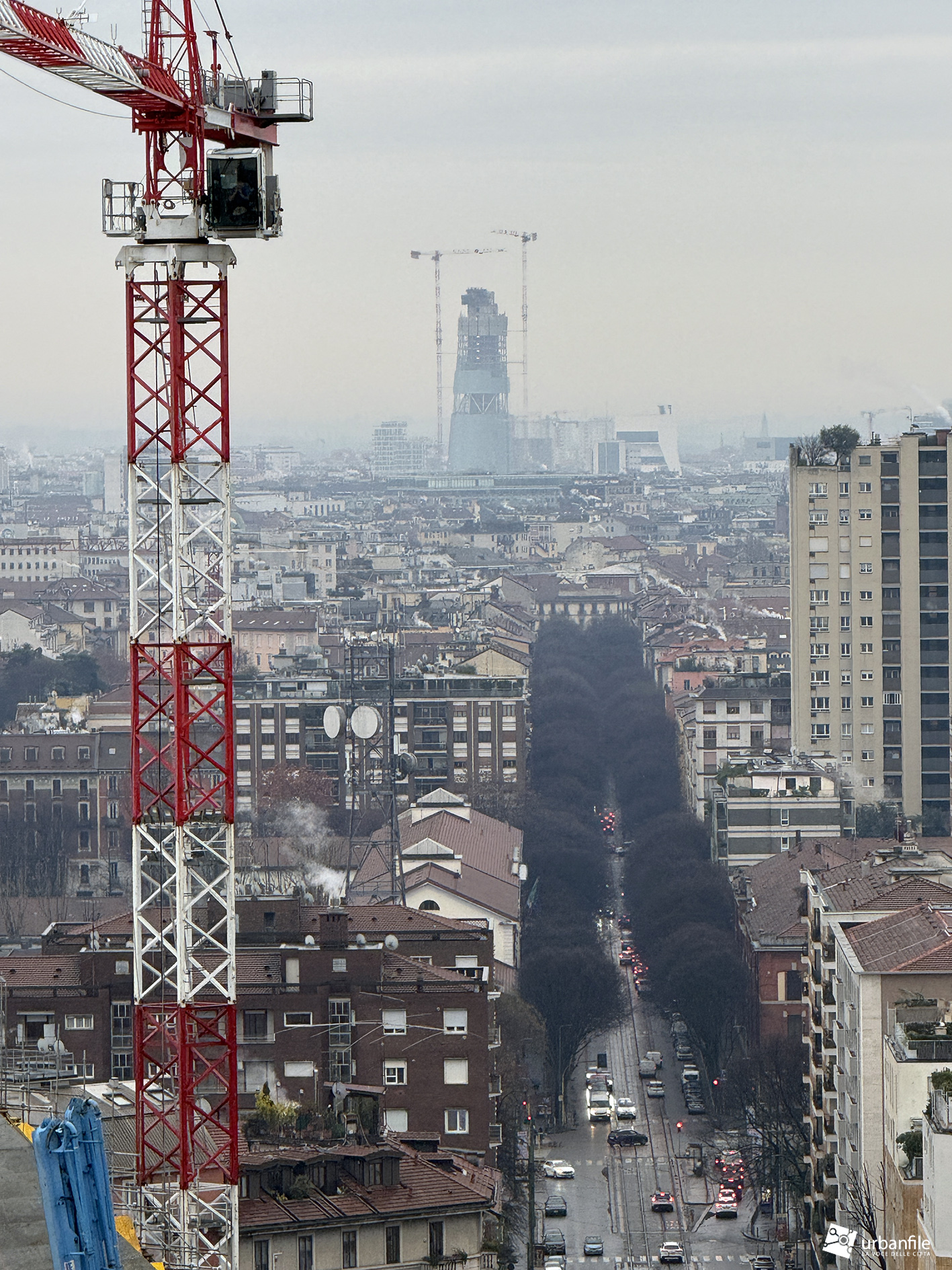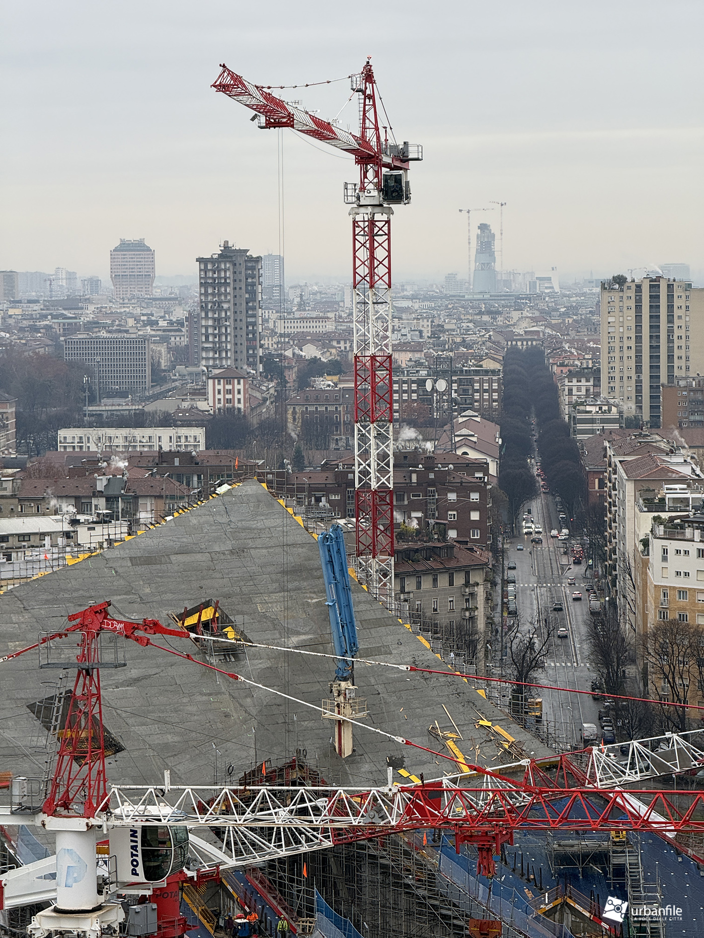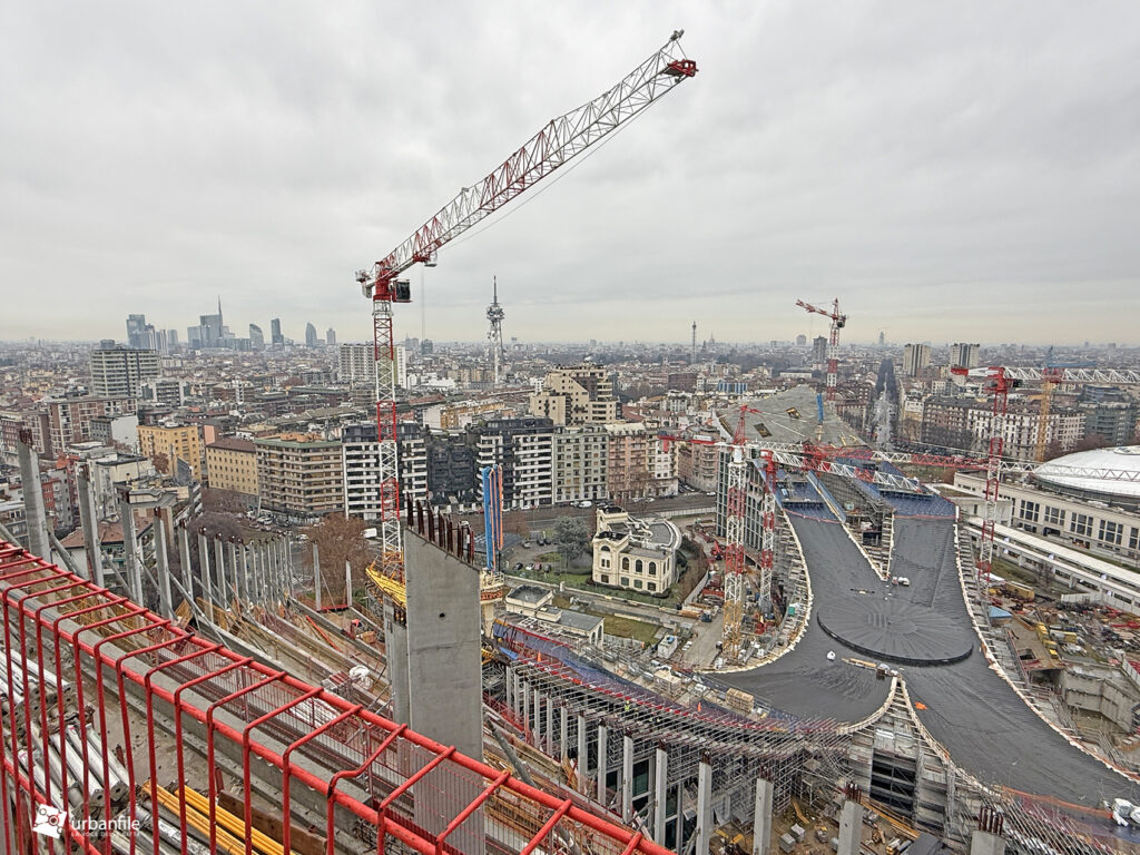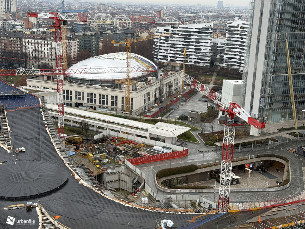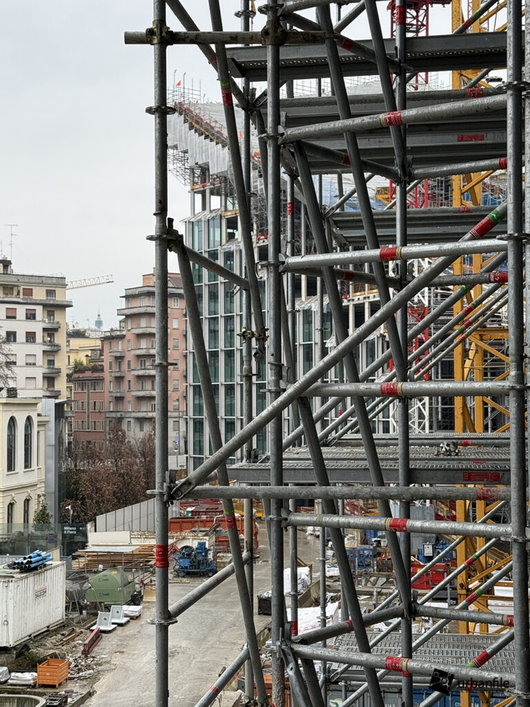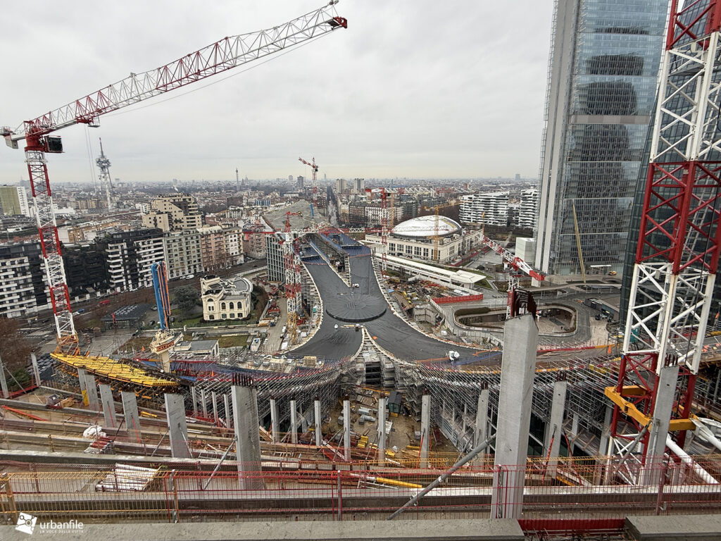 Dopo questa breve panoramica sulla complessità dell’opera, vi portiamo al diciottesimo piano della torre RD, da cui abbiamo potuto osservare il canopy dall’alto. Purtroppo la giornata uggiosa non ha favorito le fotografie, ma ne abbiamo approfittato ugualmente per ammirare il panorama circostante (come la torre A2A in costruzione in lontananza e preceduta dalla dritta e alberata via Vincenzo Monti).