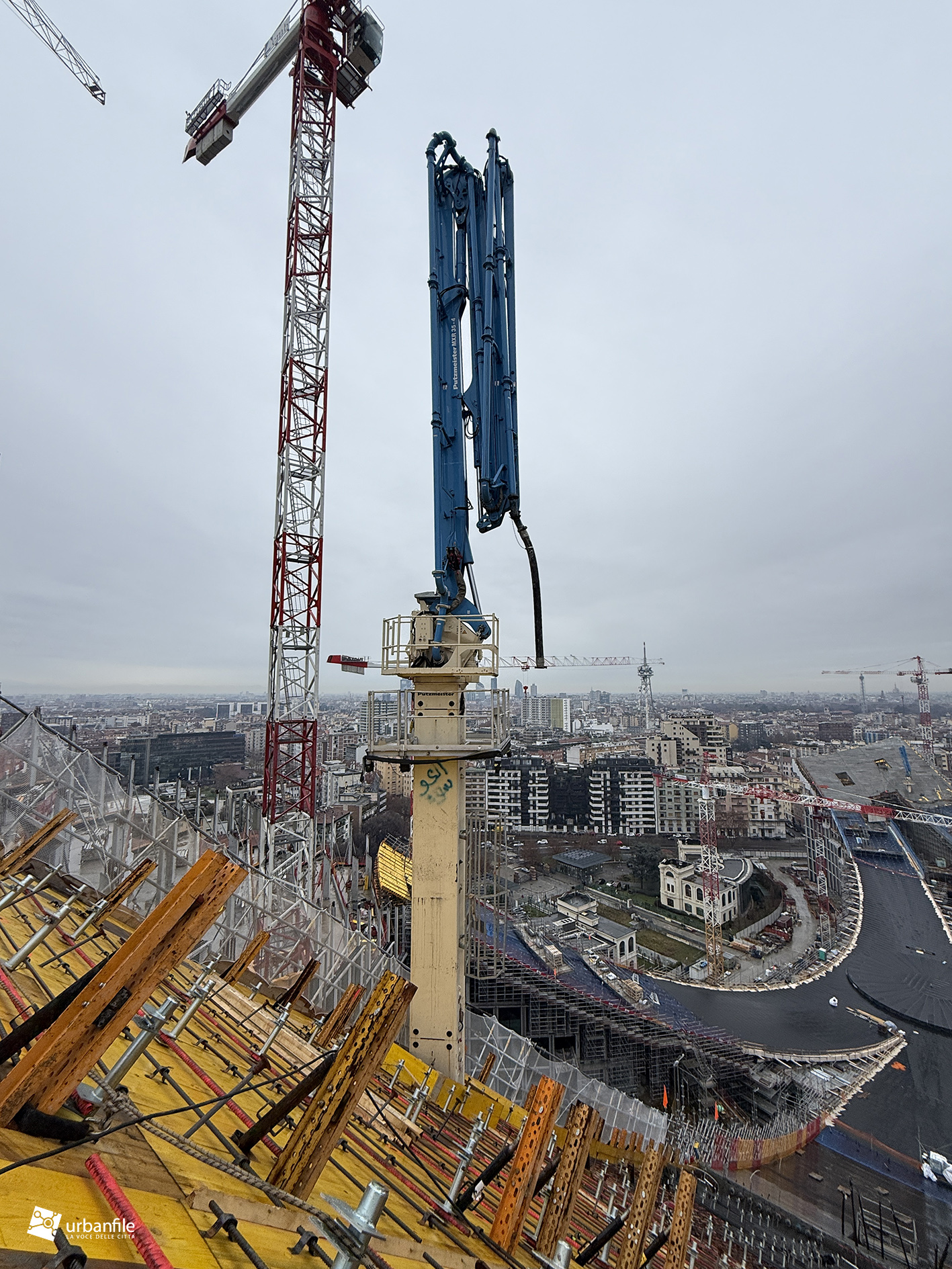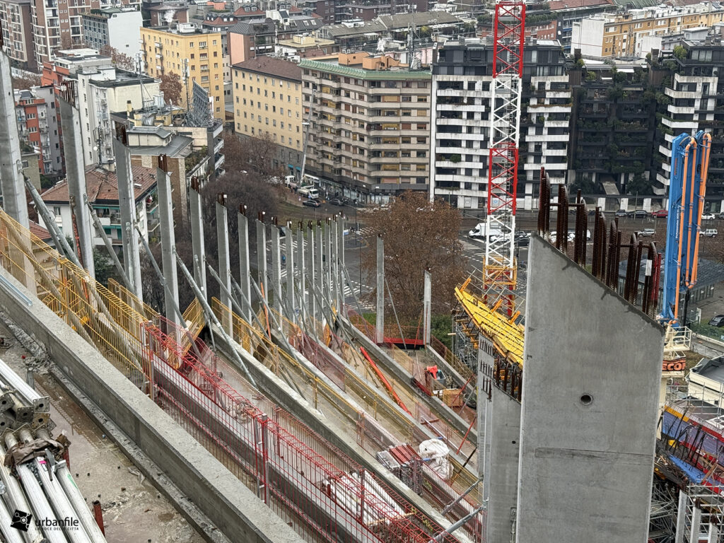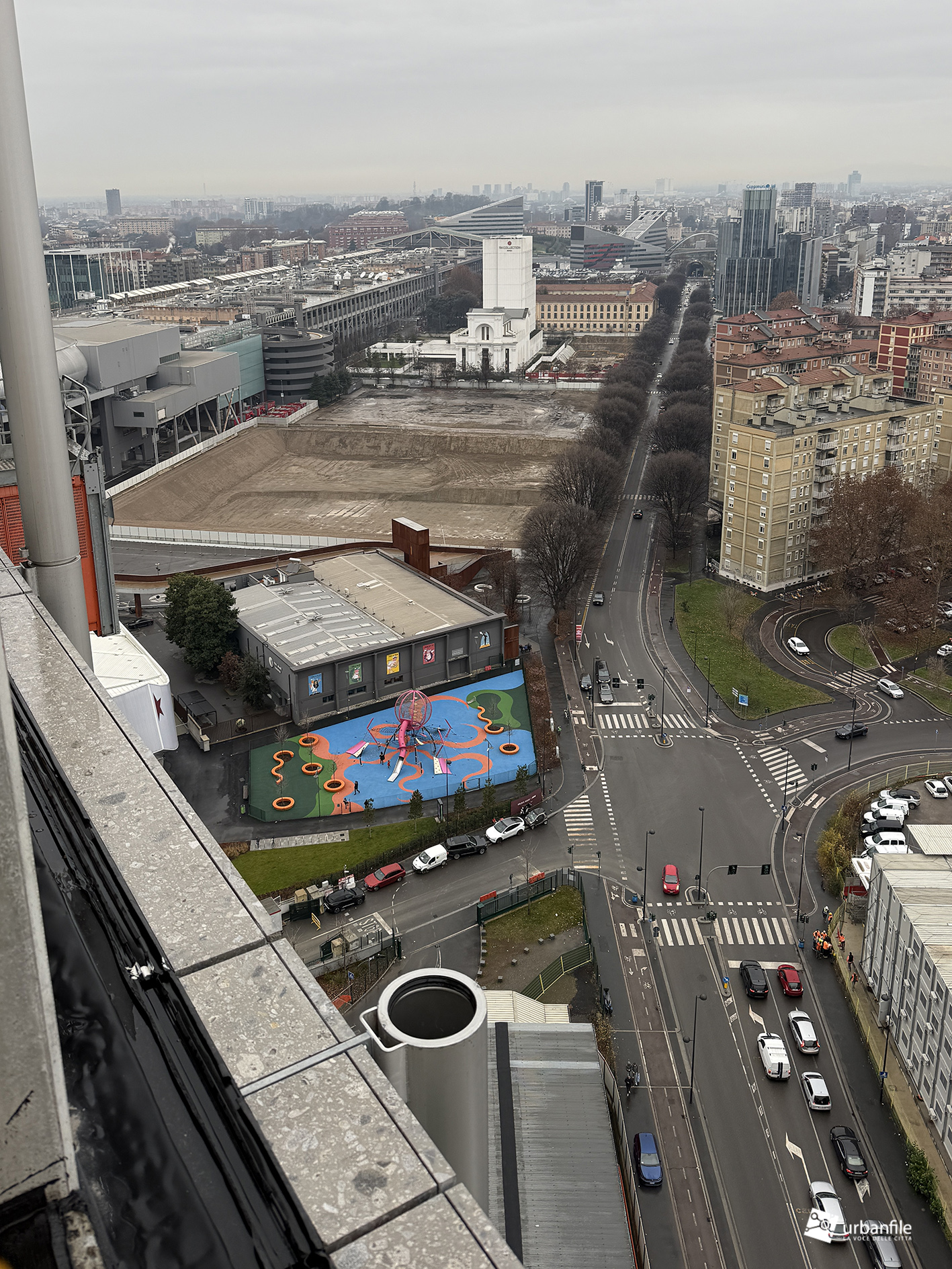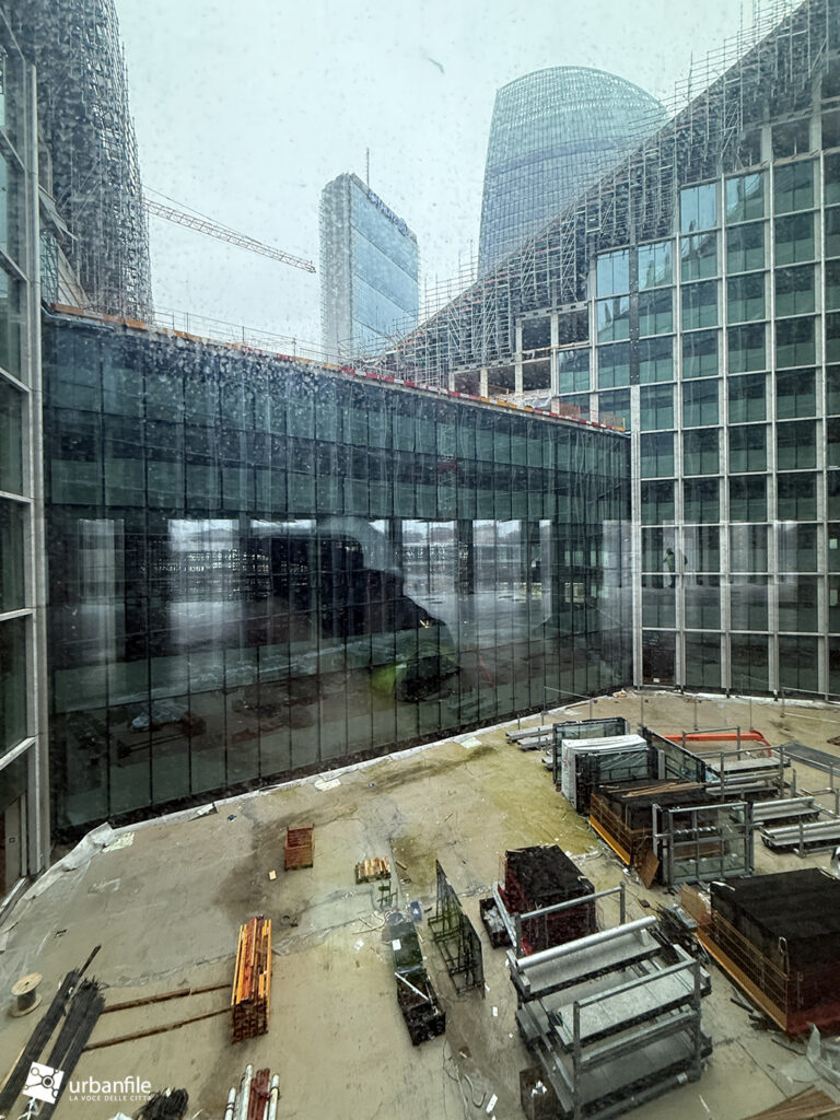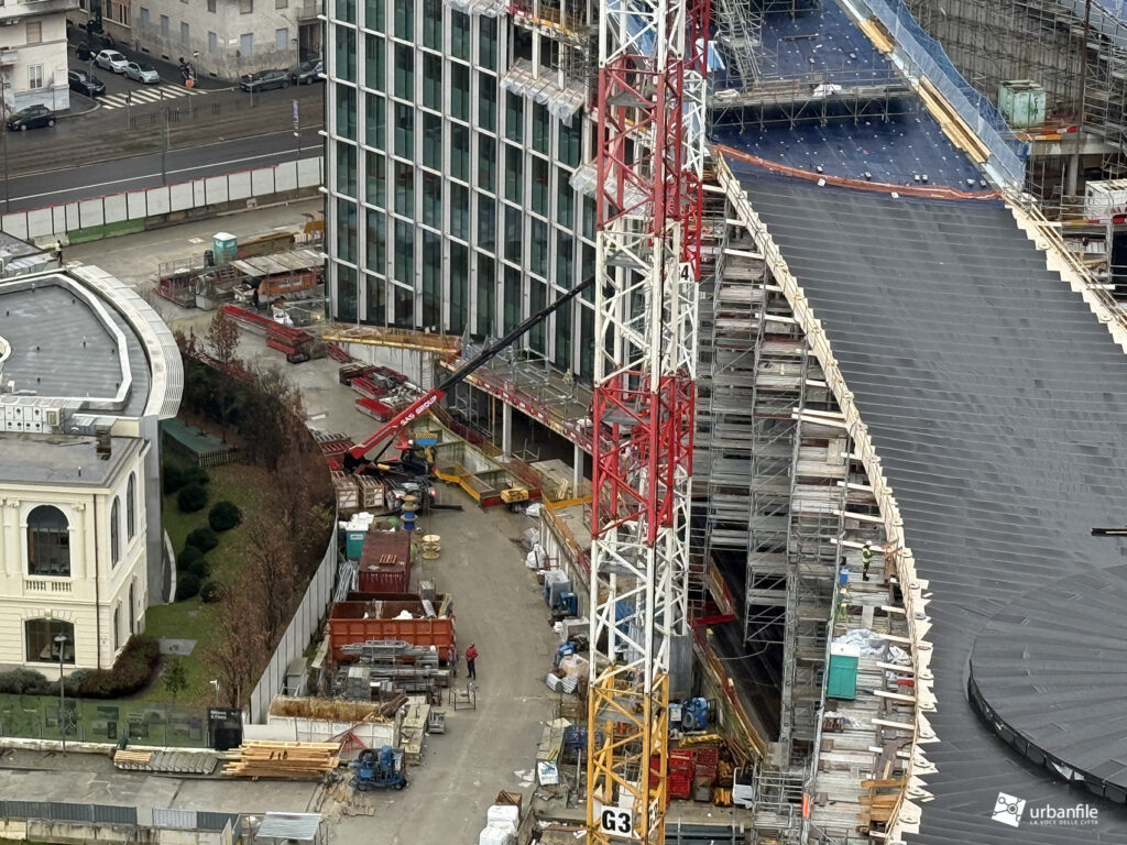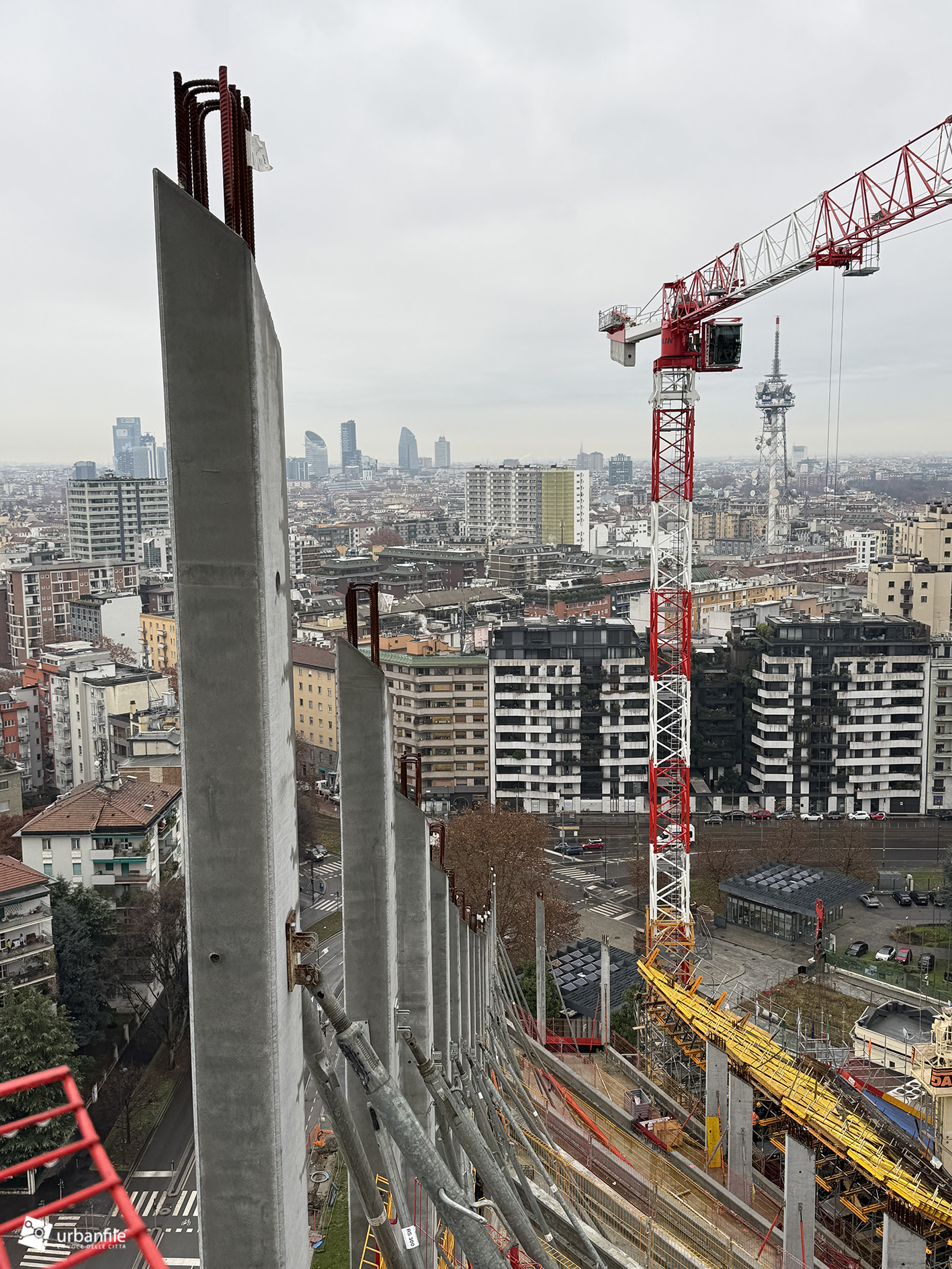 Dopo questa breve panoramica sulla complessità dell’opera, vi portiamo al diciottesimo piano della torre RD, da cui abbiamo potuto osservare il canopy dall’alto. Purtroppo la giornata uggiosa non ha favorito le fotografie, ma ne abbiamo approfittato ugualmente per ammirare il panorama circostante (come la torre A2A in costruzione in lontananza e preceduta dalla dritta e alberata via Vincenzo Monti).