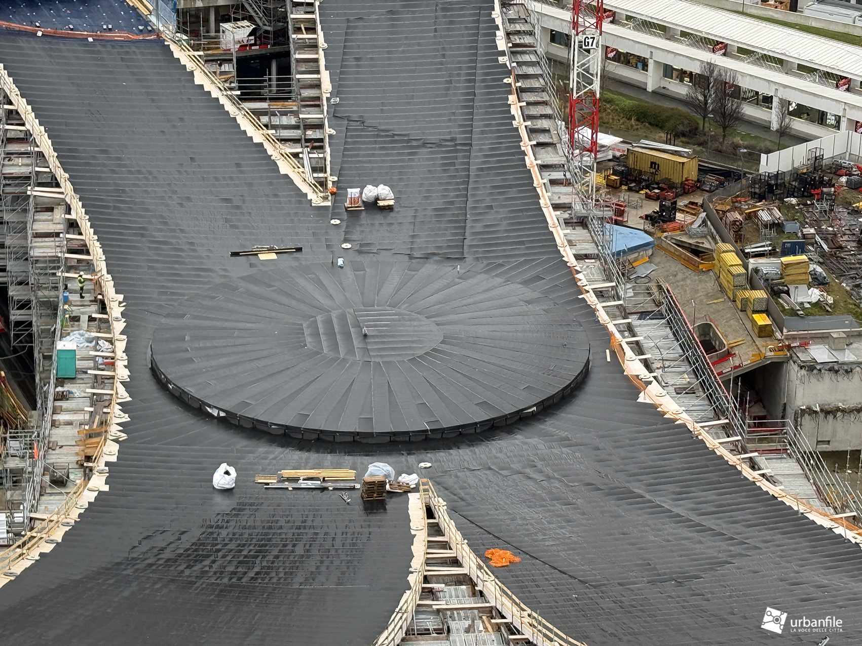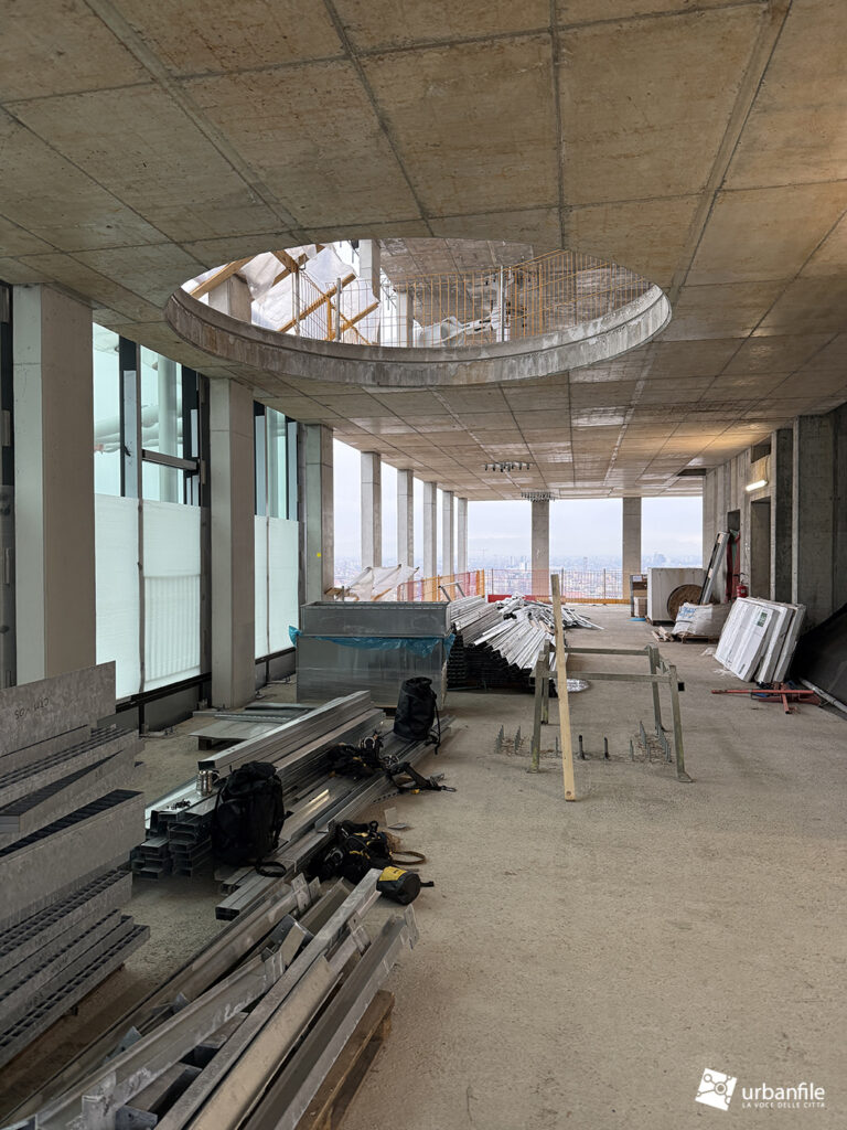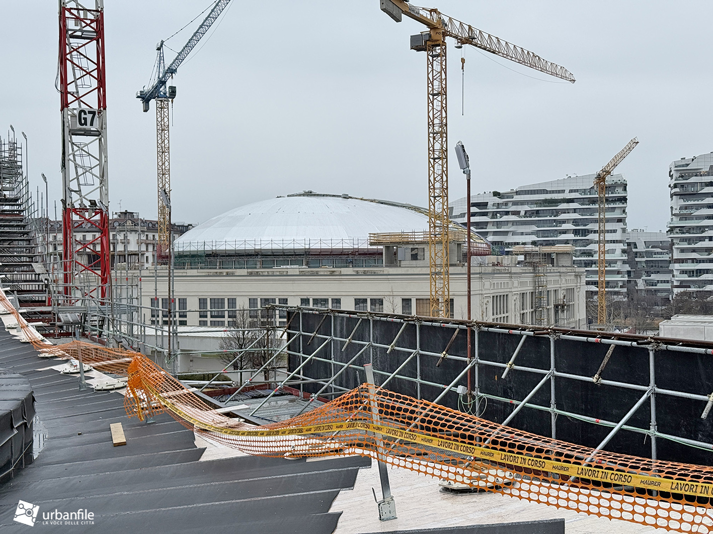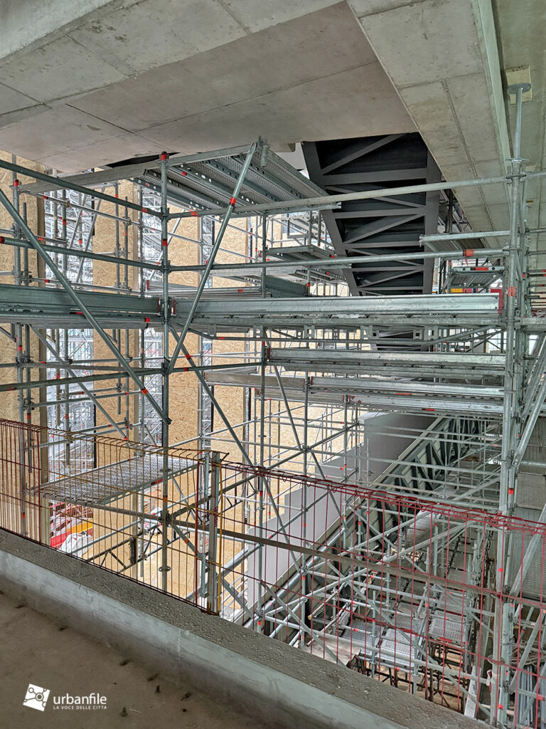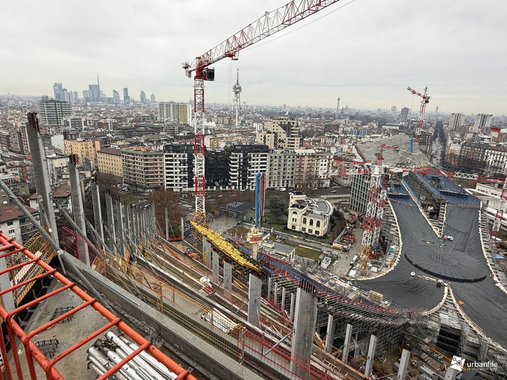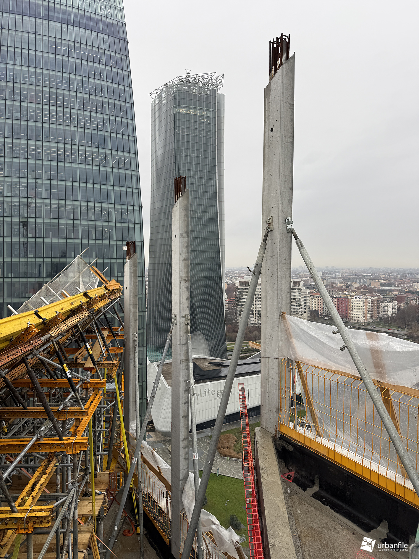 Dopo questa breve panoramica sulla complessità dell’opera, vi portiamo al diciottesimo piano della torre RD, da cui abbiamo potuto osservare il canopy dall’alto. Purtroppo la giornata uggiosa non ha favorito le fotografie, ma ne abbiamo approfittato ugualmente per ammirare il panorama circostante (come la torre A2A in costruzione in lontananza e preceduta dalla dritta e alberata via Vincenzo Monti).