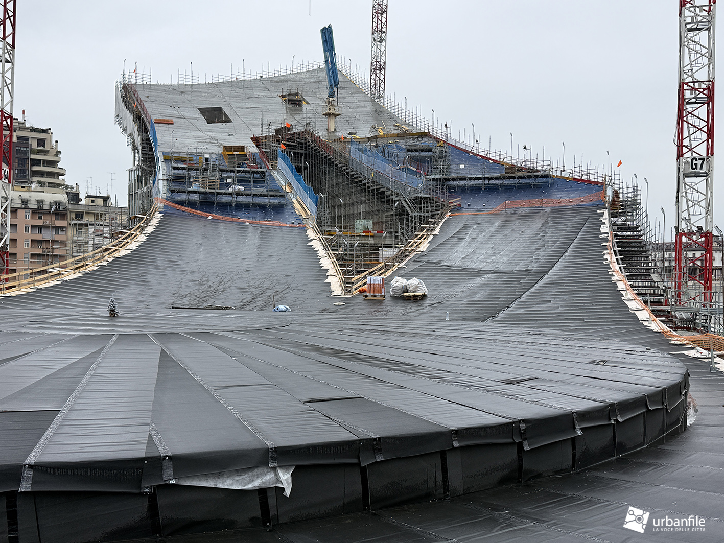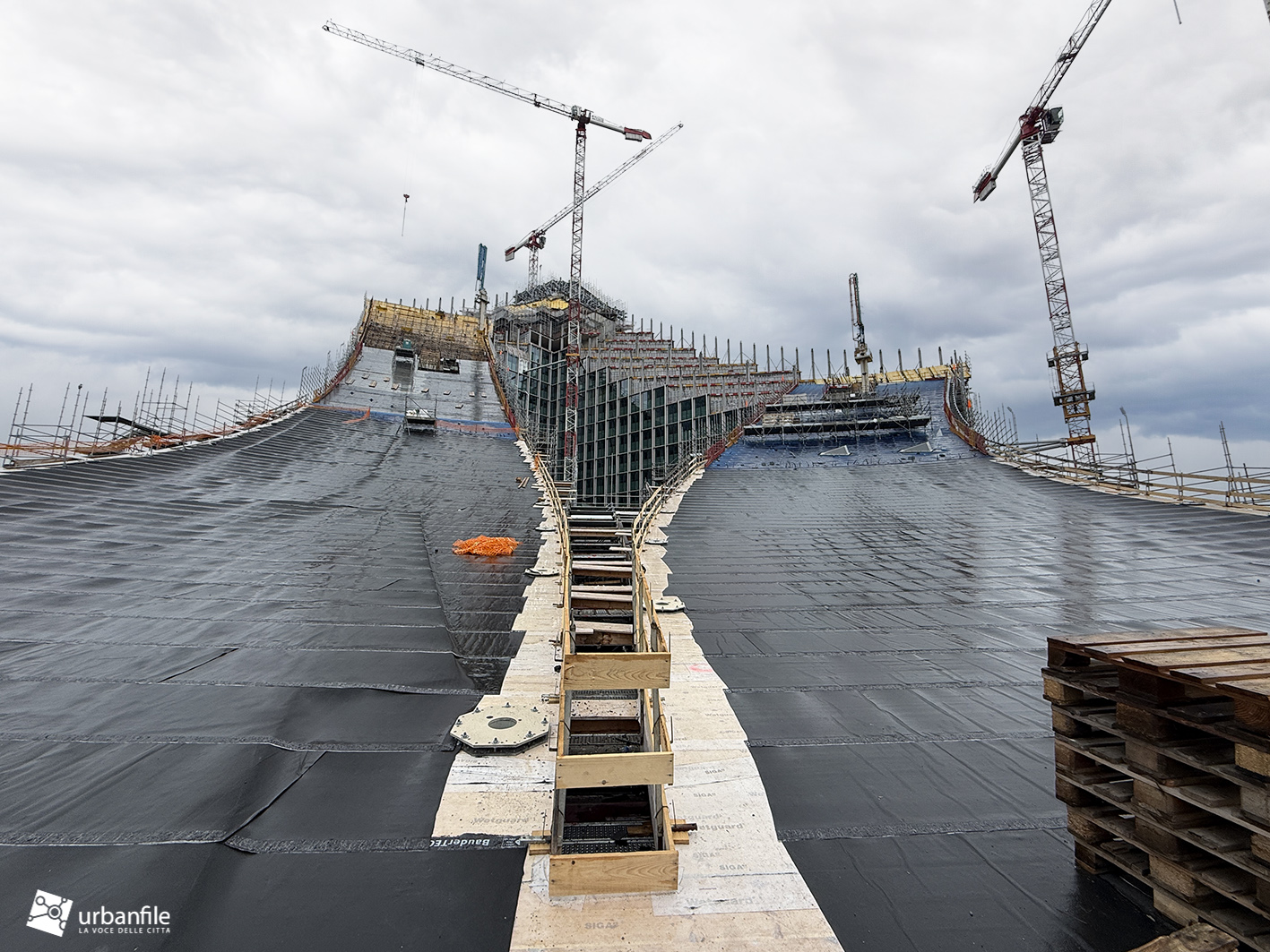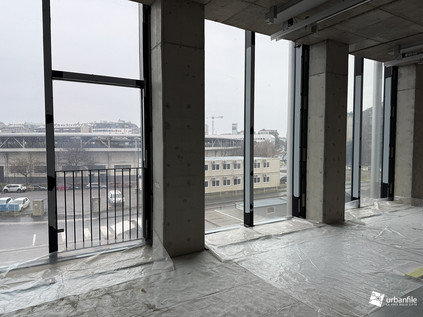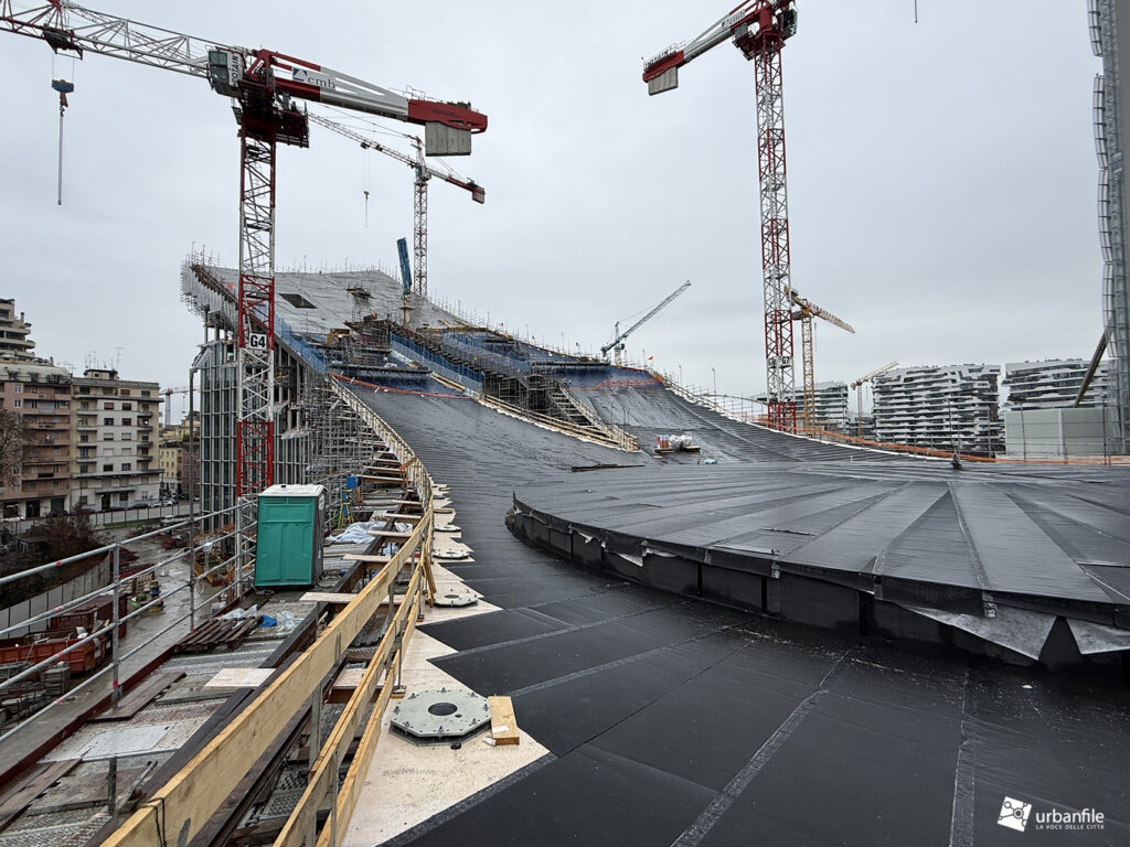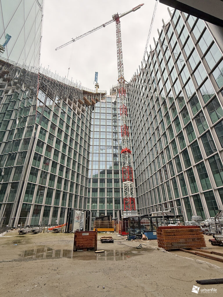 Dopo questa breve panoramica sulla complessità dell’opera, vi portiamo al diciottesimo piano della torre RD, da cui abbiamo potuto osservare il canopy dall’alto. Purtroppo la giornata uggiosa non ha favorito le fotografie, ma ne abbiamo approfittato ugualmente per ammirare il panorama circostante (come la torre A2A in costruzione in lontananza e preceduta dalla dritta e alberata via Vincenzo Monti).