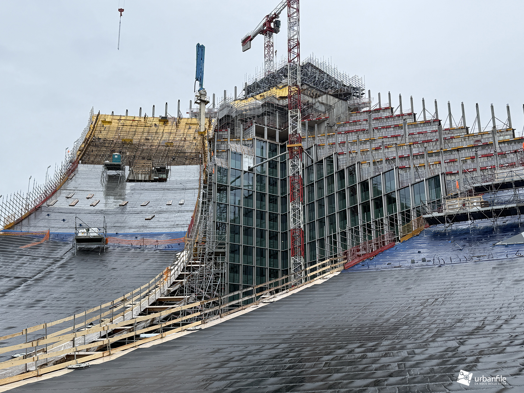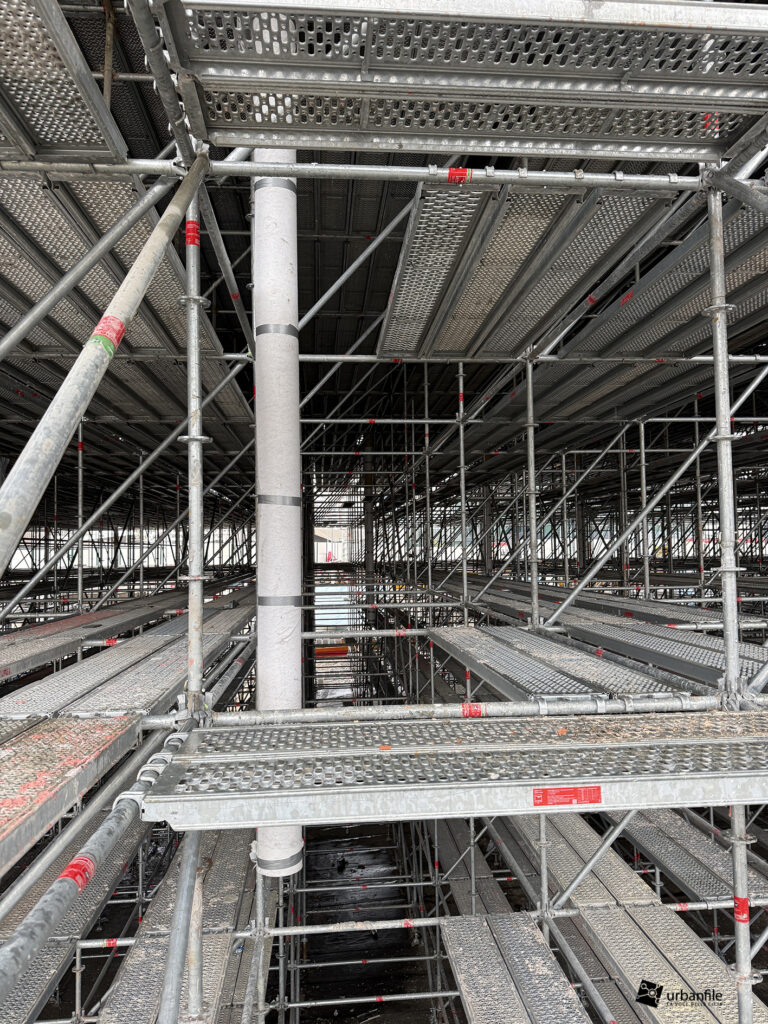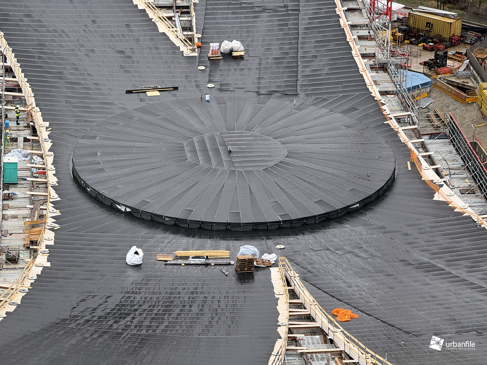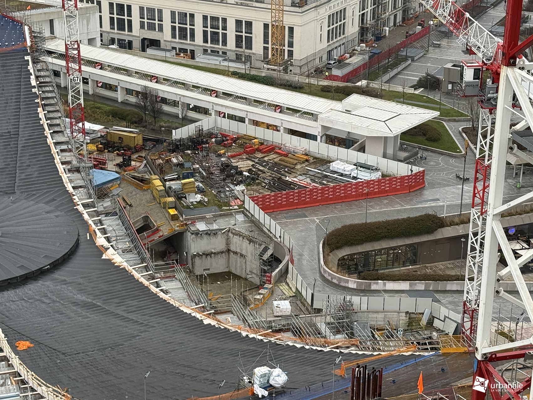 Nella seguente galleria potete vedere la parte centrale del canopy con la parte circolare posta al centro, le colonne che reggeranno il tetto e il cortile interno della torre alta.