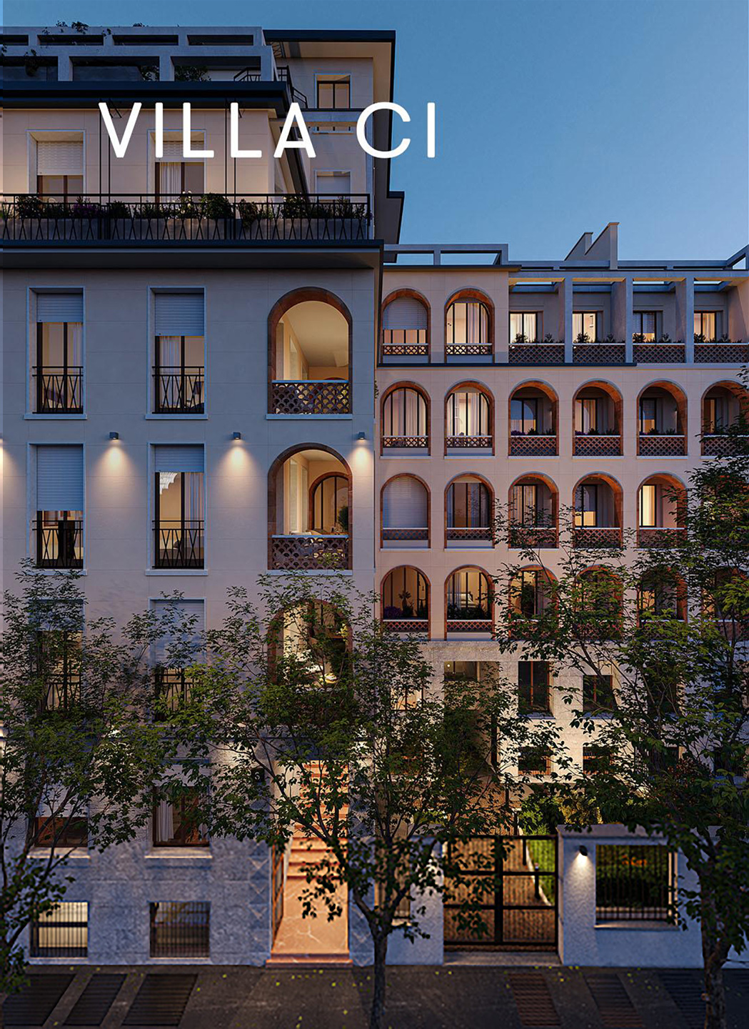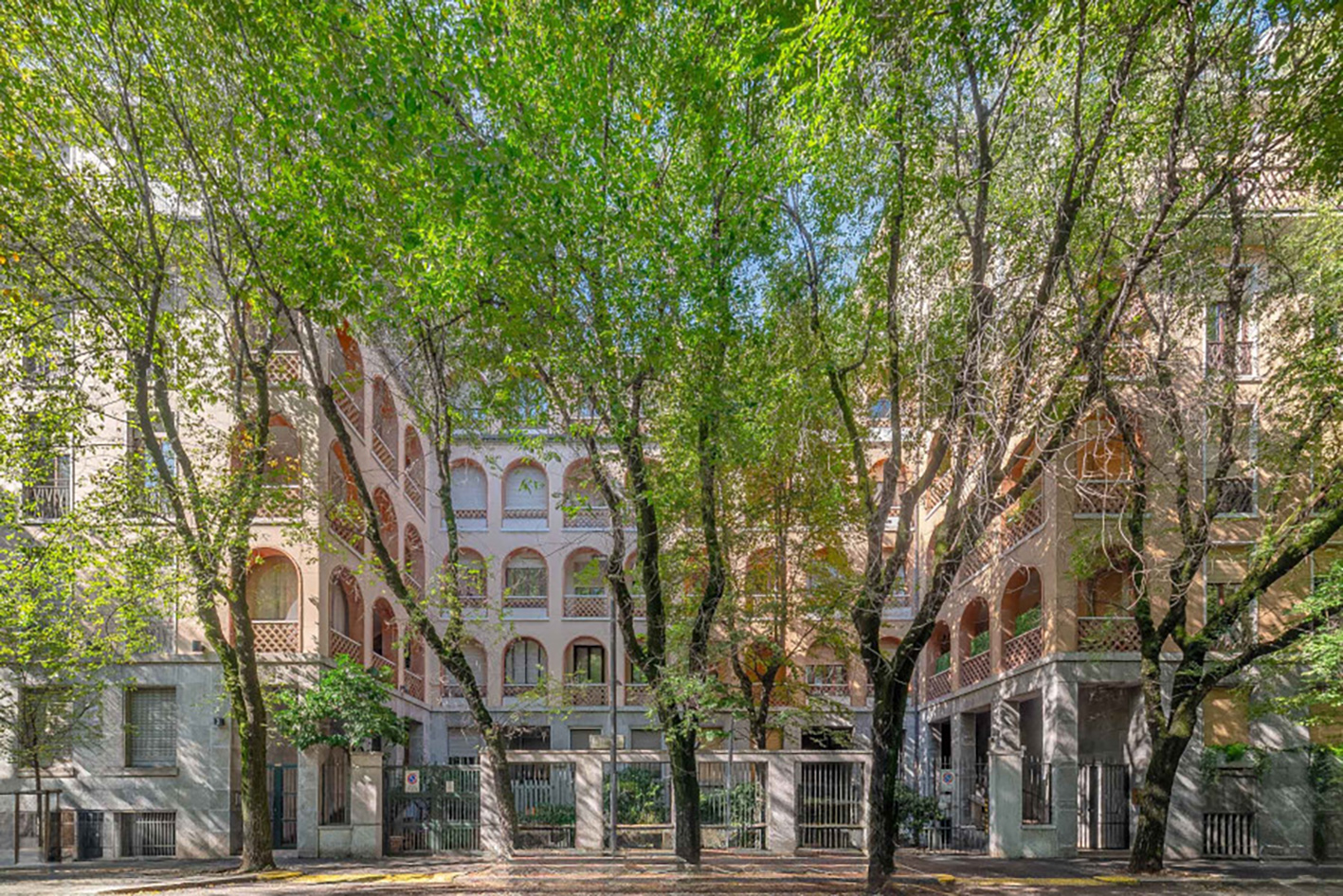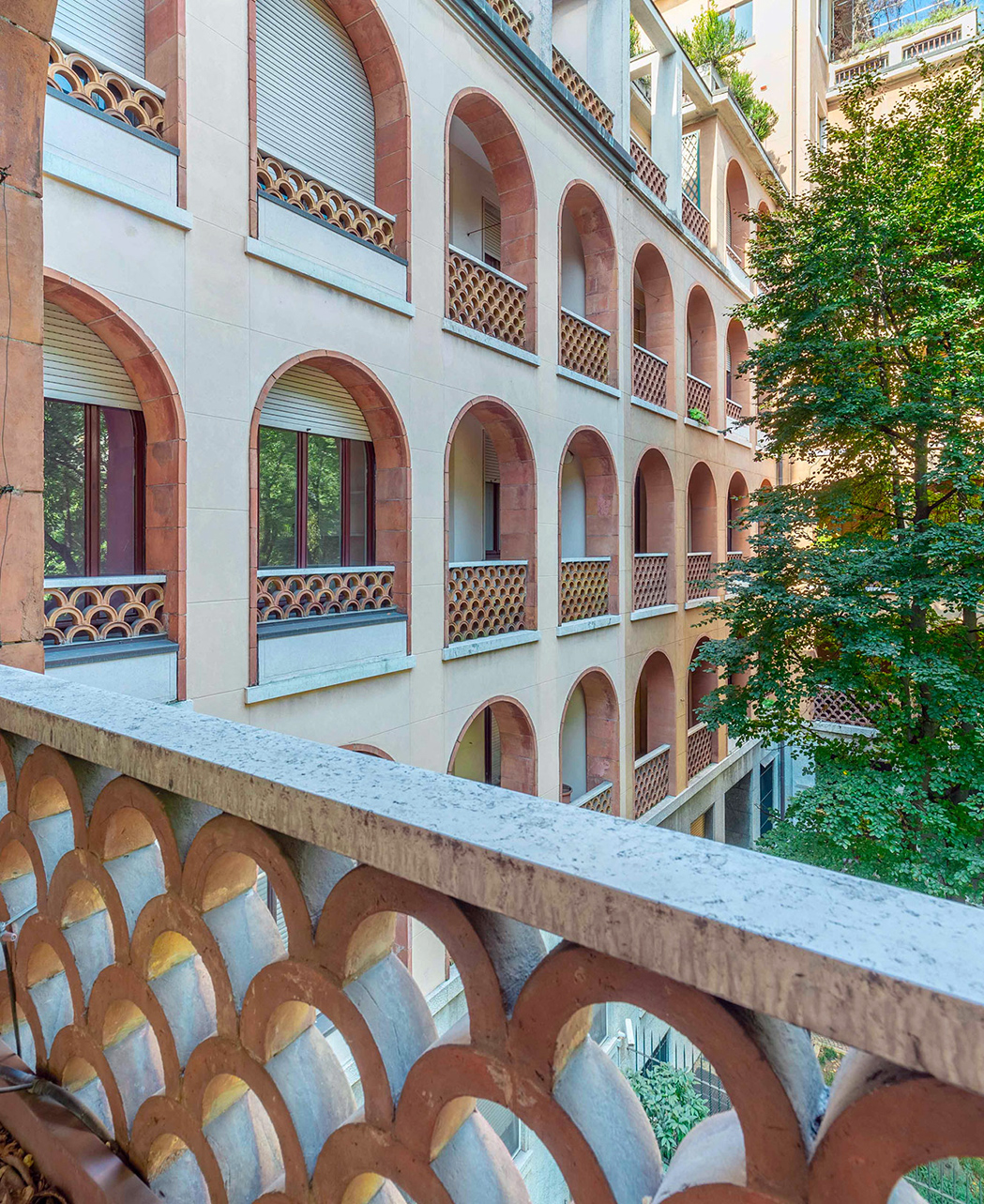 Completata nel 1939, Villa Ci rappresenta un’eccezione nel tessuto urbano milanese: nasce in una breve fase in cui la città, alla vigilia della guerra, accetta l’inserimento dell’architettura moderna in un contesto già consolidato. Il progetto si inserisce in un’area da poco trasformata da importanti interventi urbanistici e infrastrutturali. Ponti e Magistretti, allora figure centrali dell’architettura italiana, realizzano un sistema di edifici “a pettine” con terrazzi degradanti, e intervallati da cortili verdi e un forte dialogo tra spazi abitativi e paesaggio.